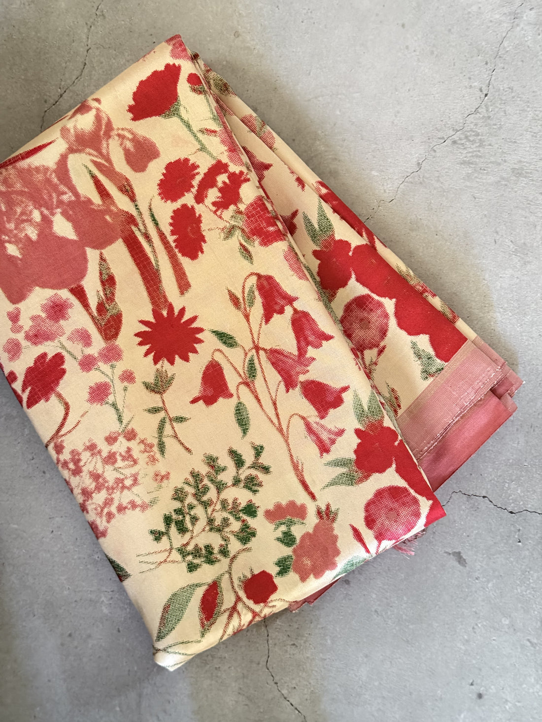 Alankrita | Pink and Red Floral Printed Kanjivaram Silk Saree