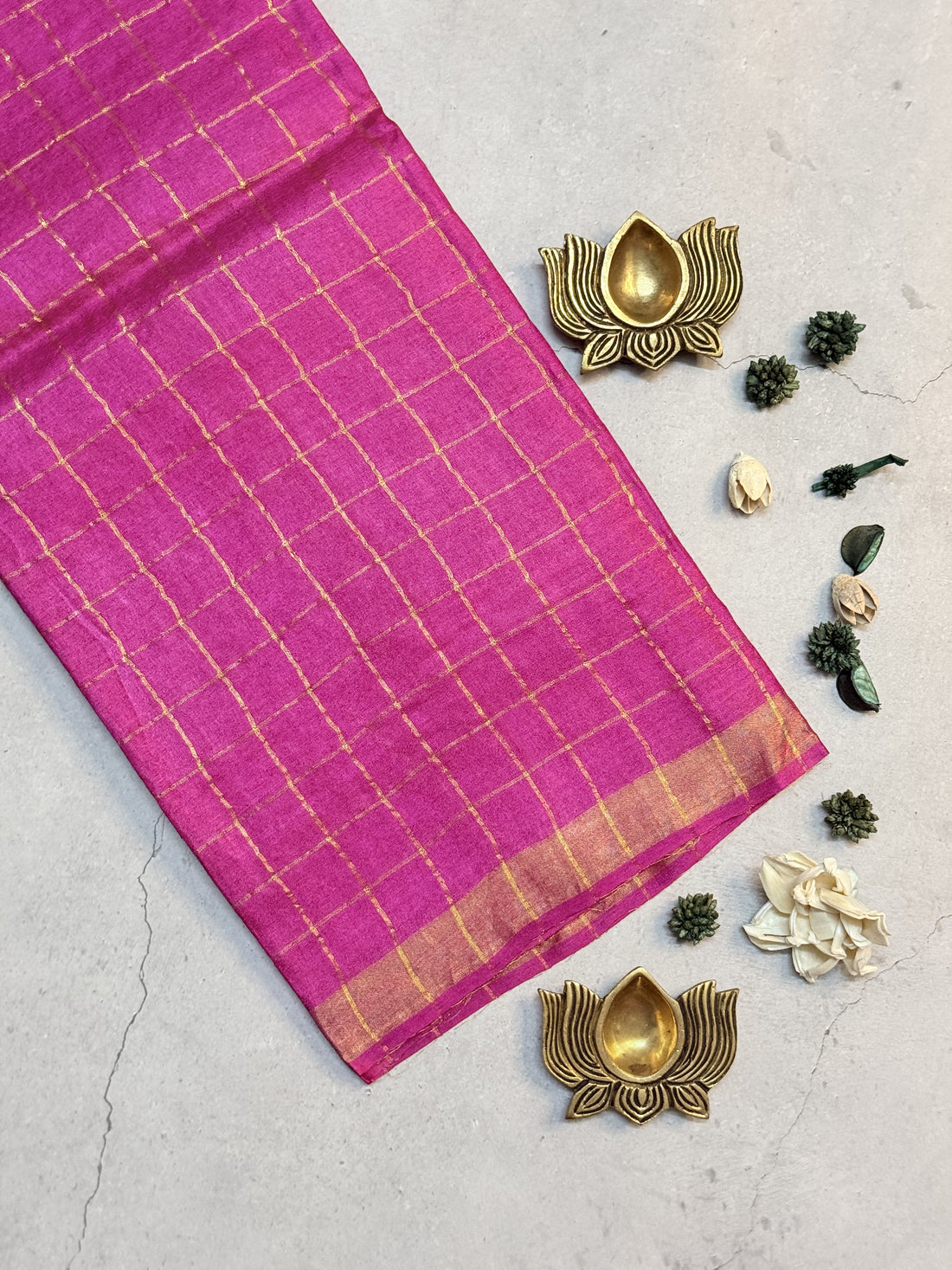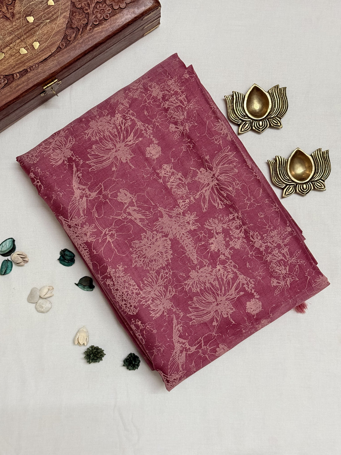 Adhiti | Onion Pink Printed Kanjivaram Kora Silk Saree