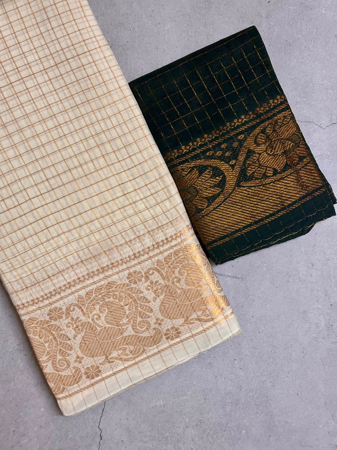 Ahalya | Beige and Gold Sungudi Cotton Saree