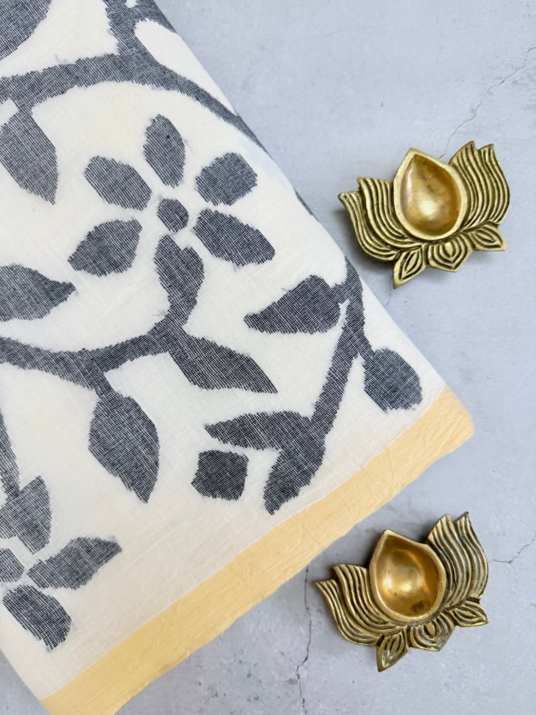 Champaka | Pearl white Jamdani Bengal Cotton Saree (Without Blouse)
