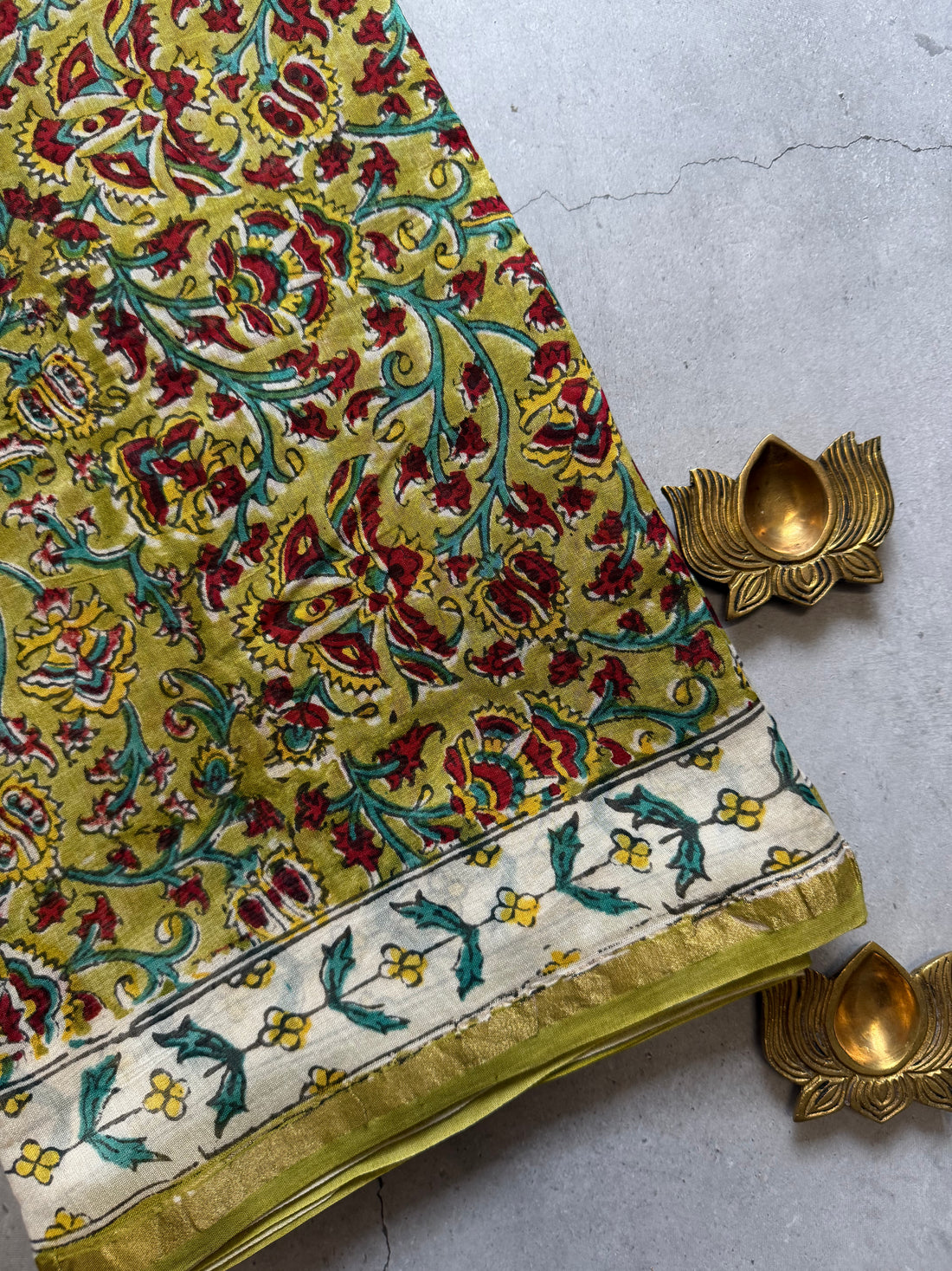 Praseedha | Emerald Green Block Printed Maheshwari Saree