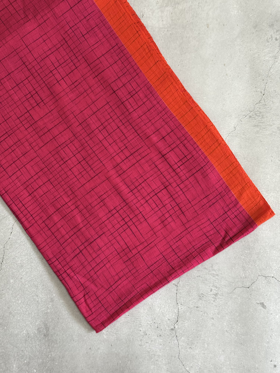 Mrinalini | Pink and Orange Broken Checks Bengal Cotton Saree
