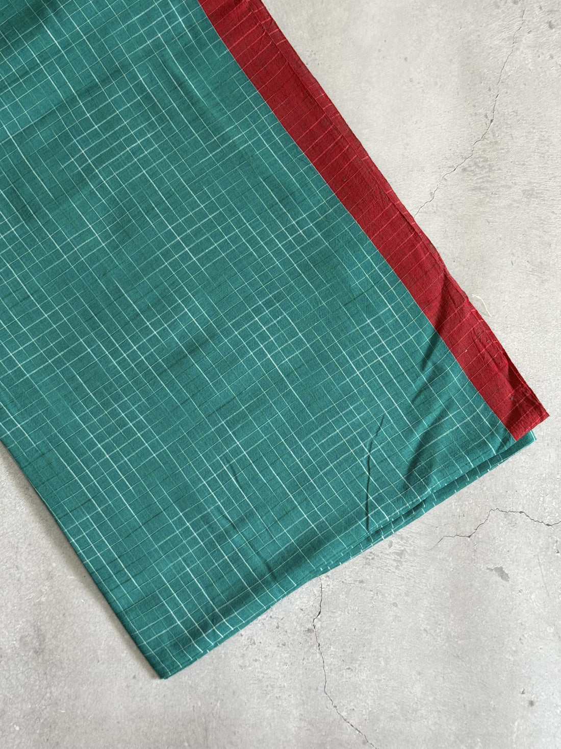 Neeraja | Green and Red Broken Checks Bengal Cotton Saree