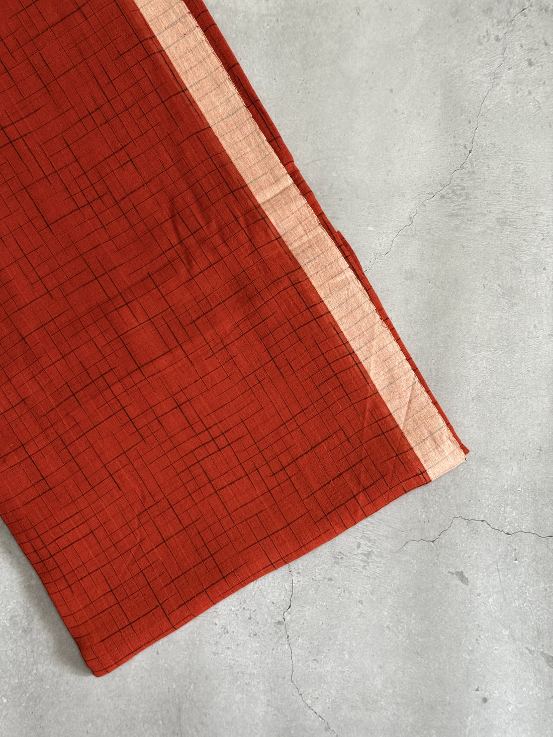 Sindhoora | Orange and White Broken Checks Bengal Cotton Saree