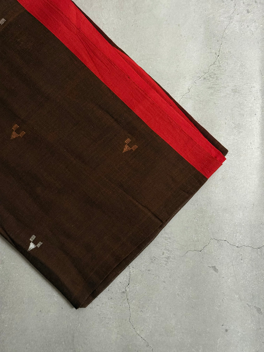 Vibha | Brown and Red Jamdani Bengal Cotton Saree