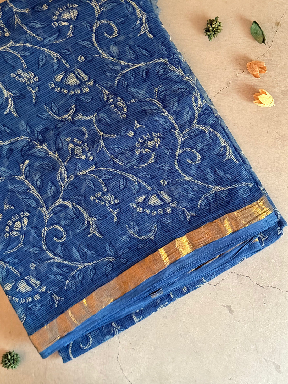 Neelantara | Indigo Block Floral Printed Kota Saree