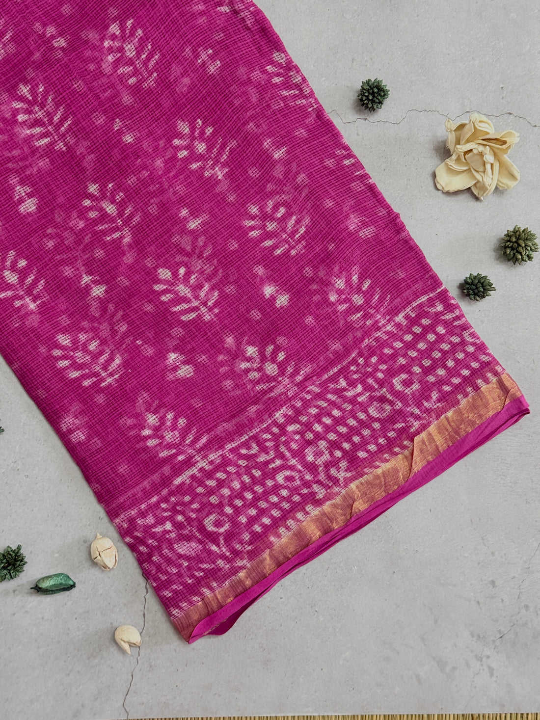 Pink Akola hand block Printed Kota Doria sarees are known for their lightweight, airy fabric...
