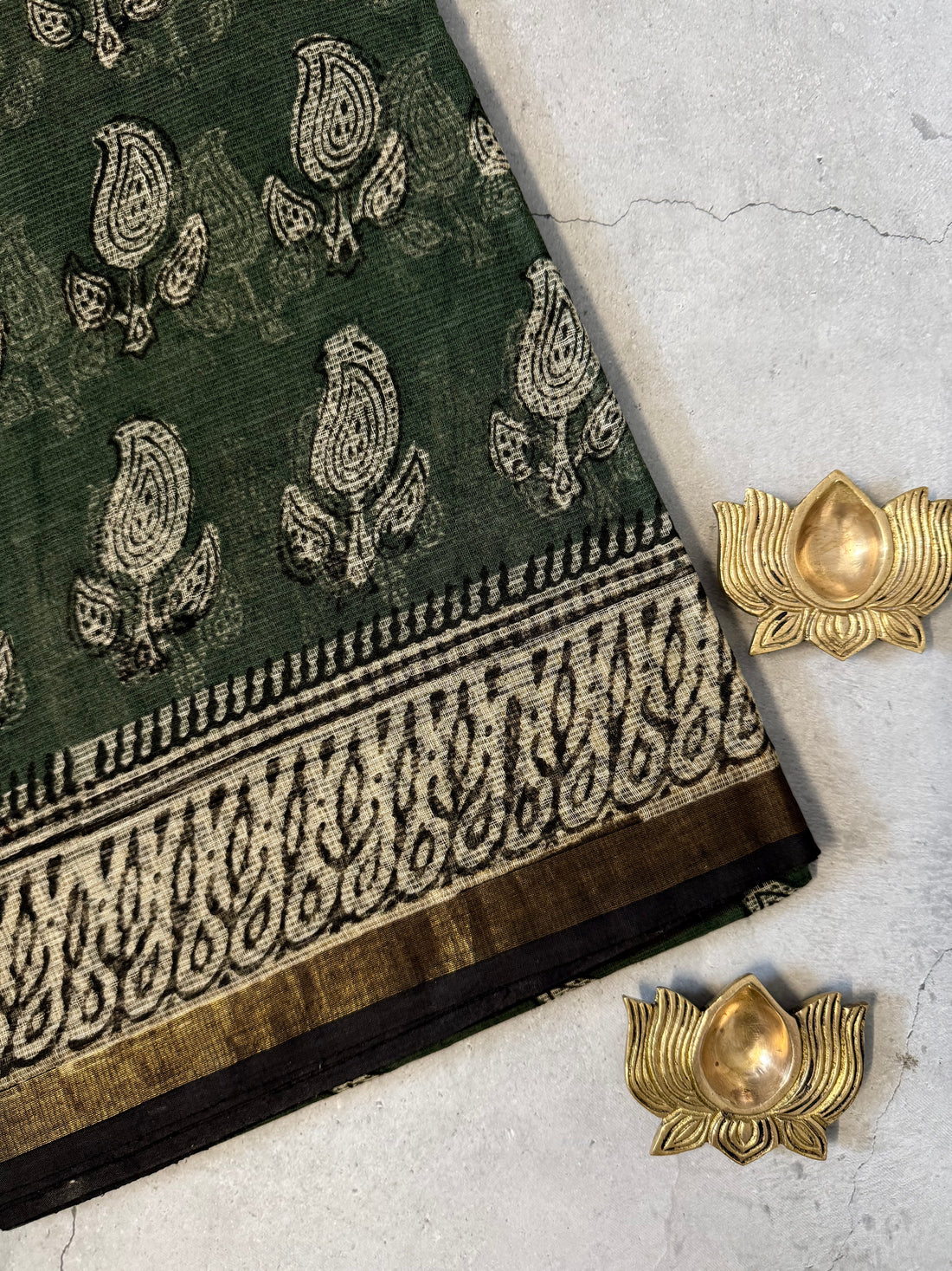 Amrapali | Pastel Green with Red Block Printed Kota Saree