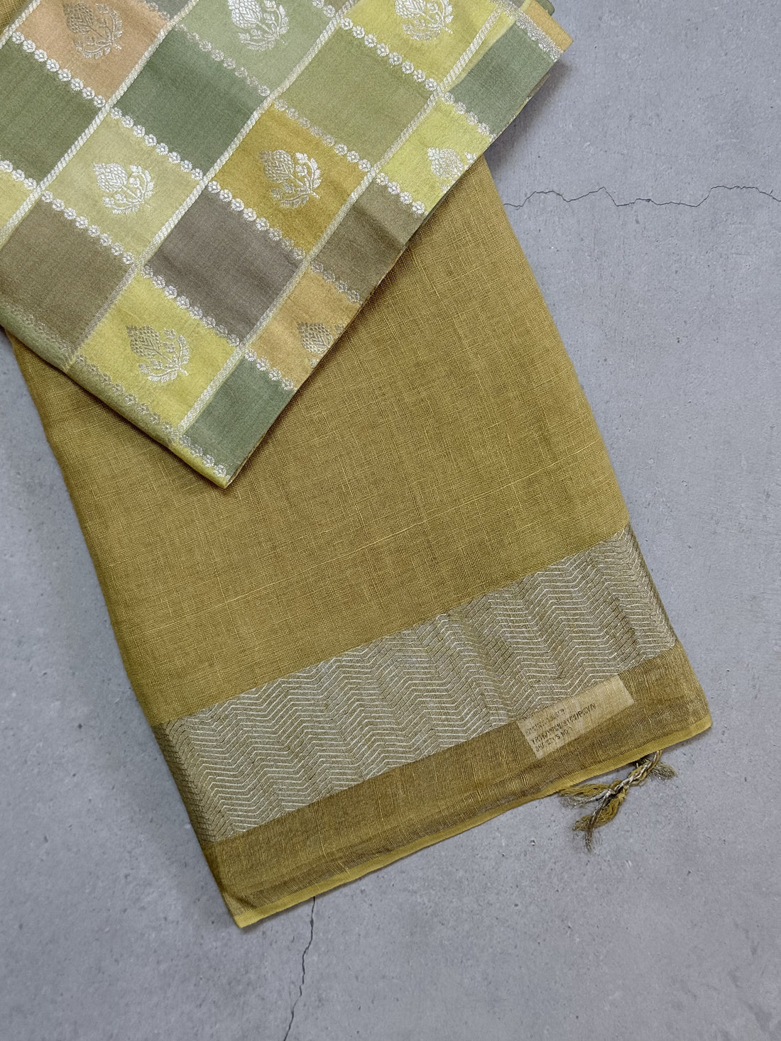 Nadiya | Brown and Pale Yellow Classic Linen Saree