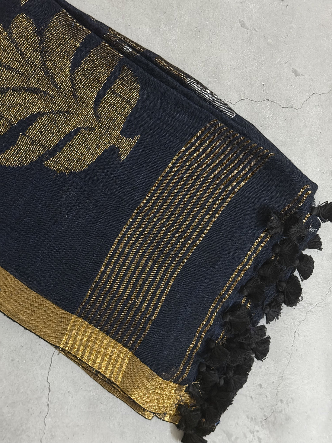 Manohari | Black and Gold Jamdani Pure Linen Saree