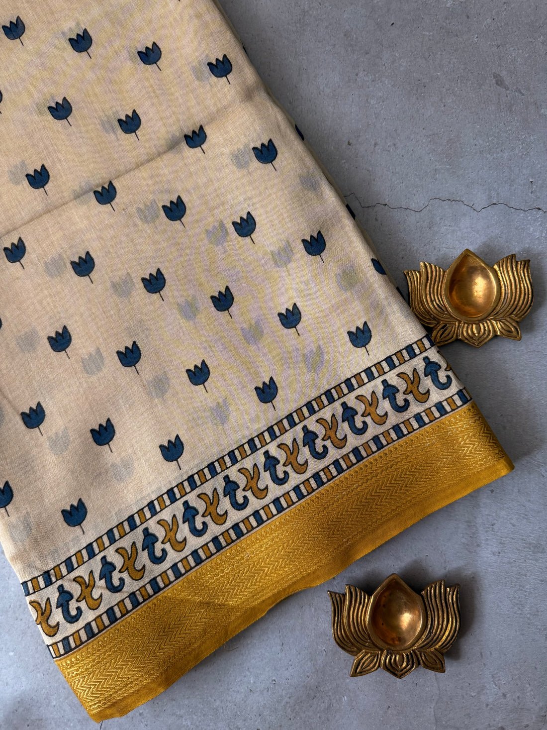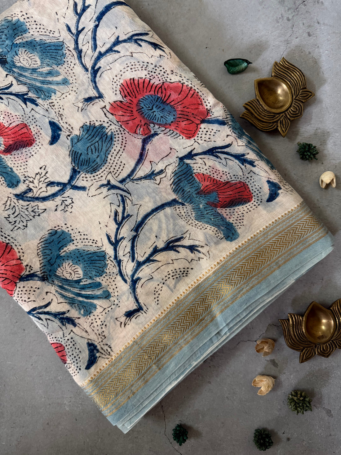 Akola Hand Block Printed Saree with Woven Maheshwari Borders An ode to slow craft and...
