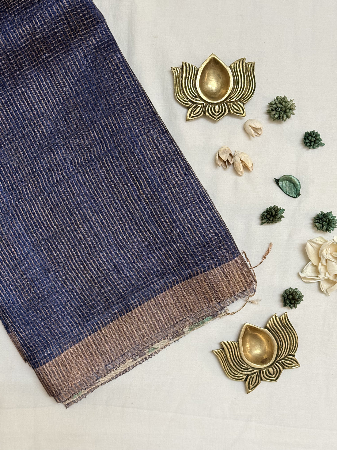 Nalini | Navy Blue Matka Tussar Silk Saree