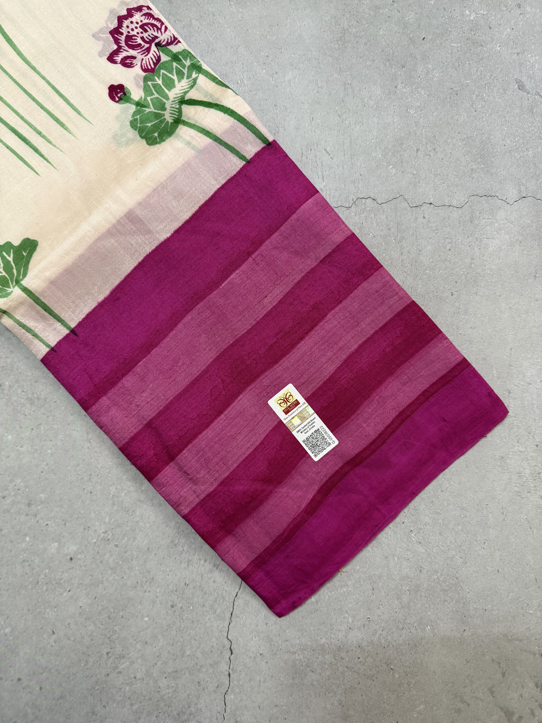 Kamali | Pink and White Floral Hand Painted Silk Saree