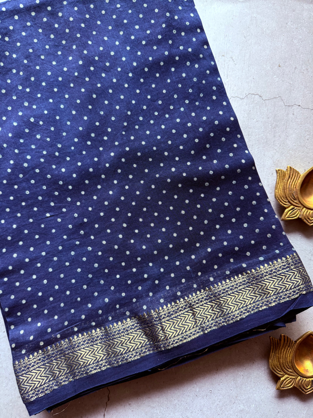 Nayithya | Indigo Akola Block Printed Maheshwari Saree
