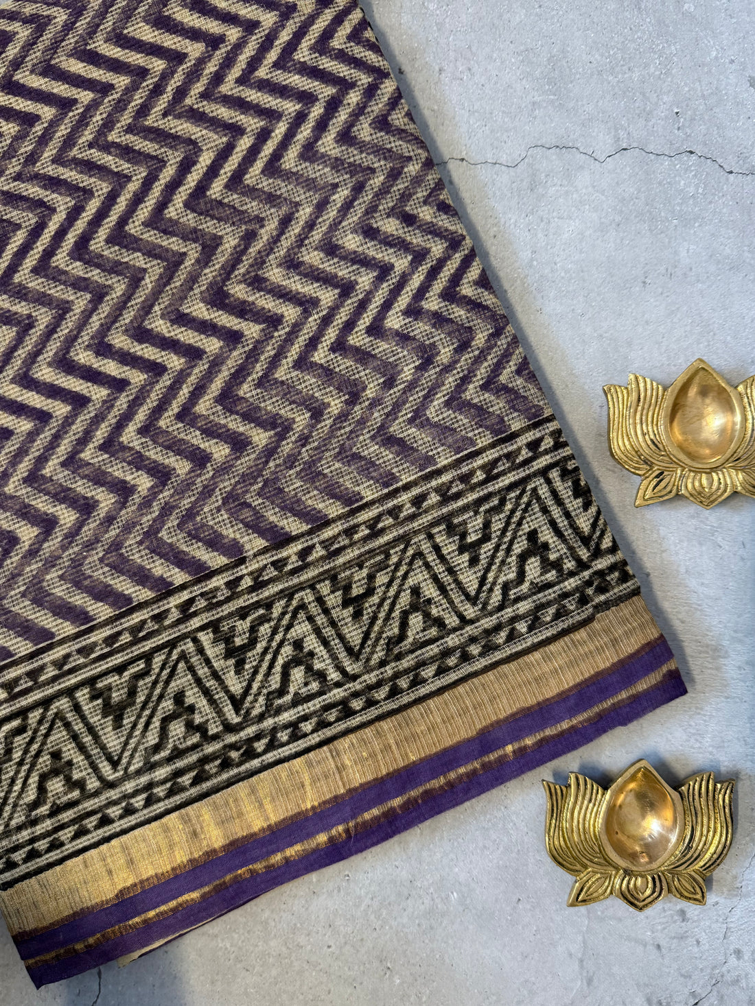 Akola Hand Block Printed Saree with Woven Maheshwari Borders An ode to slow craft and...