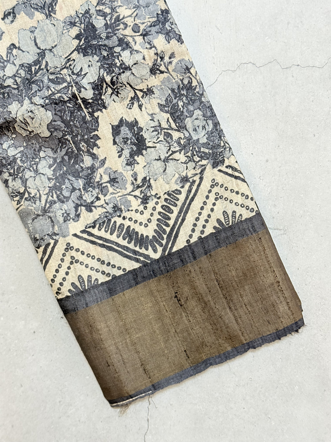 Arunima | Black and White Floral Printed Tussar Silk Saree