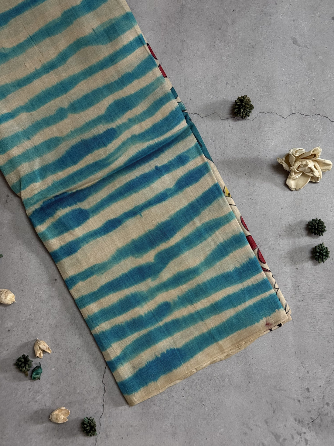 Rhea | Blue and White Hand Painted Tussar Silk Saree