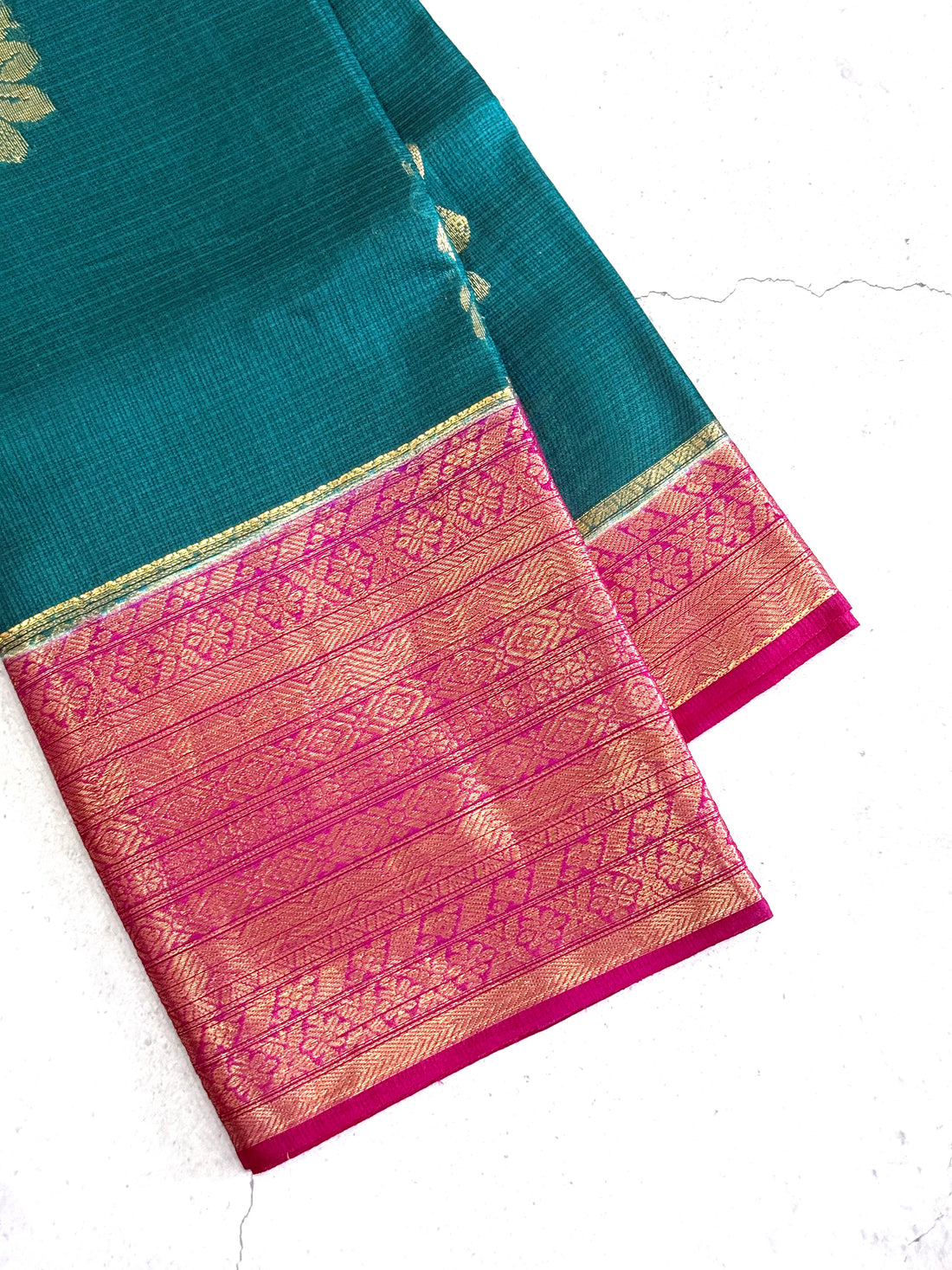 Sagari | Green and Majenta Pink Kota Silk Saree