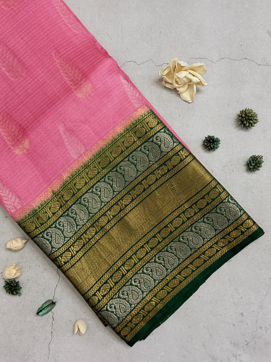 Adhiti | Onion Pink Printed Kanjivaram Kora Silk Saree