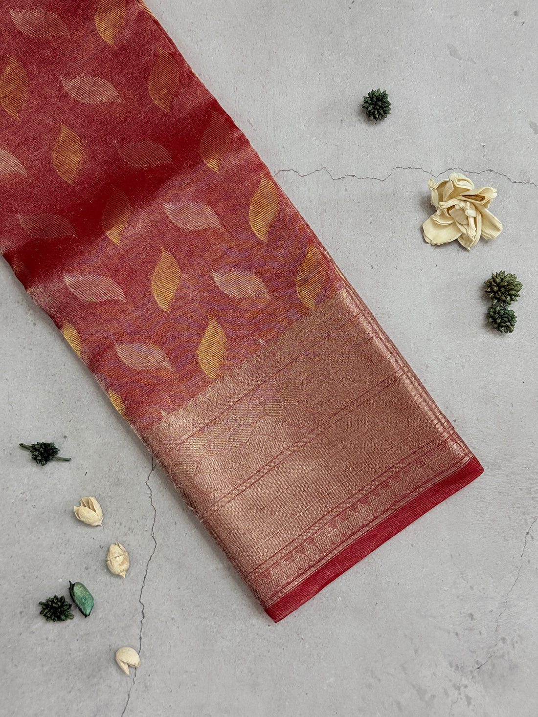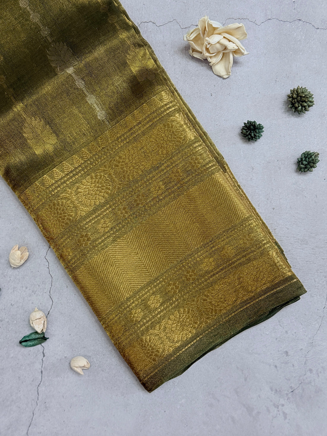 A Glass Tissue Silk saree is a breathtaking blend of elegance and opulence, crafted from...