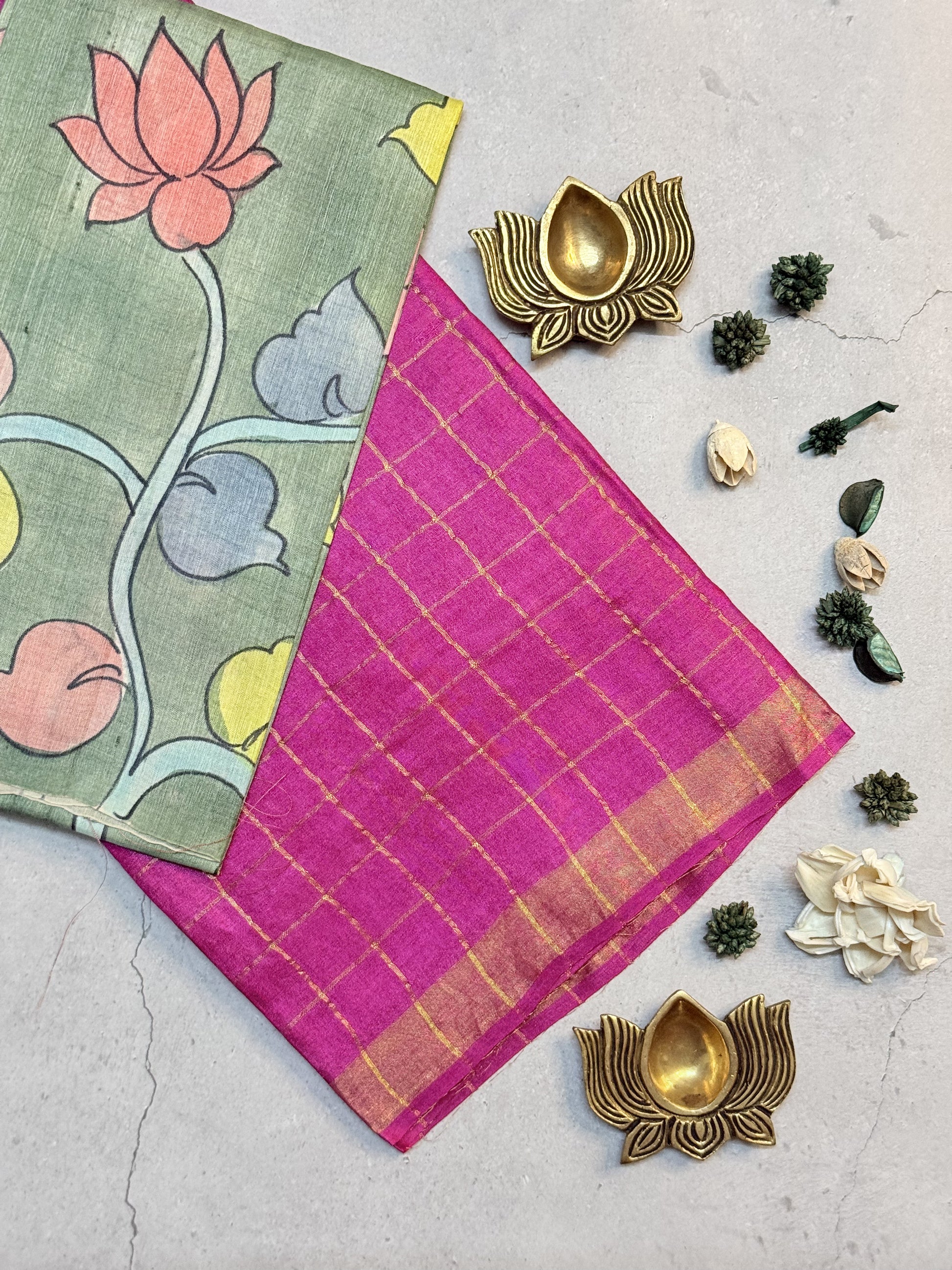 Each saree at House of Chamanthi is handpicked and thoughtfully curated to reflect timeless beauty and artisanal finesse. Crafted with care by skilled hands, every drape carries a story — of heritage, elegance, and quiet luxury.