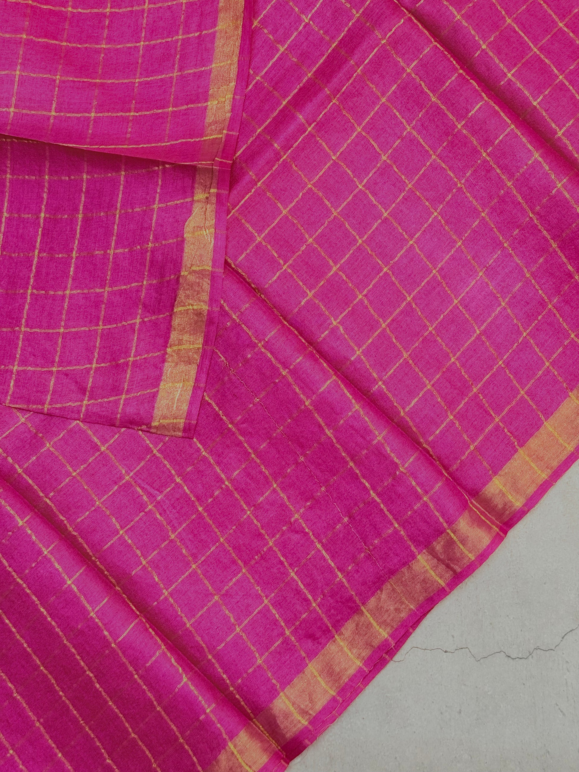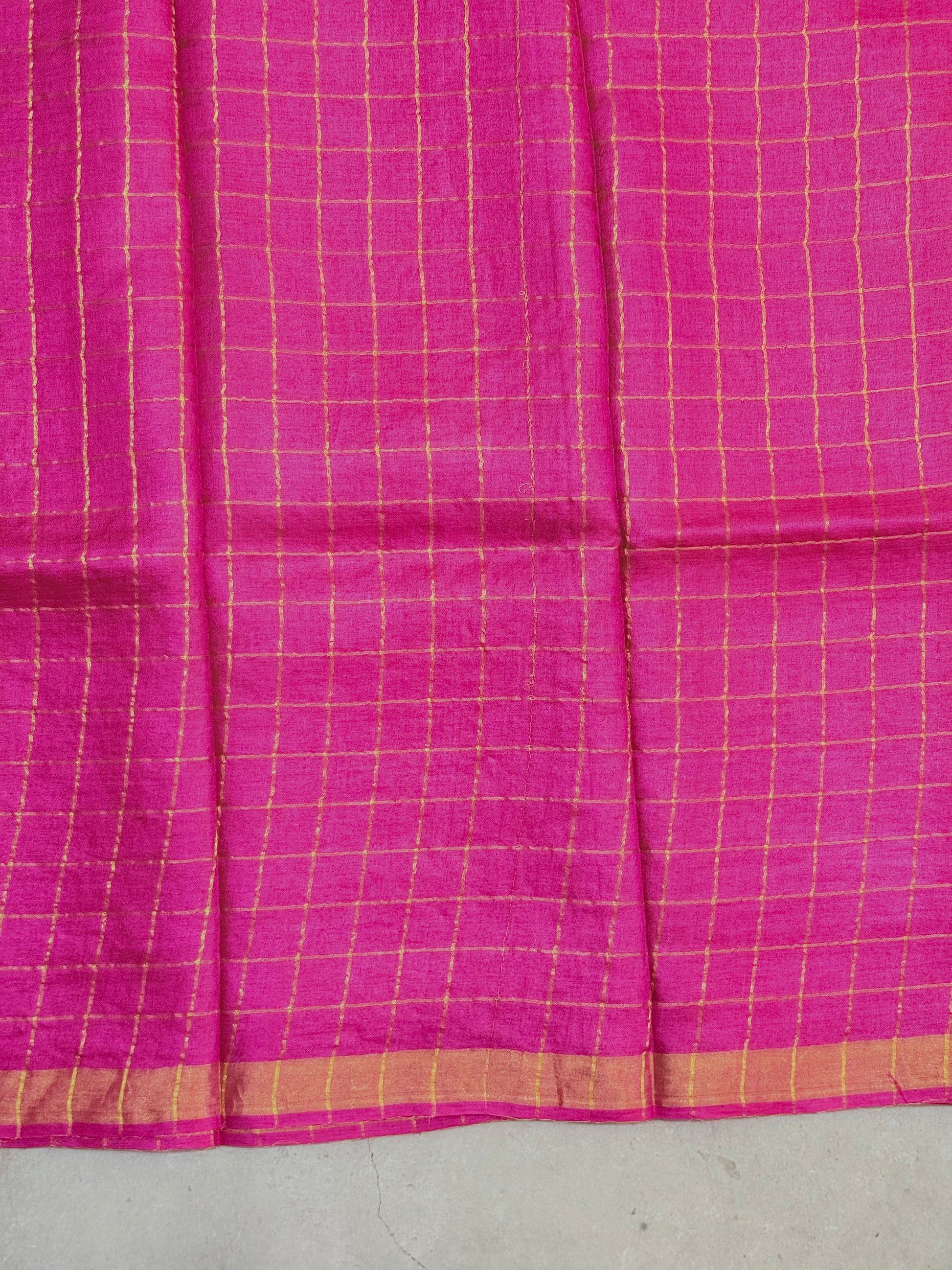 Achala | Pink Zari Checks Tussar Silk Saree