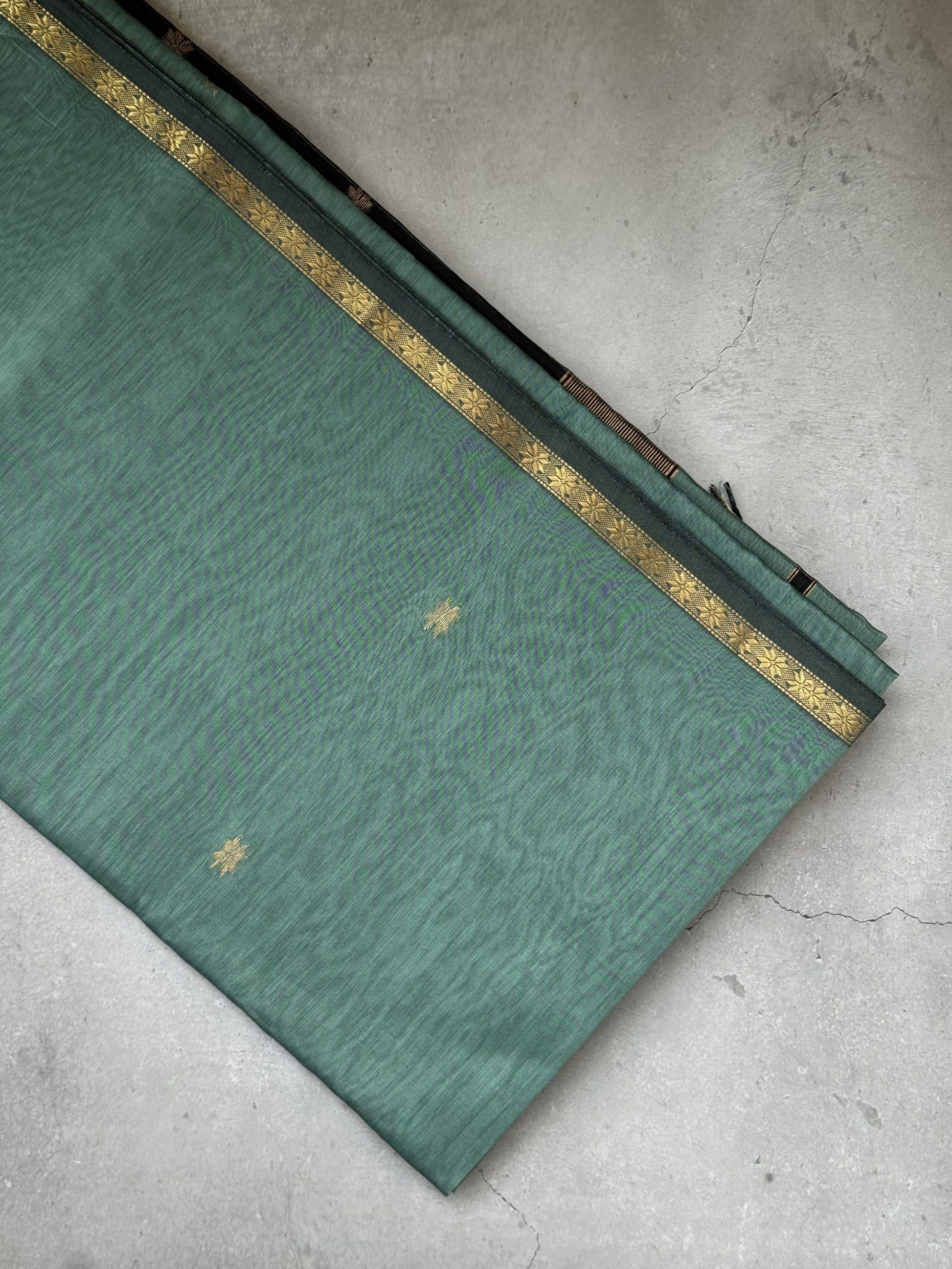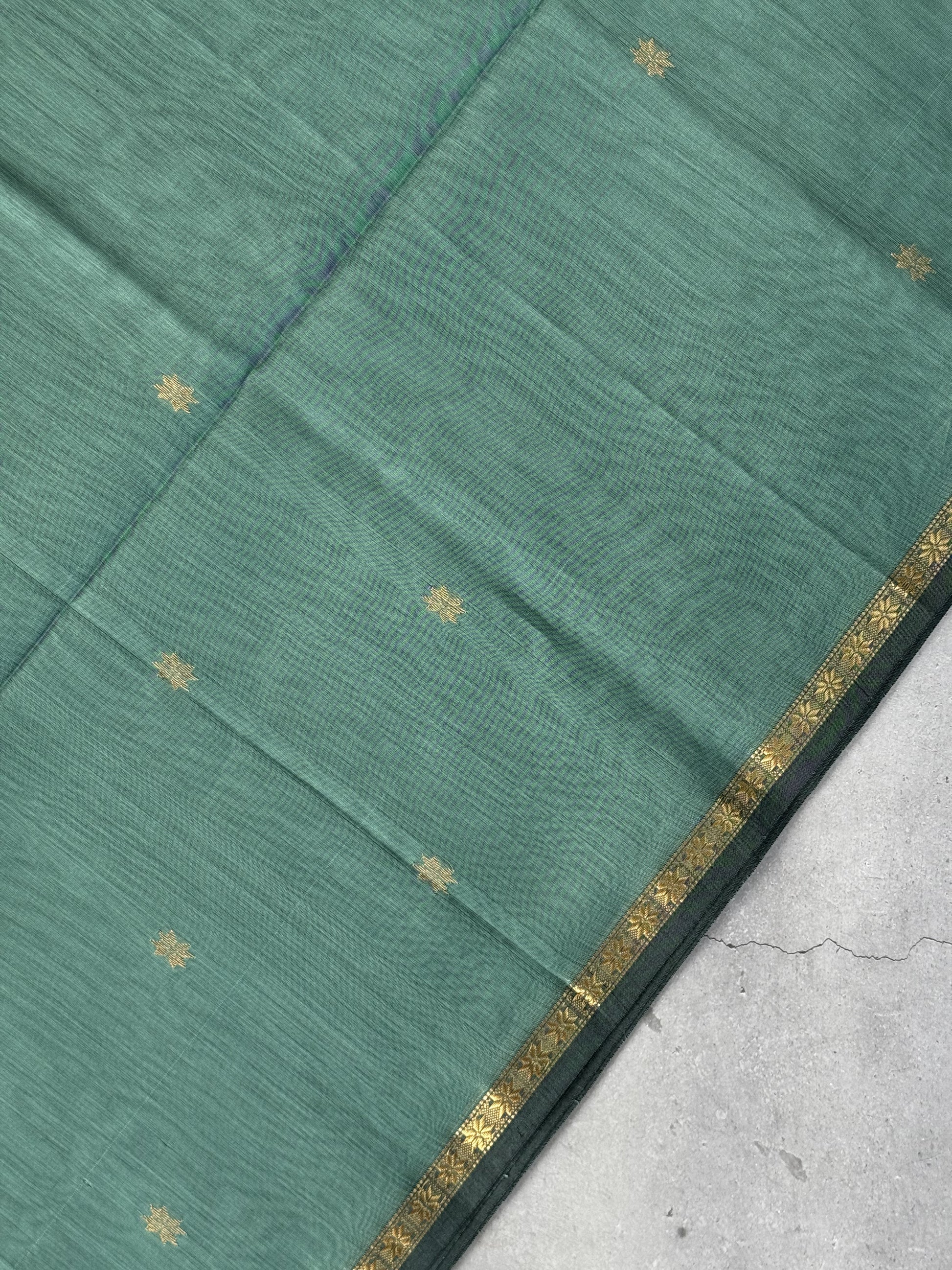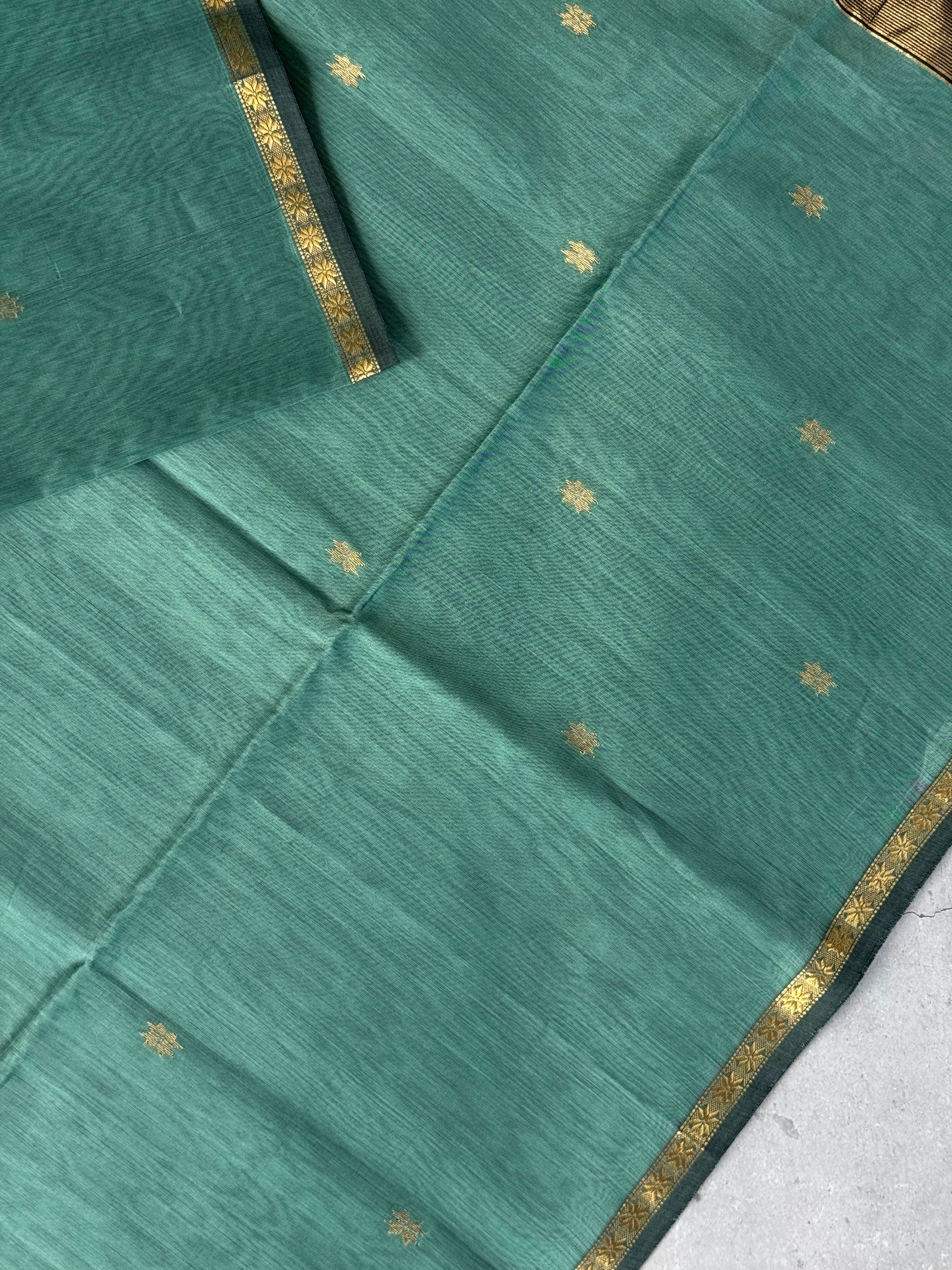Maheswari Silk Cotton is celebrated for its perfect fusion of sophistication and comfort. The silk lends a rich sheen and graceful drape, while the cotton ensures breathability and softness. The borders, often intricately woven with metallic threads, enhance the saree’s opulence and elegance. This harmonious blend results in a visually stunning fabric that seamlessly merges traditional charm with contemporary appeal, making it perfect for both festive occasions and refined daily wear.