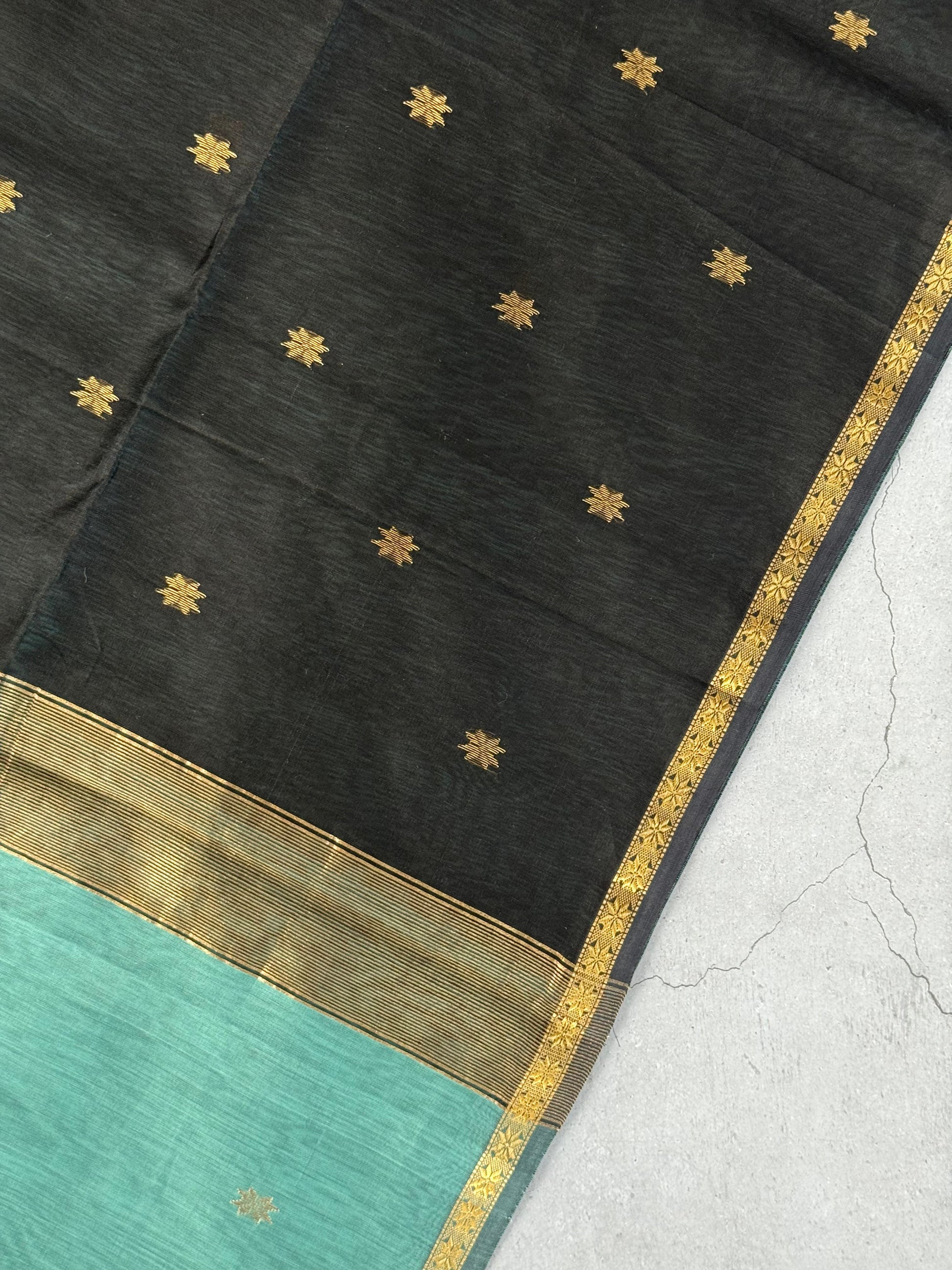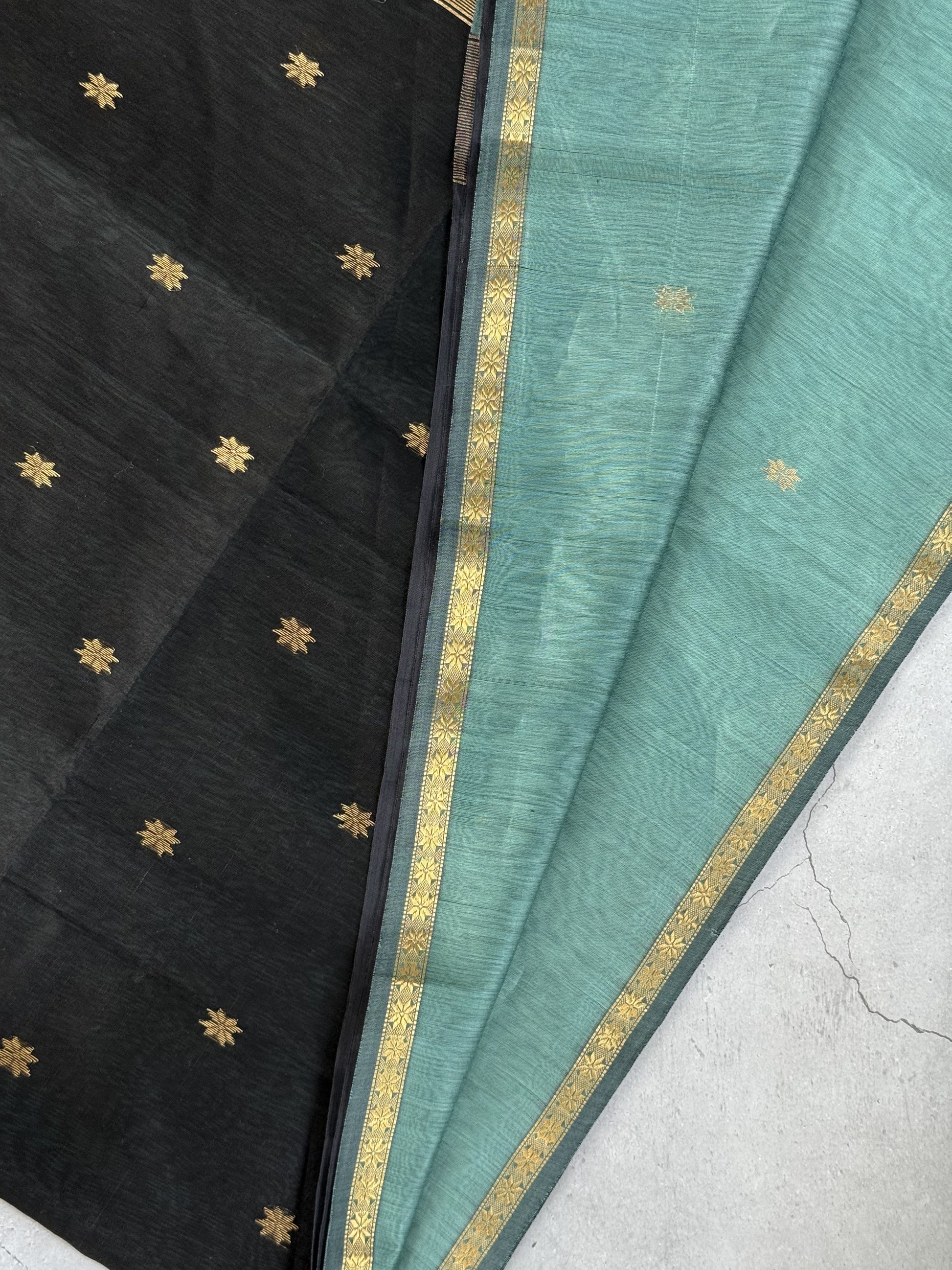 Apsara | Sky Blue And Black Maheshwari Silk Cotton Saree