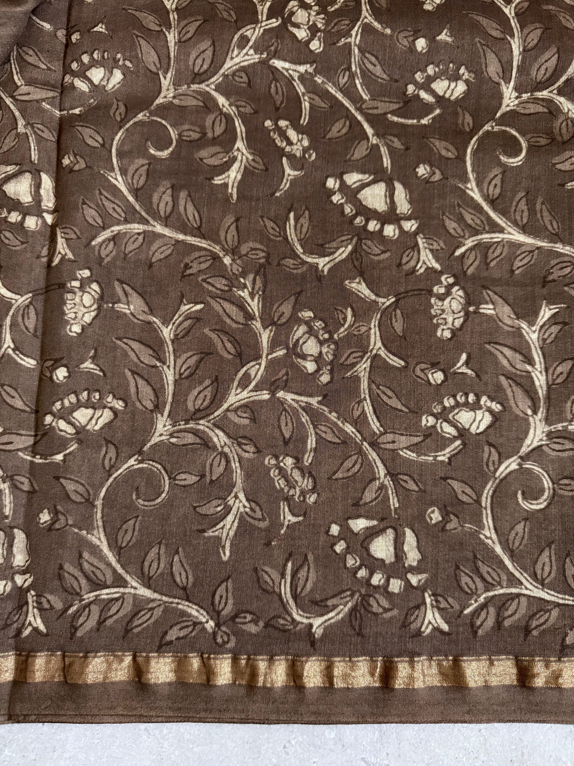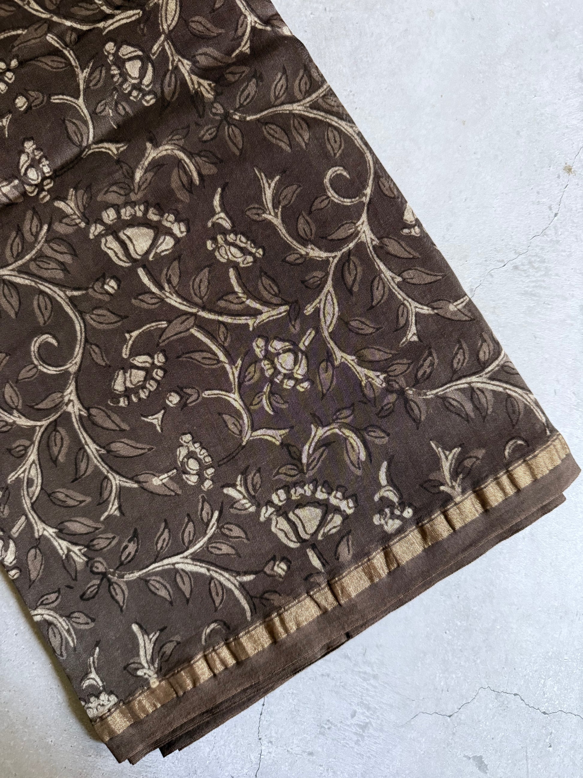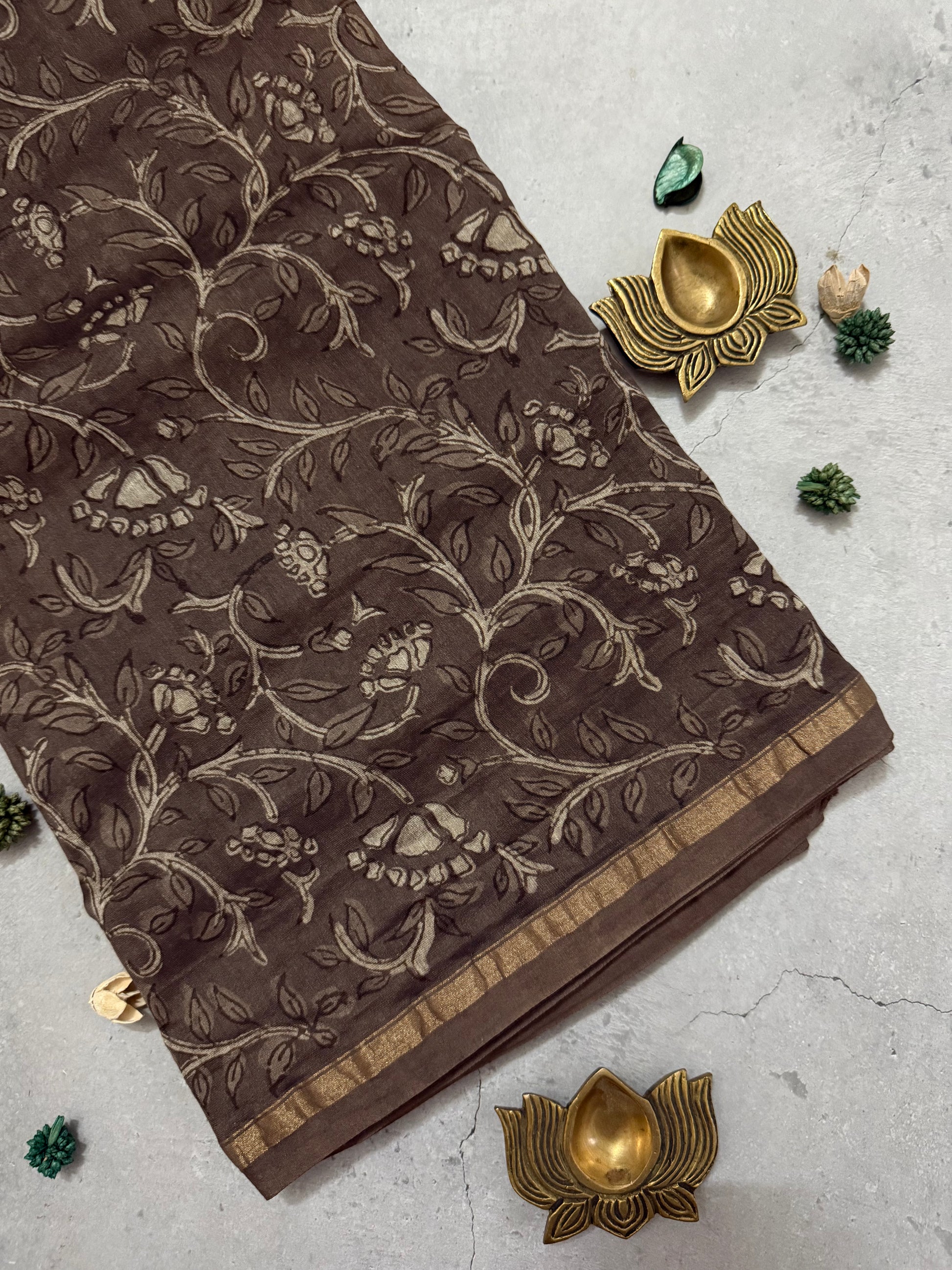 Chitraleela | Brown Akola Block Printed Chanderi Saree