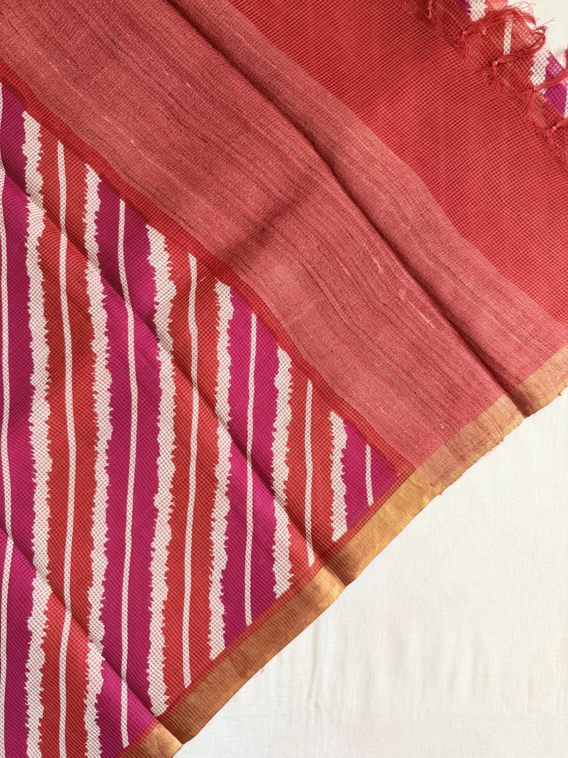 Heer | Pink and Orange Kota Tussar Silk Saree
