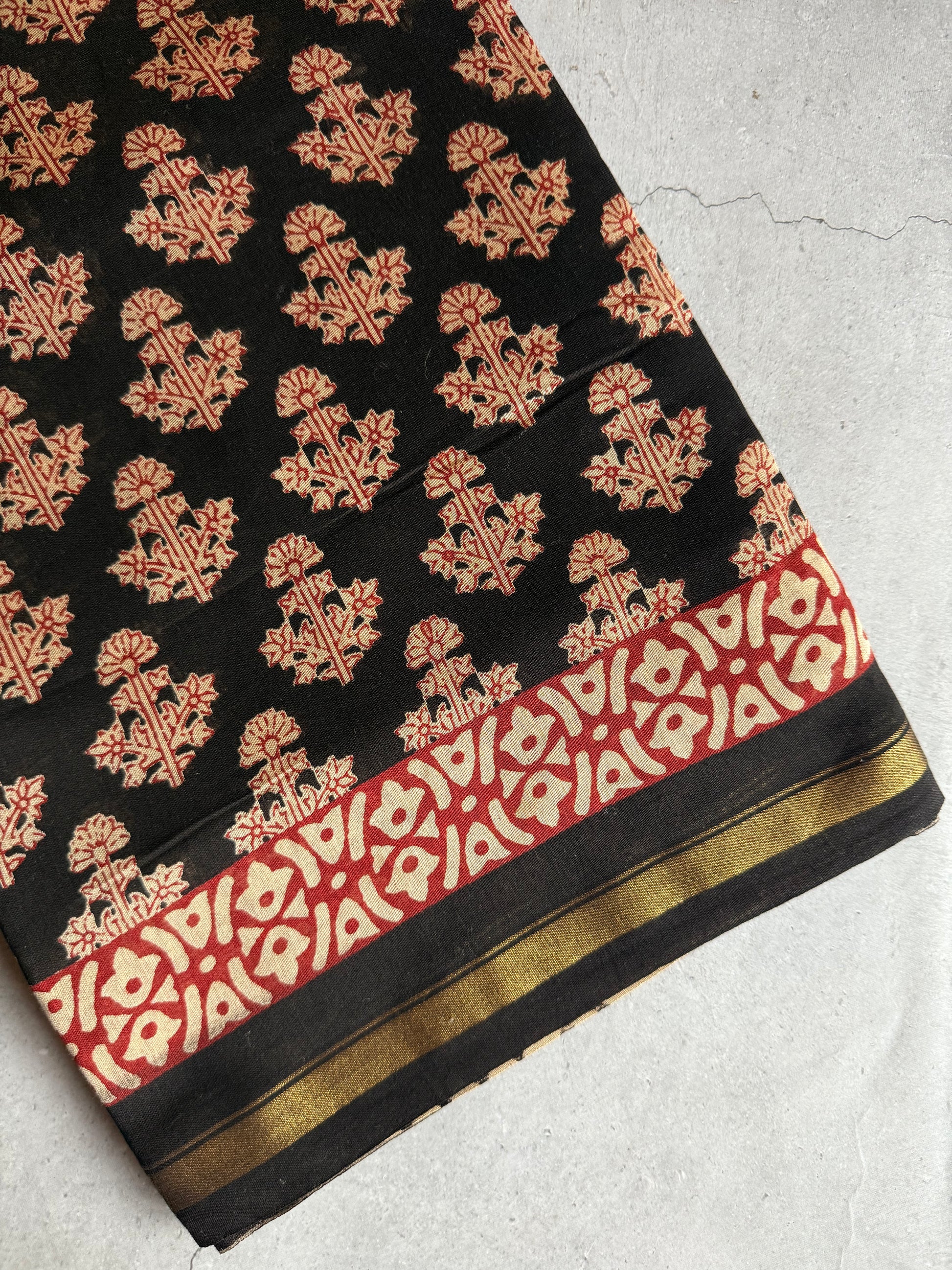 Hemapushpi | Black and Red Block Printed Chanderi Saree