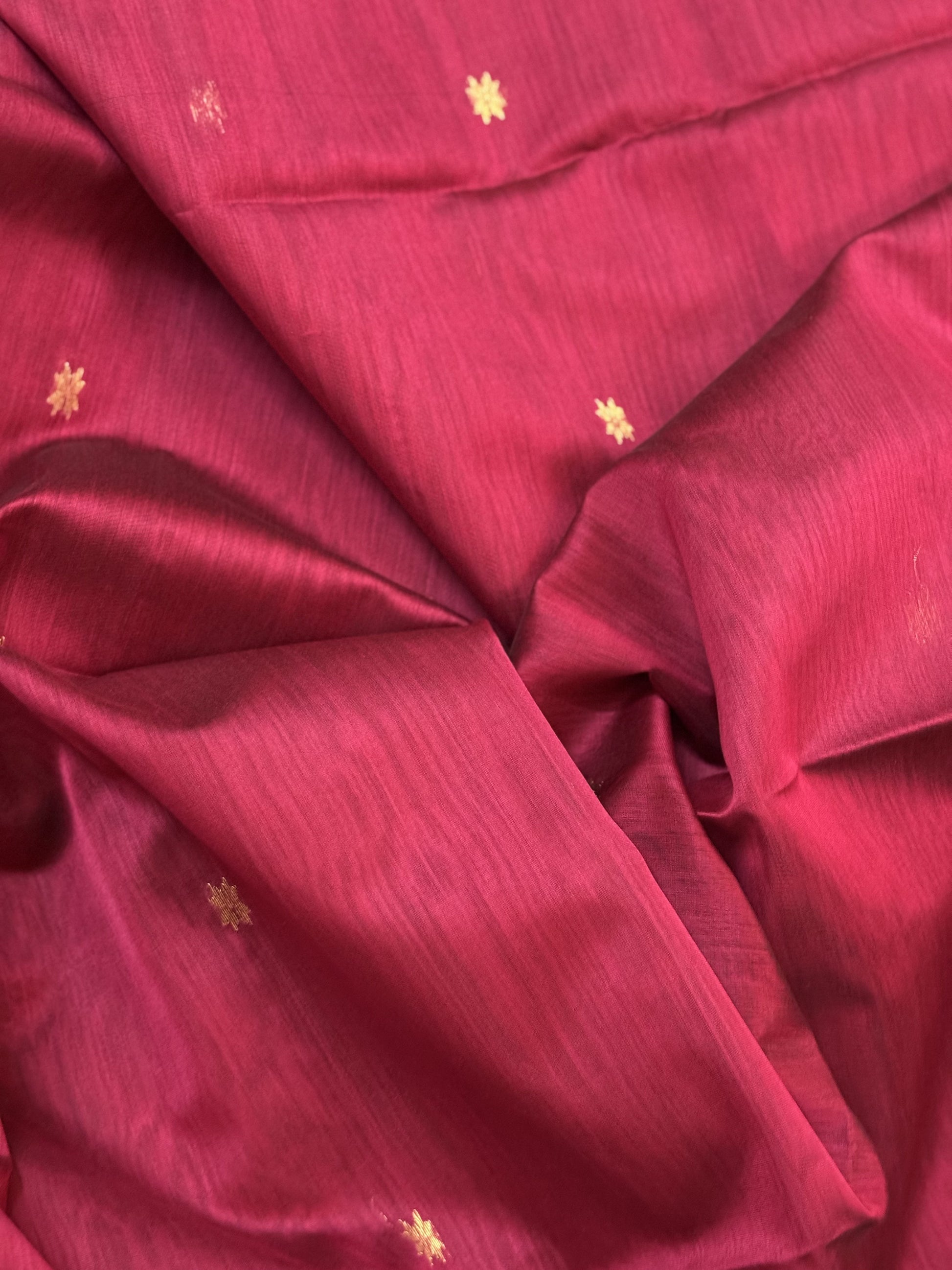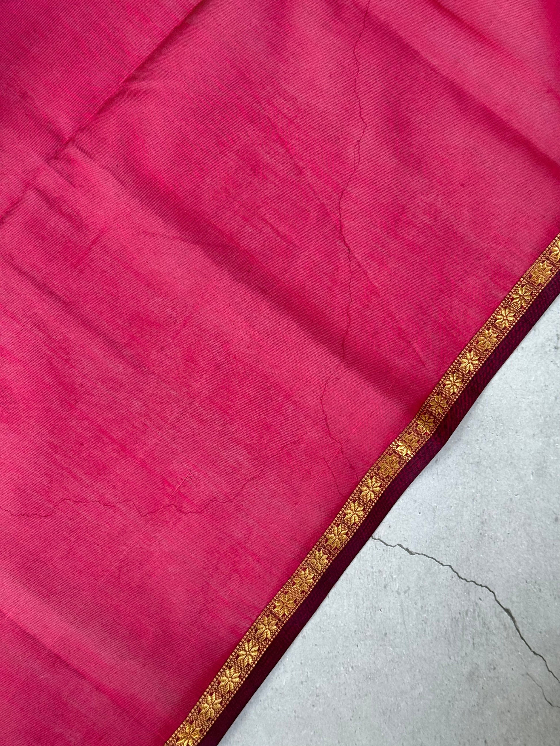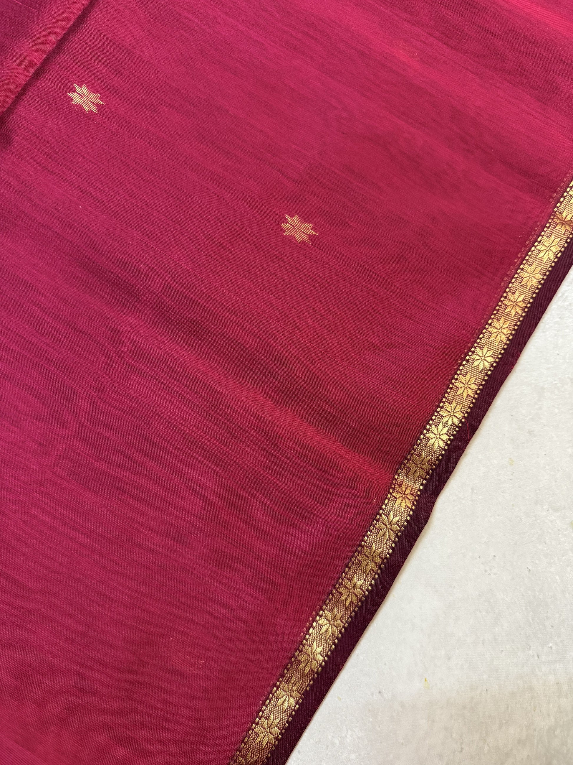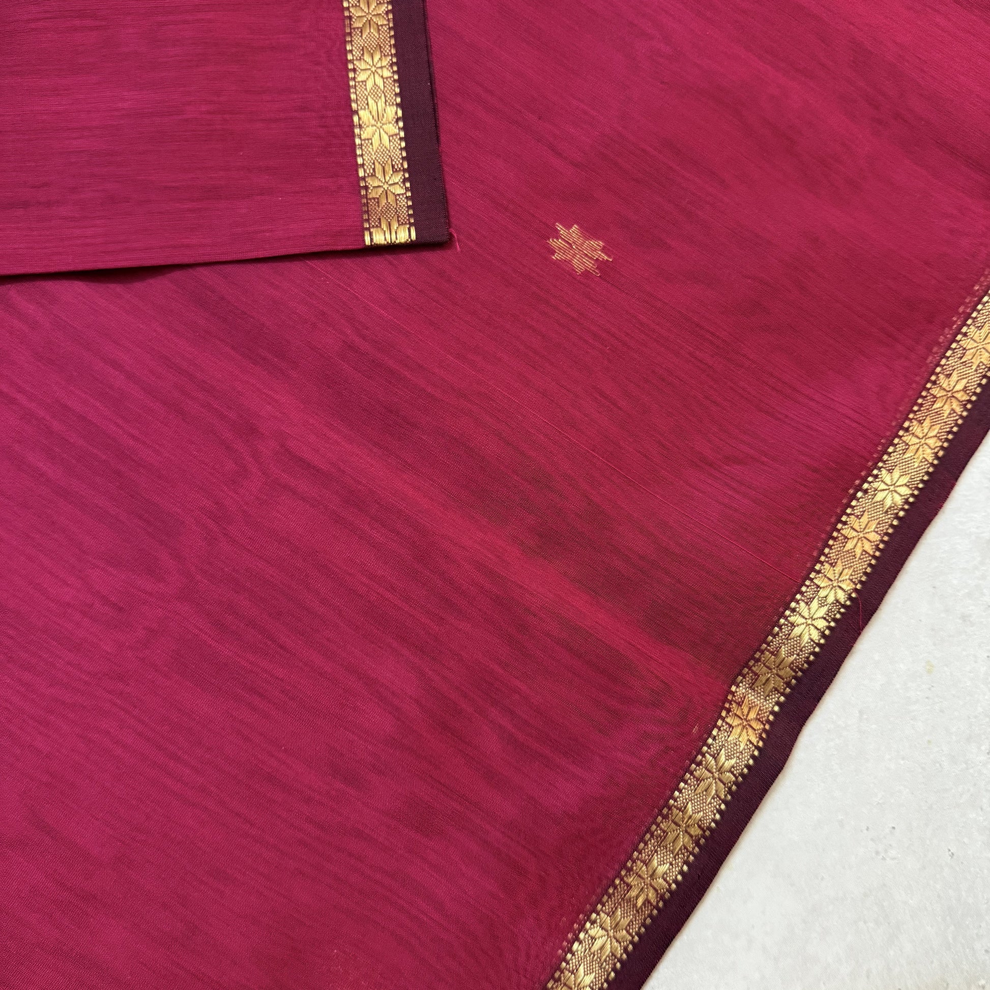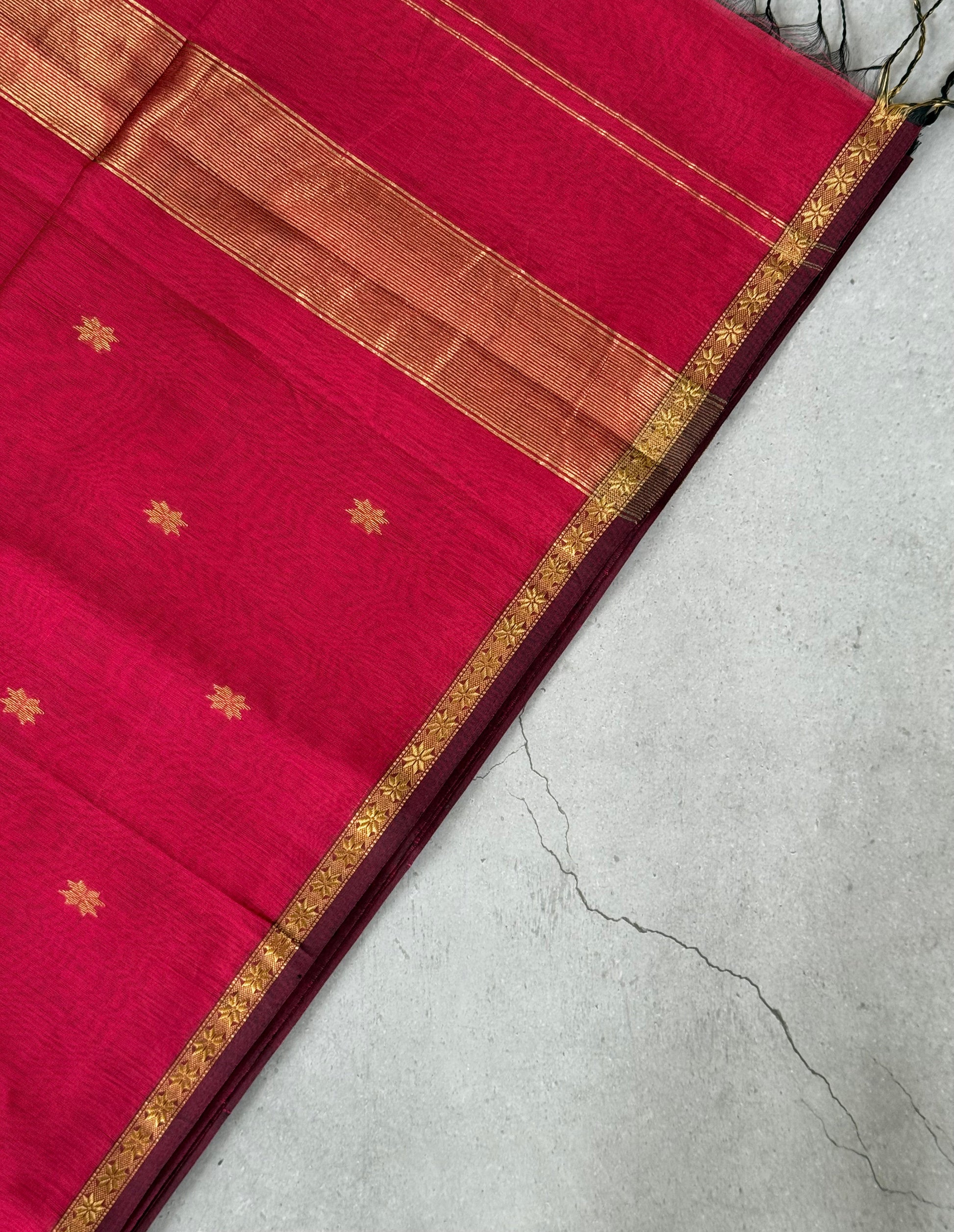 Impana | Pinkish Red Maheshwari Silk Cotton Saree