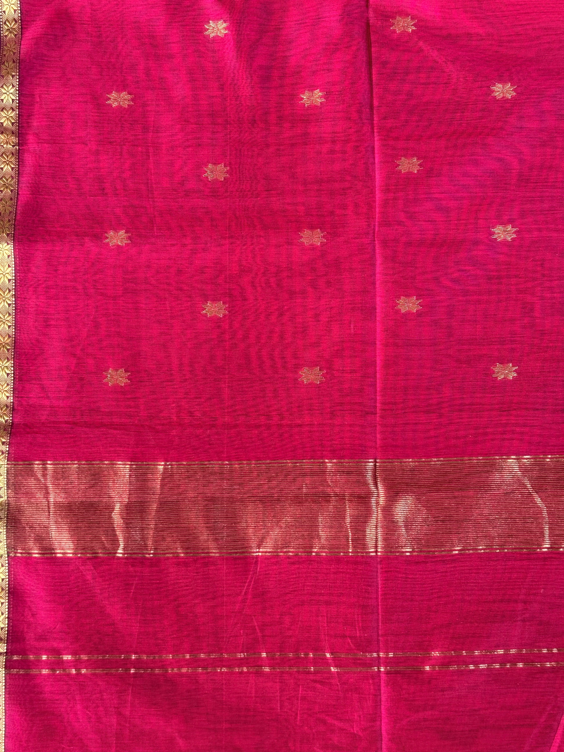 Maheswari Silk Cotton is celebrated for its perfect fusion of sophistication and comfort. The silk lends a rich sheen and graceful drape, while the cotton ensures breathability and softness. The borders, often intricately woven with metallic threads, enhance the saree’s opulence and elegance. This harmonious blend results in a visually stunning fabric that seamlessly merges traditional charm with contemporary appeal, making it perfect for both festive occasions and refined daily wear.