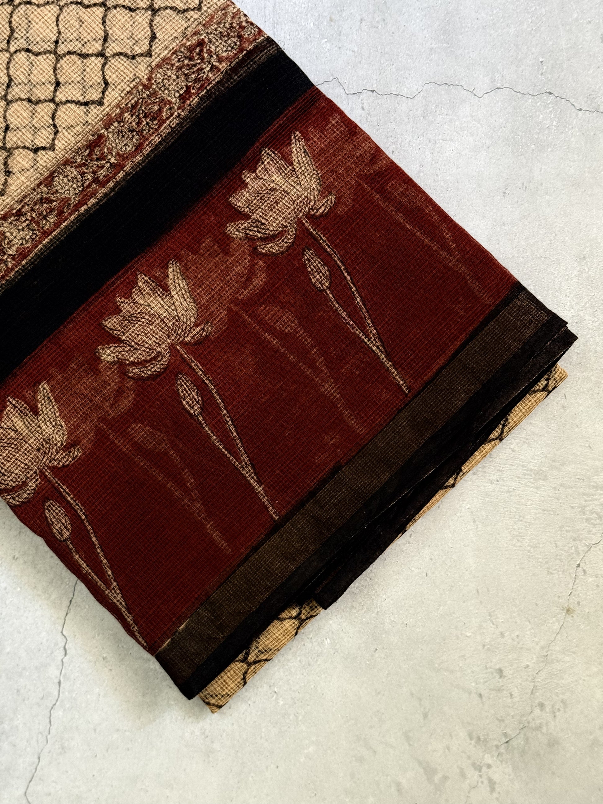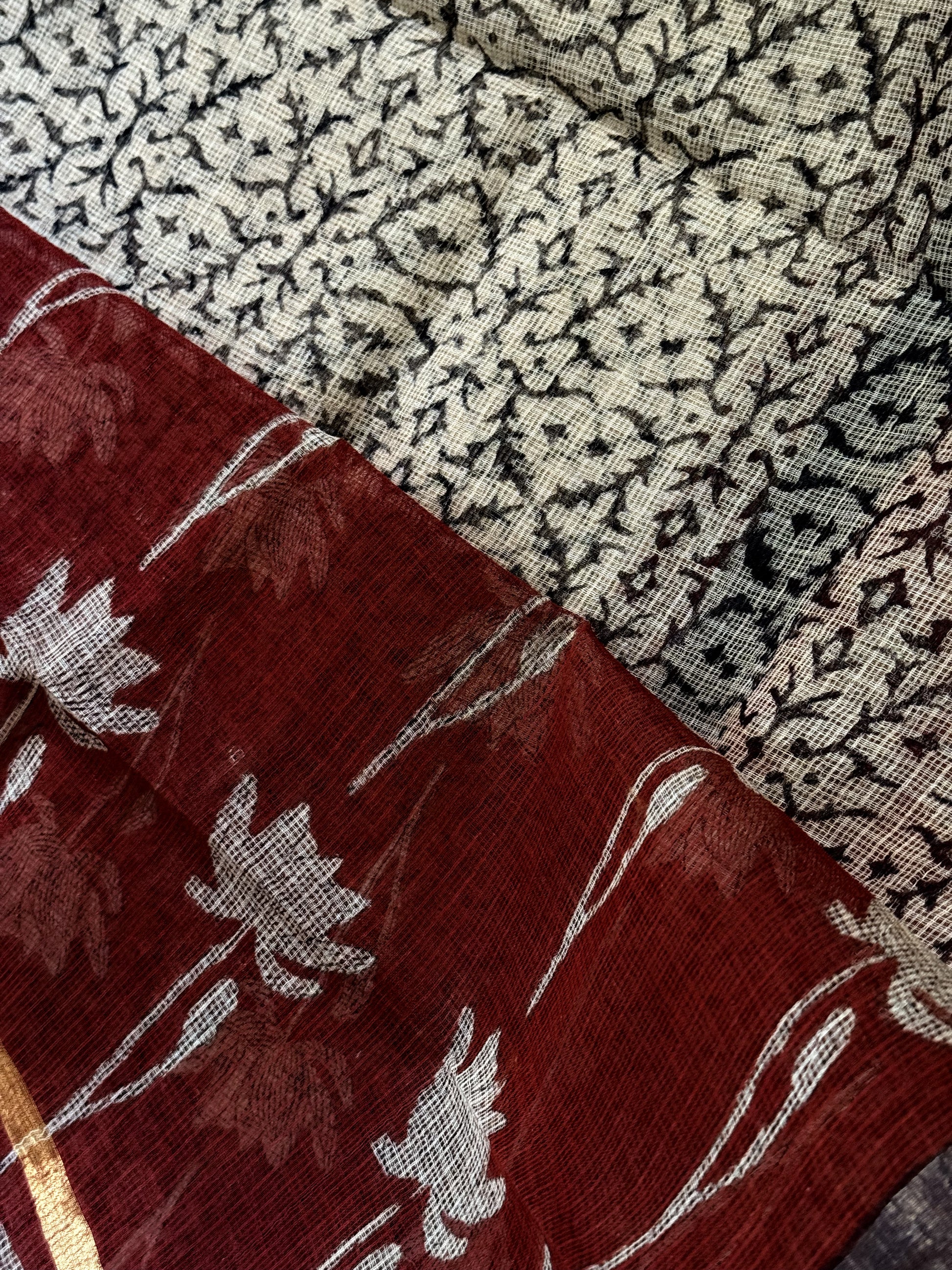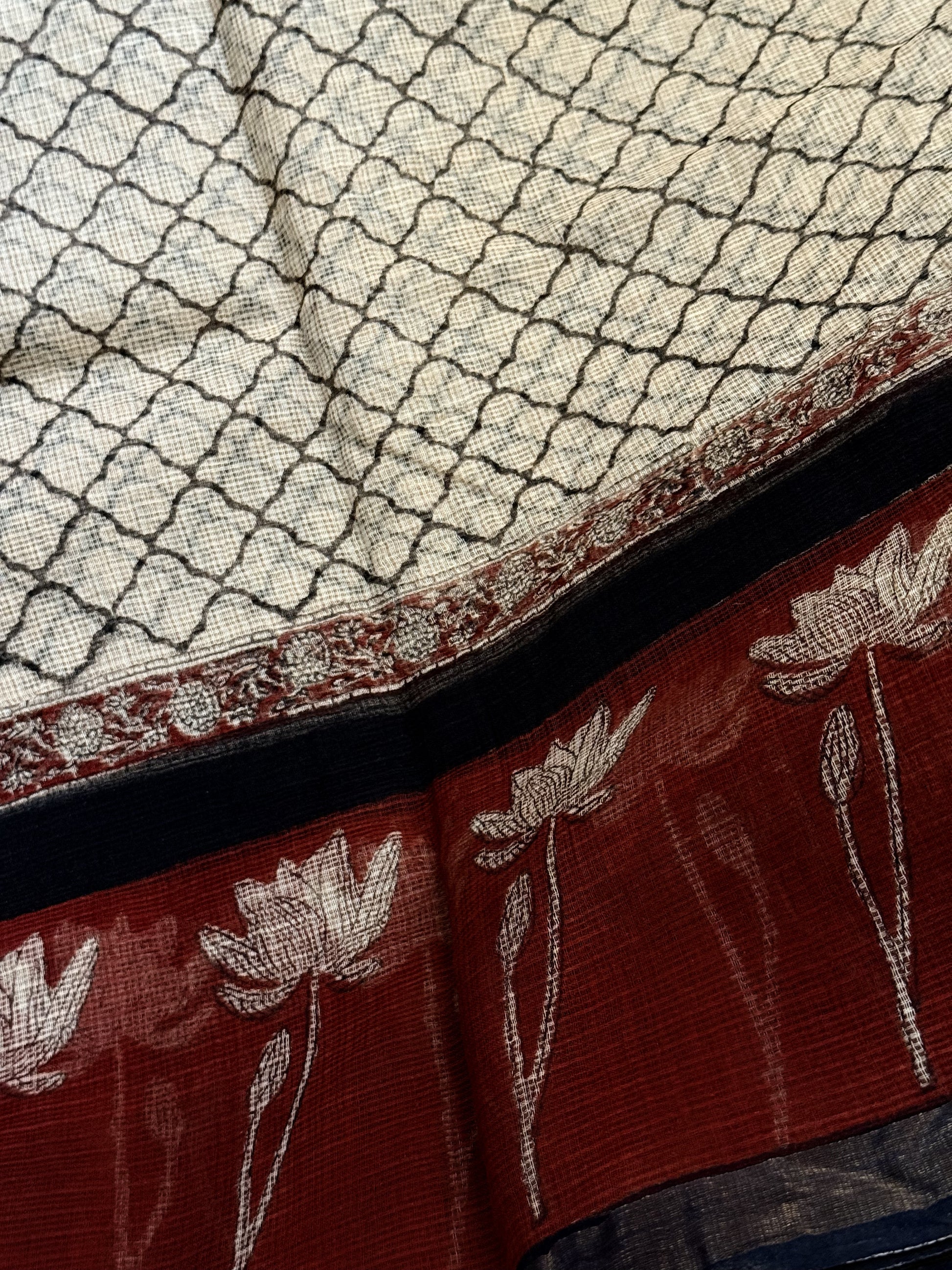 Kota Doria sarees are known for their lightweight, airy fabric and intricate weaving techniques. These sarees come in a variety of vibrant prints and colors, making them perfect for both casual and festive occasions. The delicate, translucent texture of the fabric ensures comfort, while the charming patterns add a touch of elegance and style. Ideal for warm weather, Kota Doria sarees are not only visually stunning but also offer unmatched ease of wear.