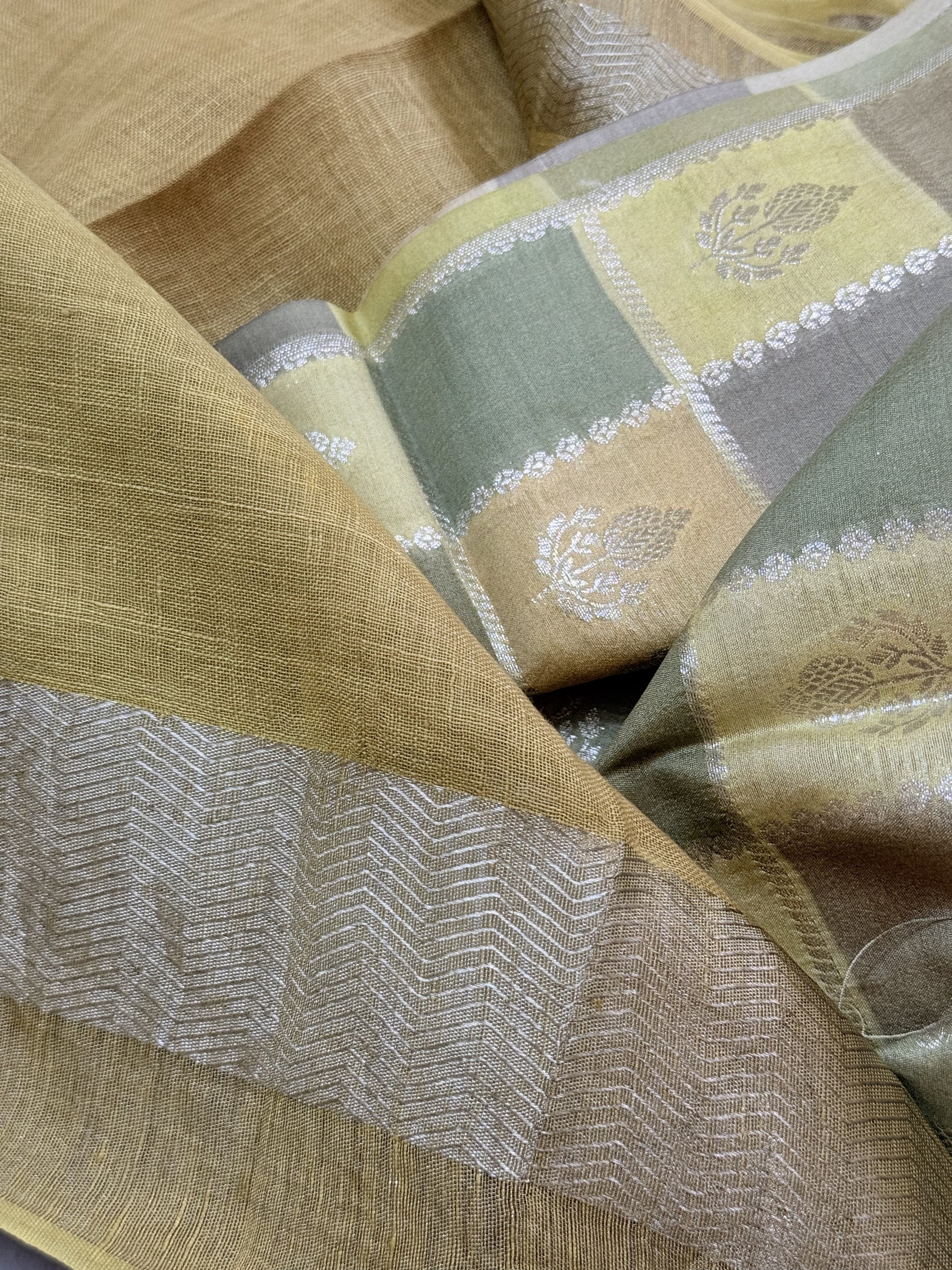 This Pure Handwoven Exclusive Linen Saree is a masterpiece of elegance and craftsmanship, crafted from premium linen for a light, breathable feel with a sophisticated drape. The saree features delicate, intricate weaving that showcases the timeless beauty of linen, perfect for both casual and festive occasions. Accompanying the saree are two distinct blouse pieces: a running blouse in matching linen fabric for a seamless look and a designer blouse in luxurious Mashru silk, adding a touch of opulence and versatility. Whether you opt for the understated linen blouse or the rich, textured Mashru silk, this saree offers a perfect blend of tradition, comfort, and contemporary style.