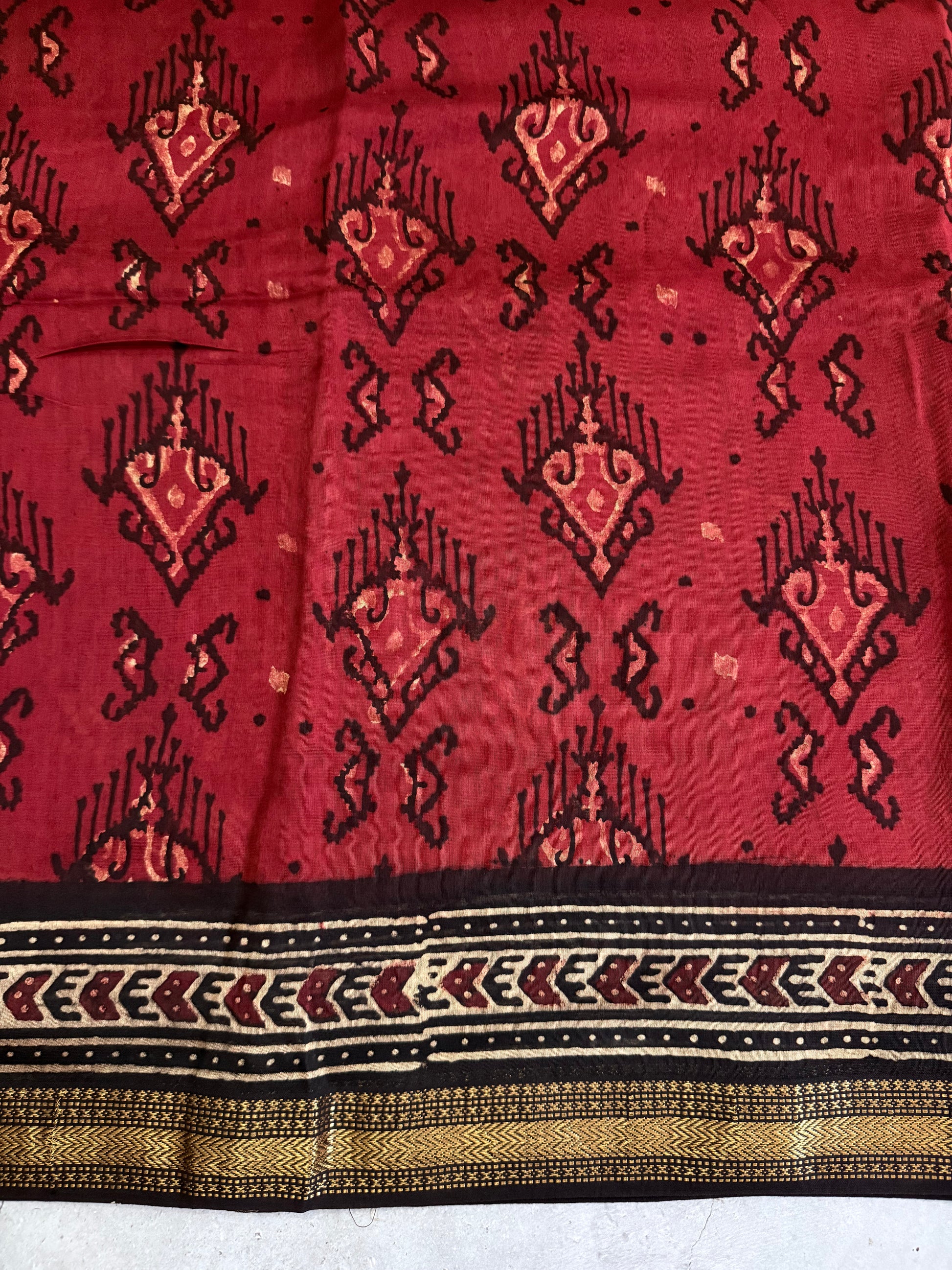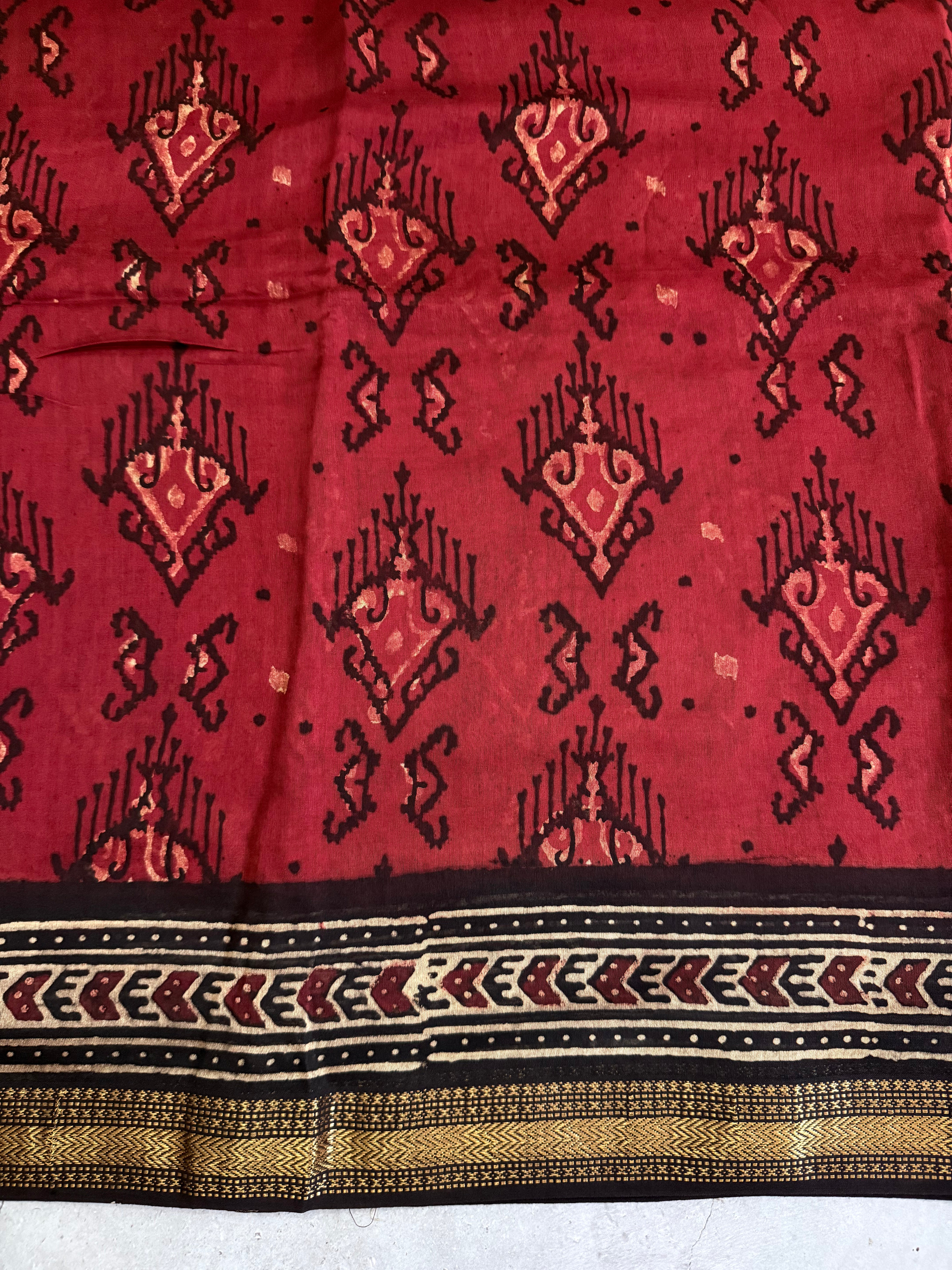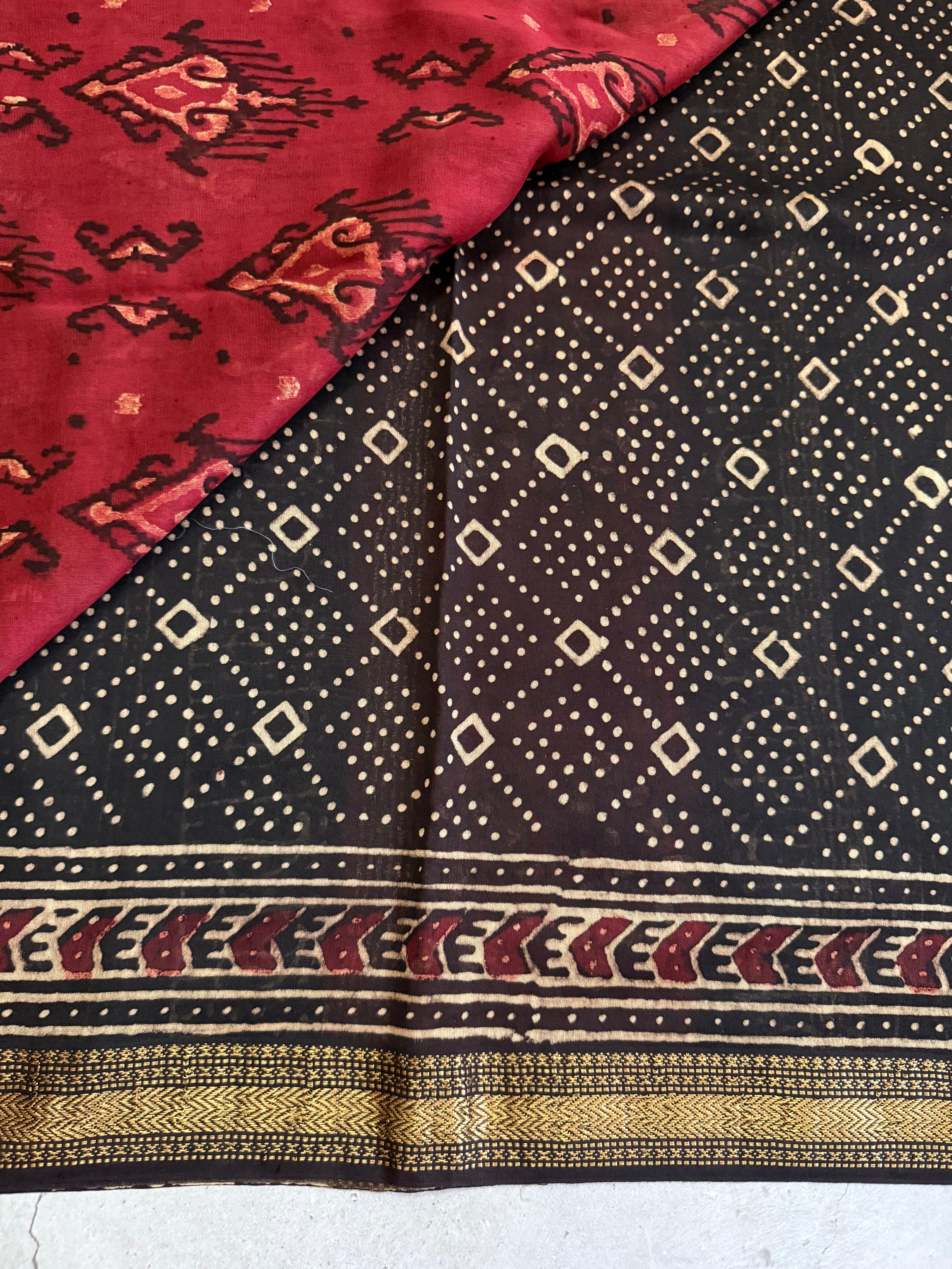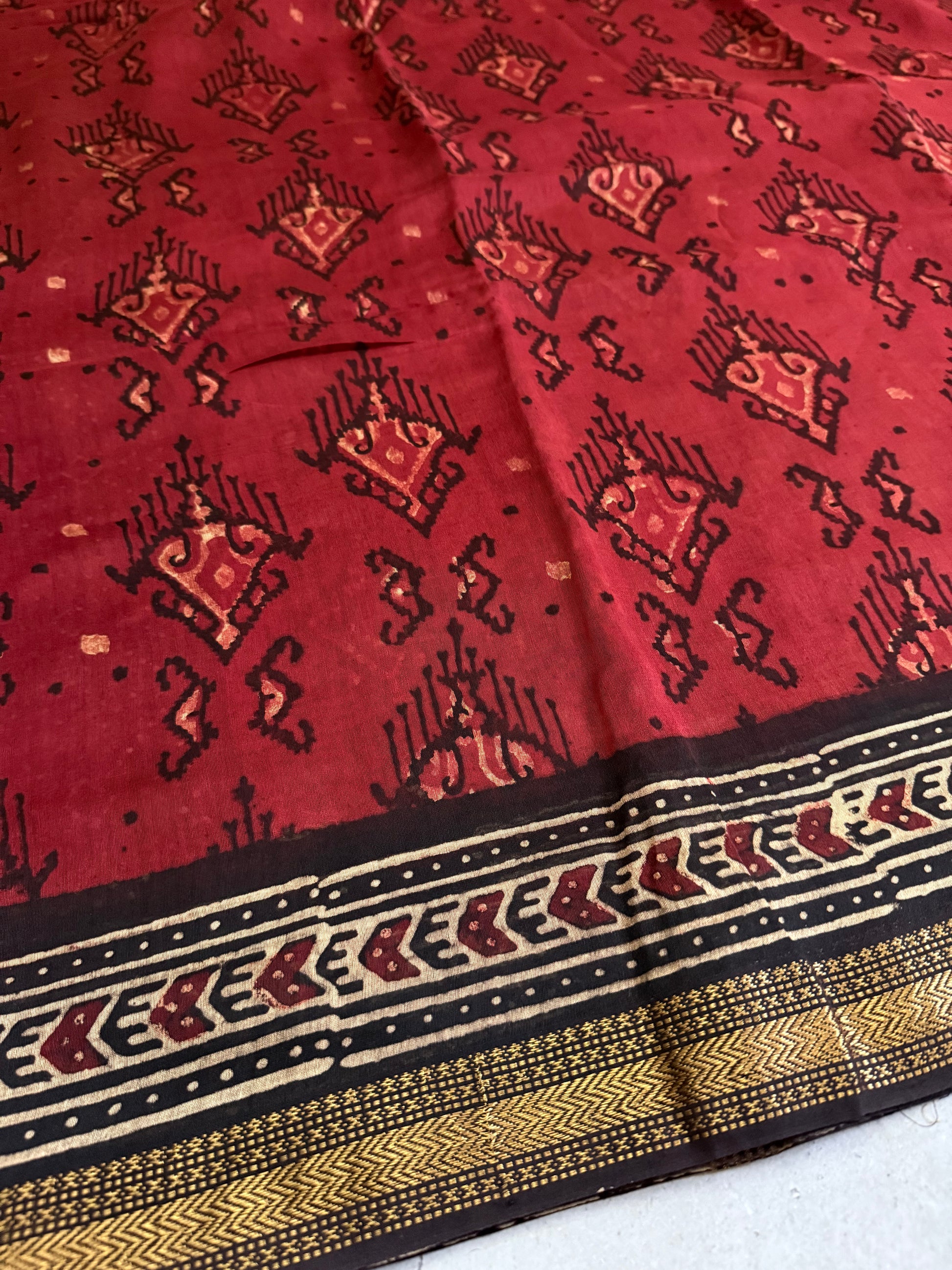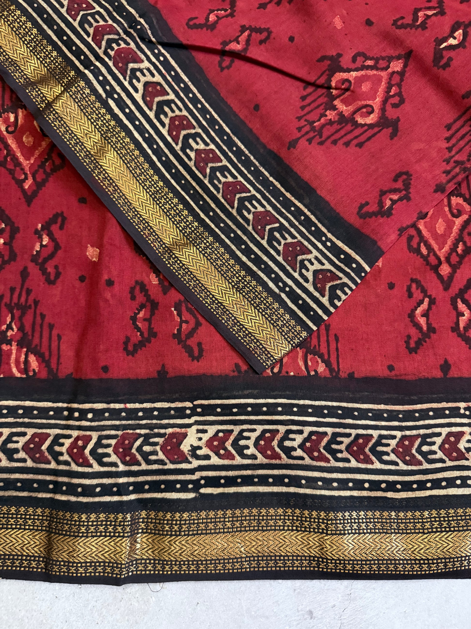 Kameshwari | Red and Black Block Printed Maheshwari Saree