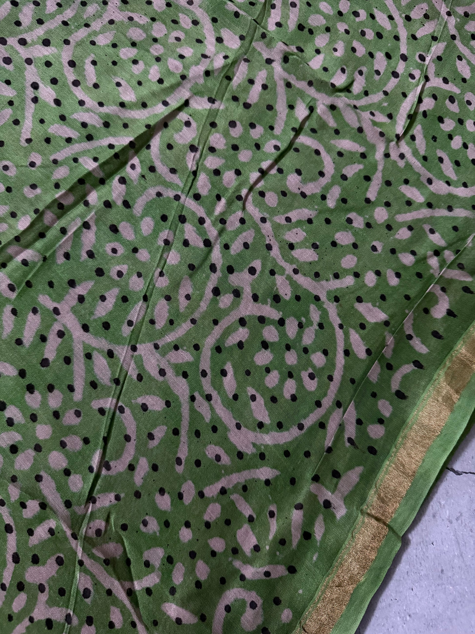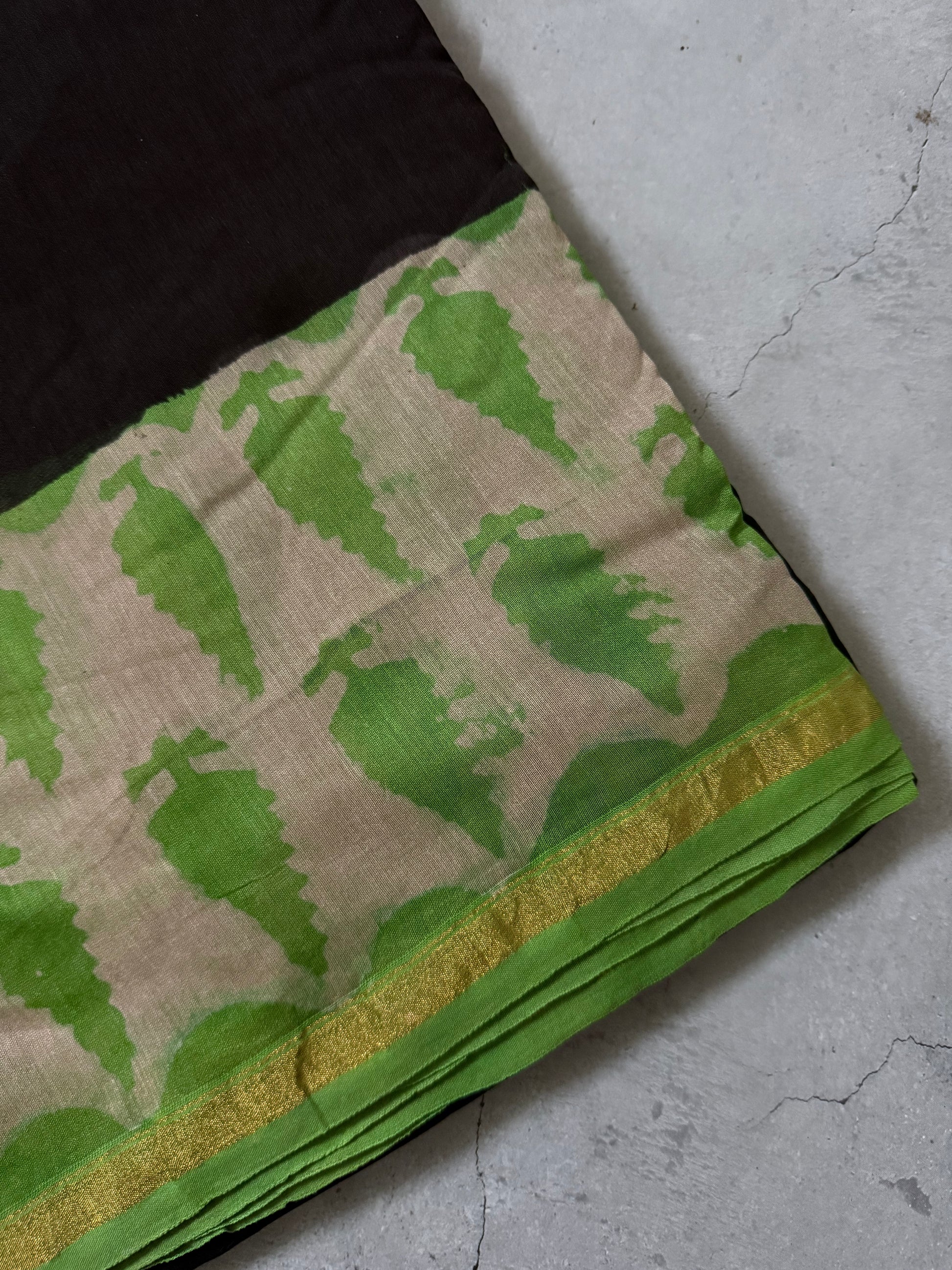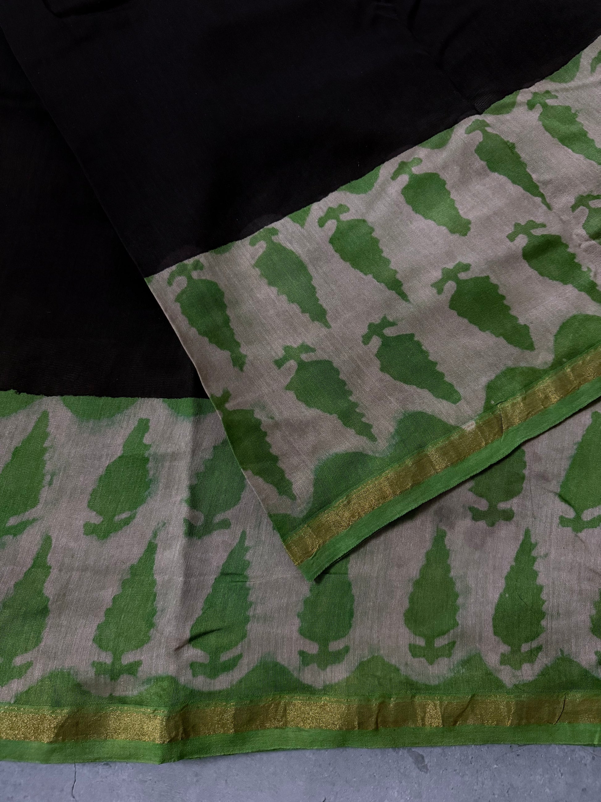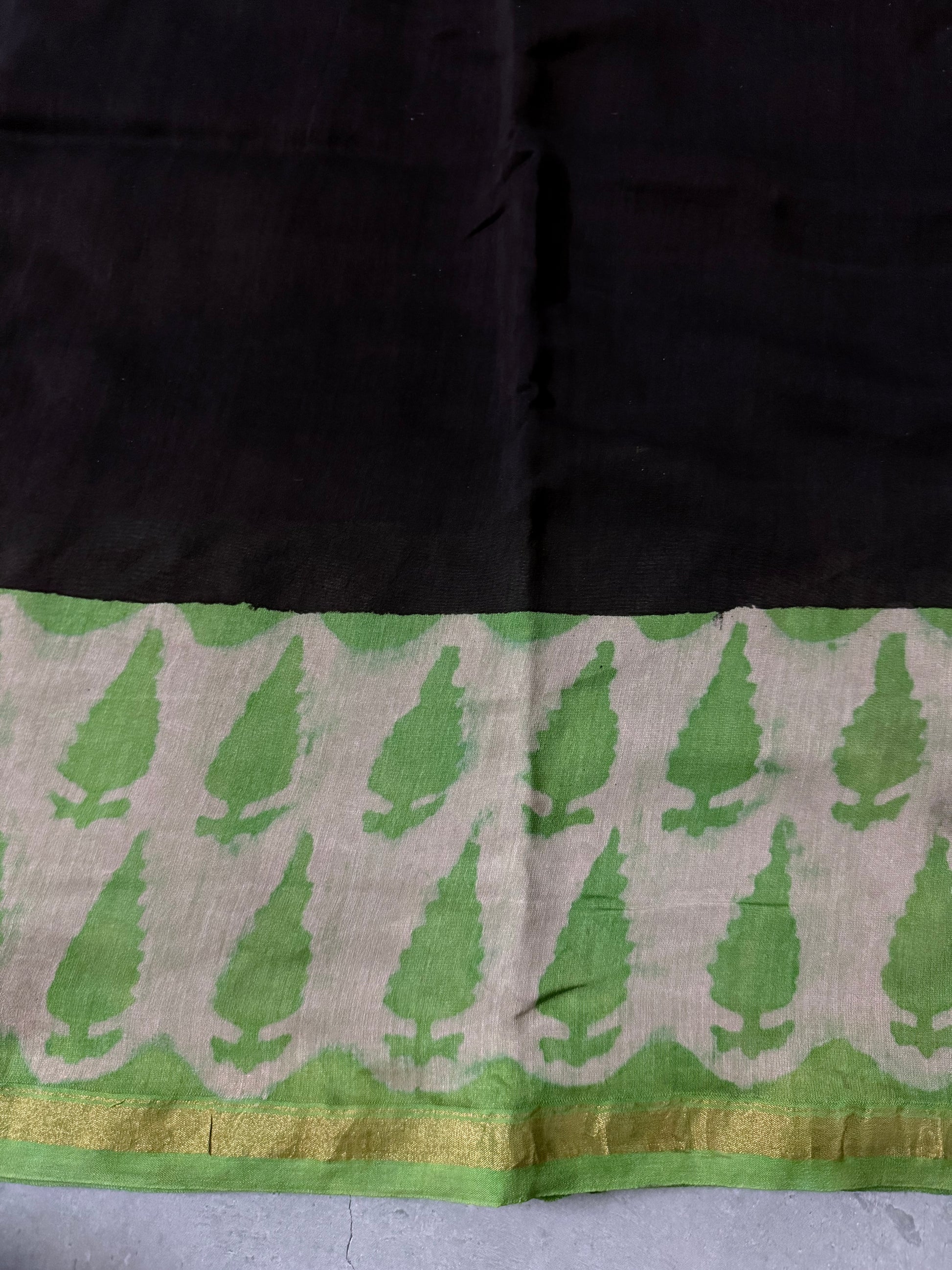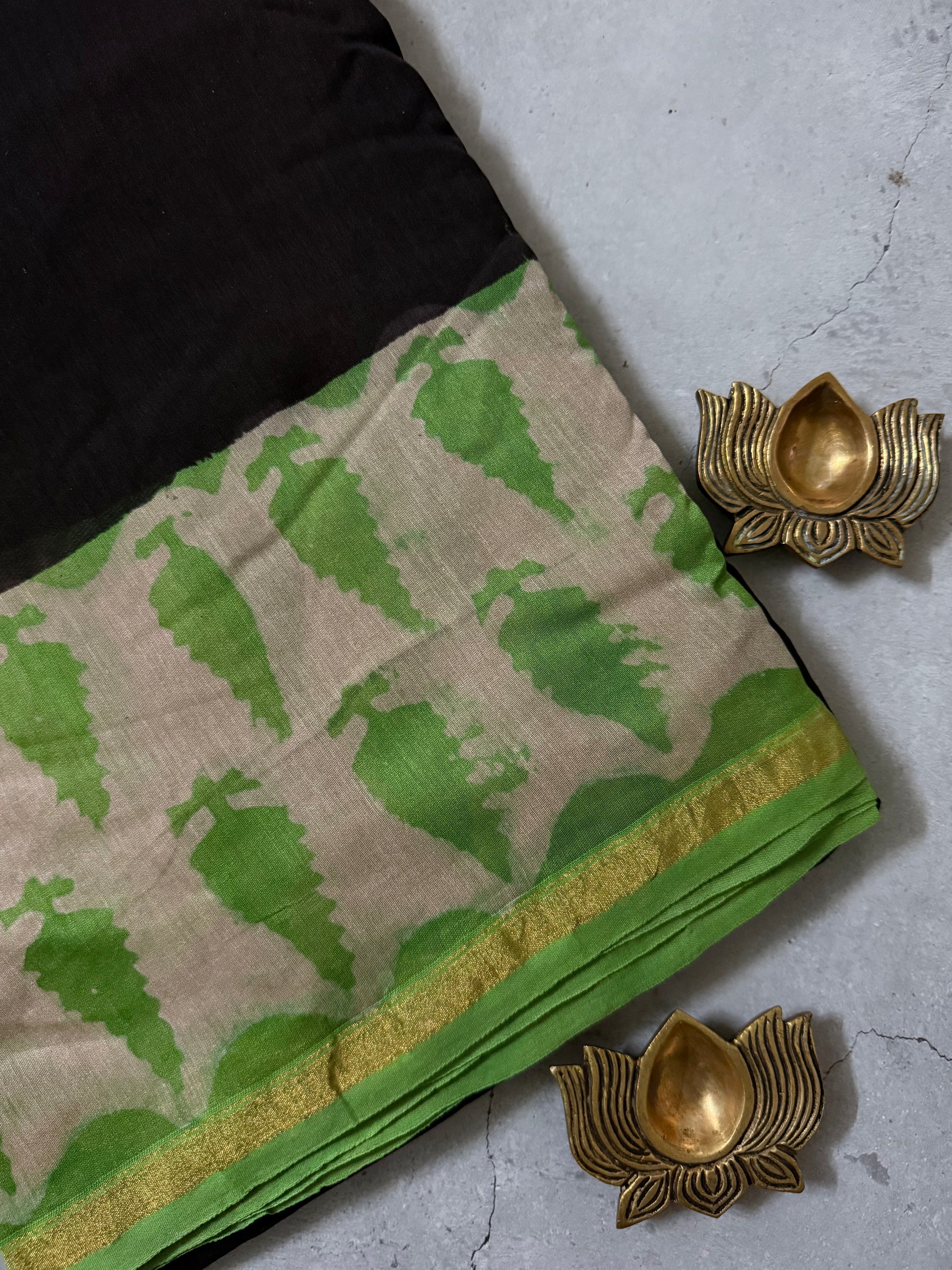 Kanisha | Black and Green Floral Block Printed Chanderi Saree