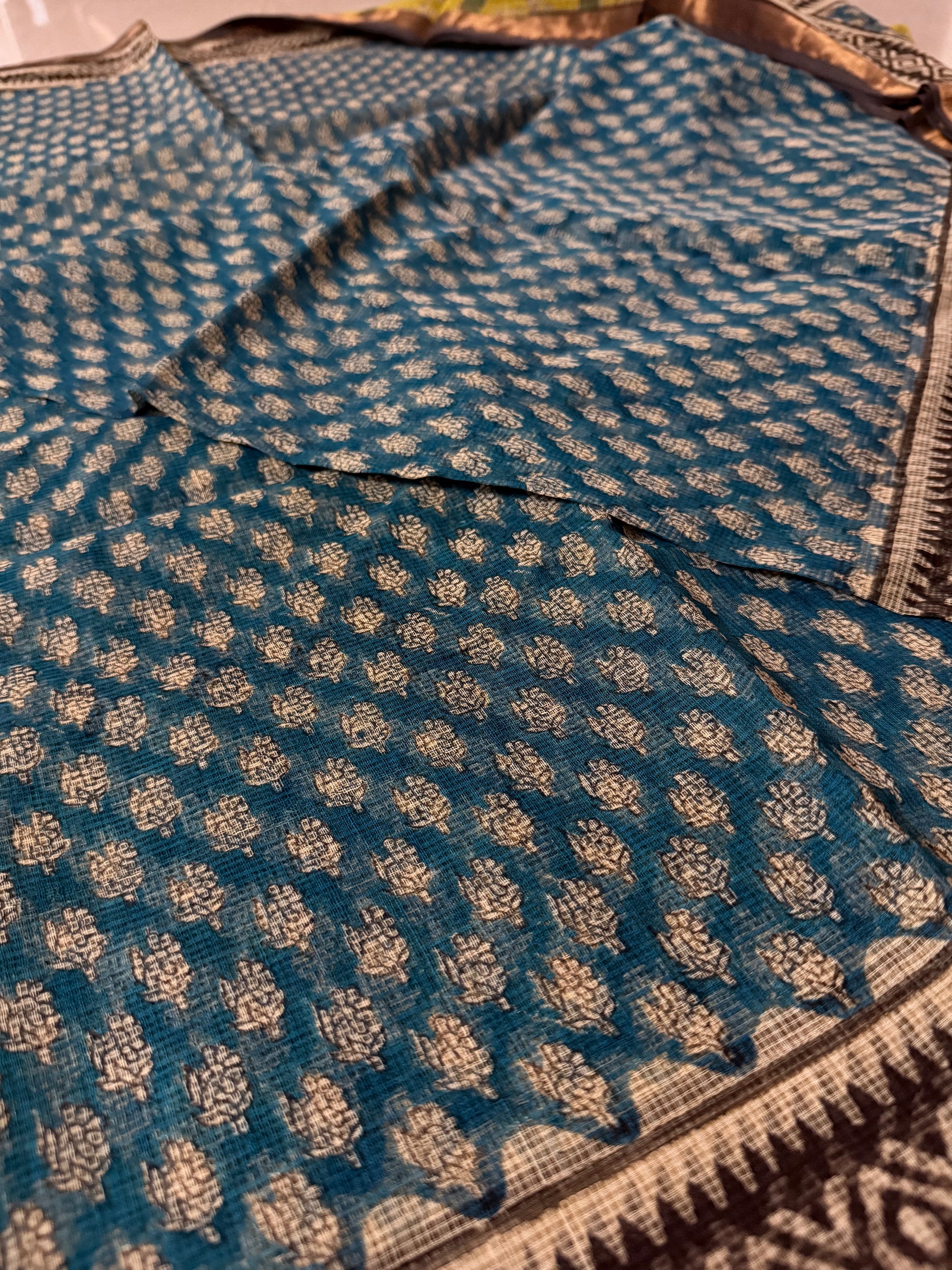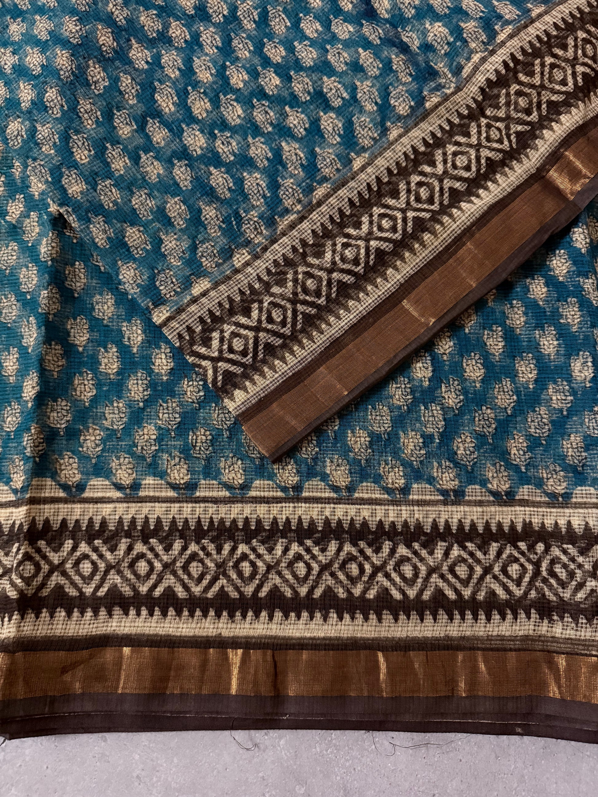 Kota Doria sarees are known for their lightweight, airy fabric and intricate weaving techniques. These sarees come in a variety of vibrant prints and colors, making them perfect for both casual and festive occasions. The delicate, translucent texture of the fabric ensures comfort, while the charming patterns add a touch of elegance and style. Ideal for warm weather, Kota Doria sarees are not only visually stunning but also offer unmatched ease of wear.