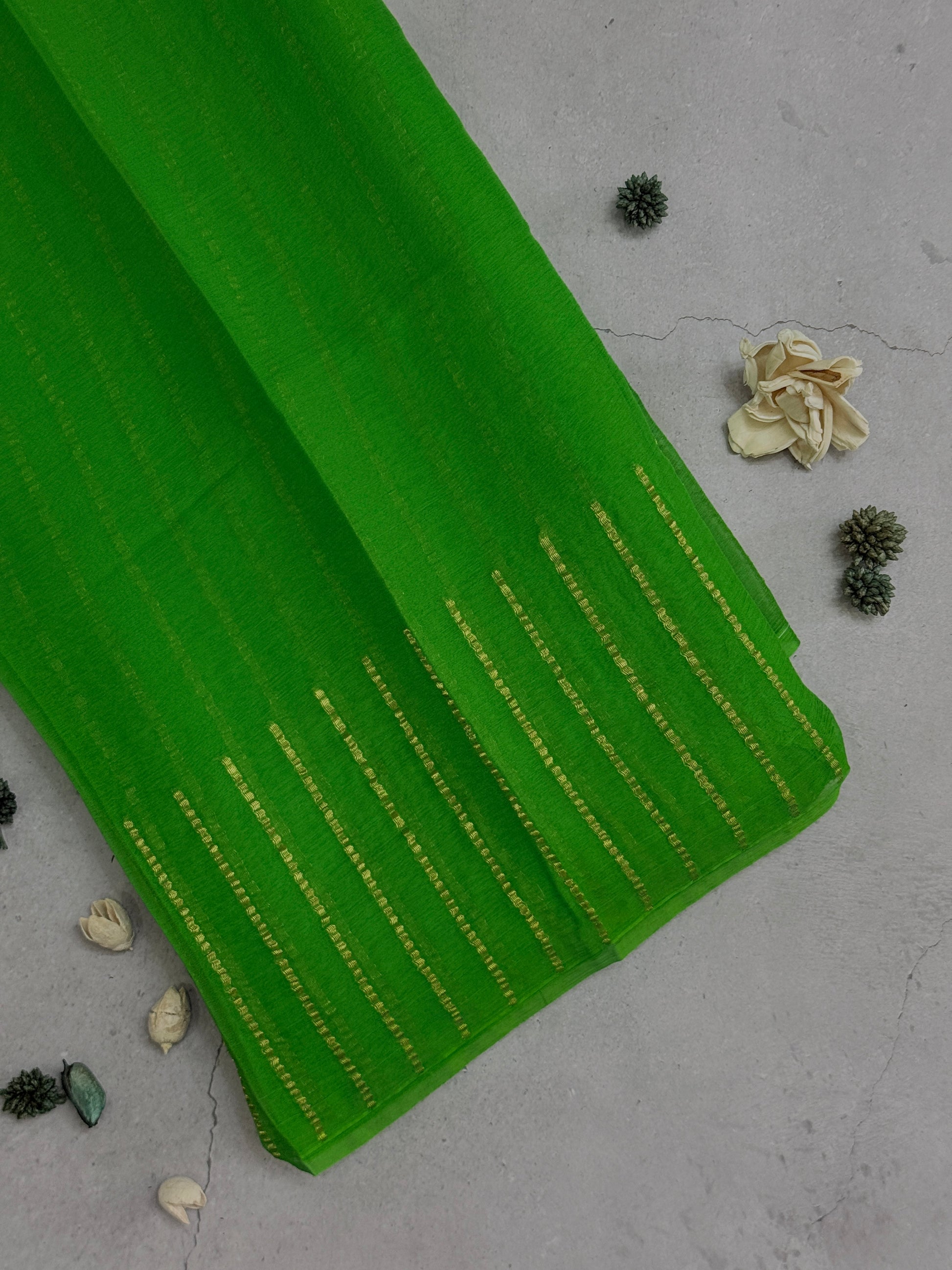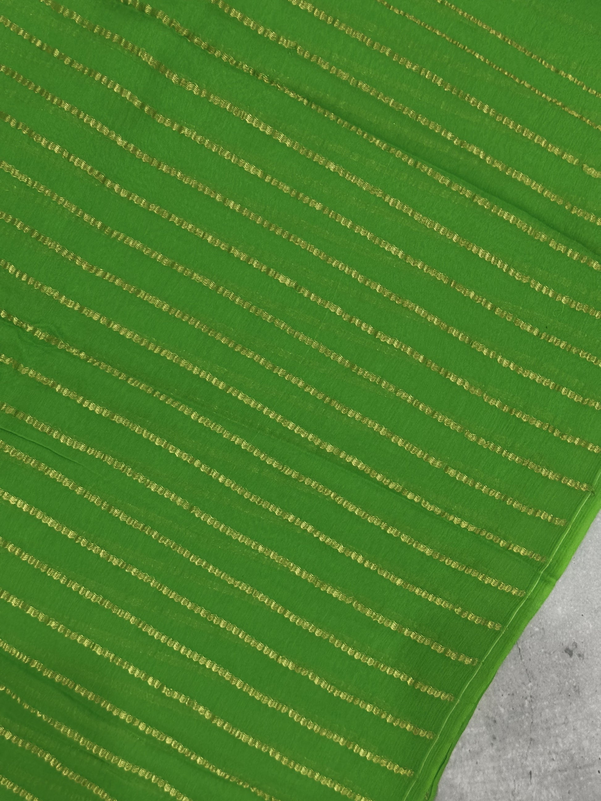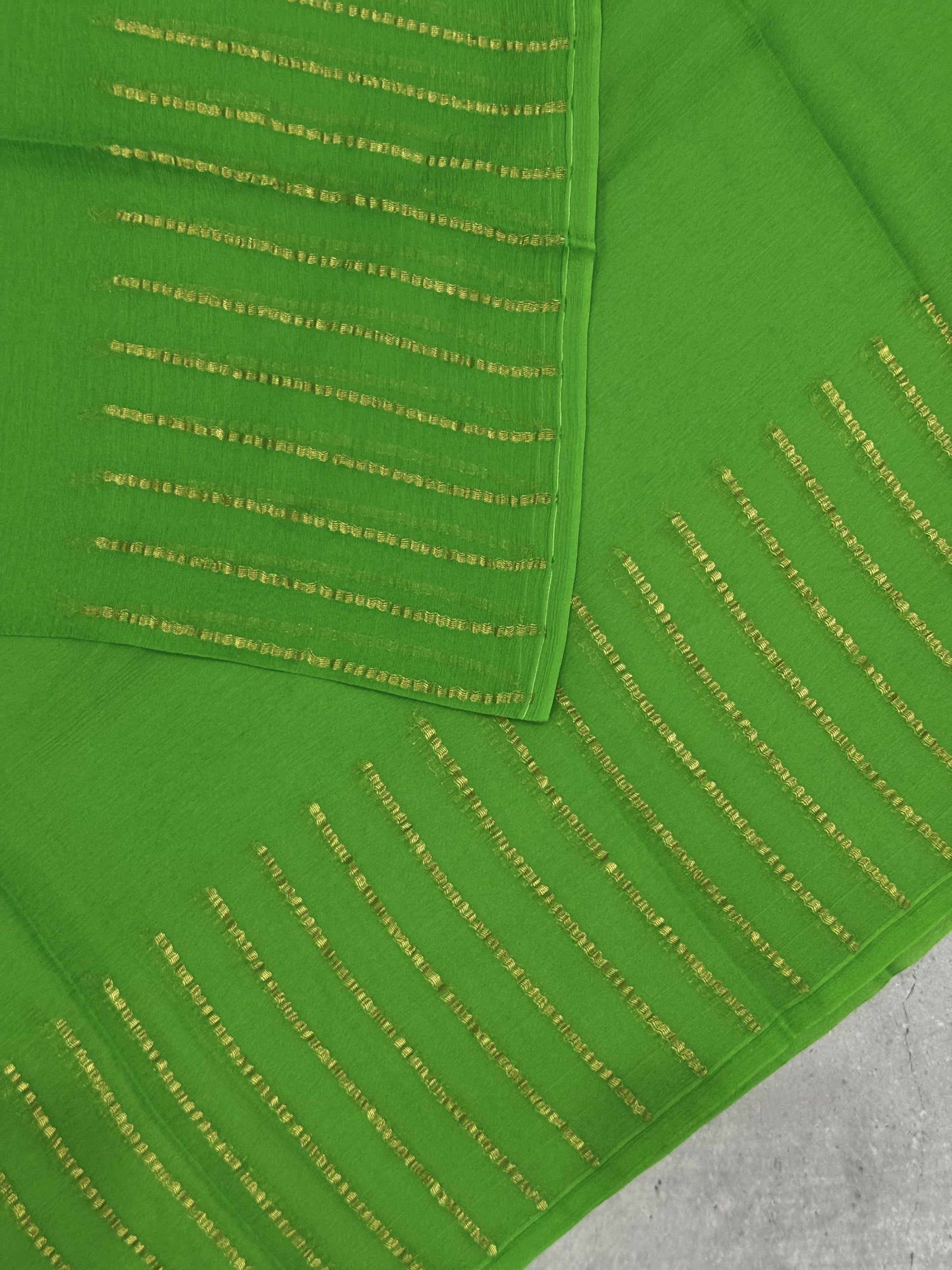 The fine chiffon silk complements the intricate zari details, making this saree ideal for weddings, festive events, or evening soirées. Its understated luxury and timeless appeal ensure you make a lasting impression while exuding classic charm.