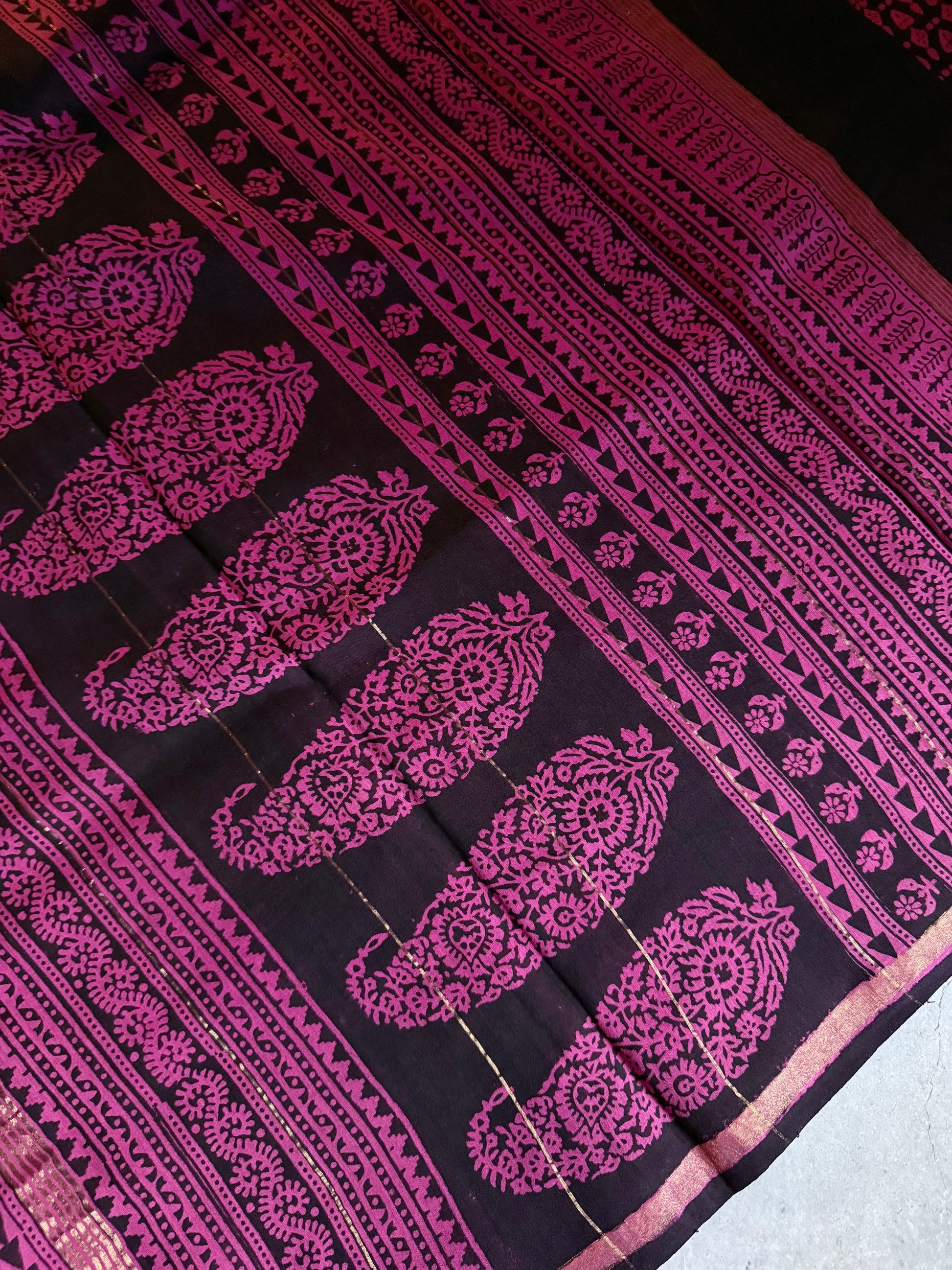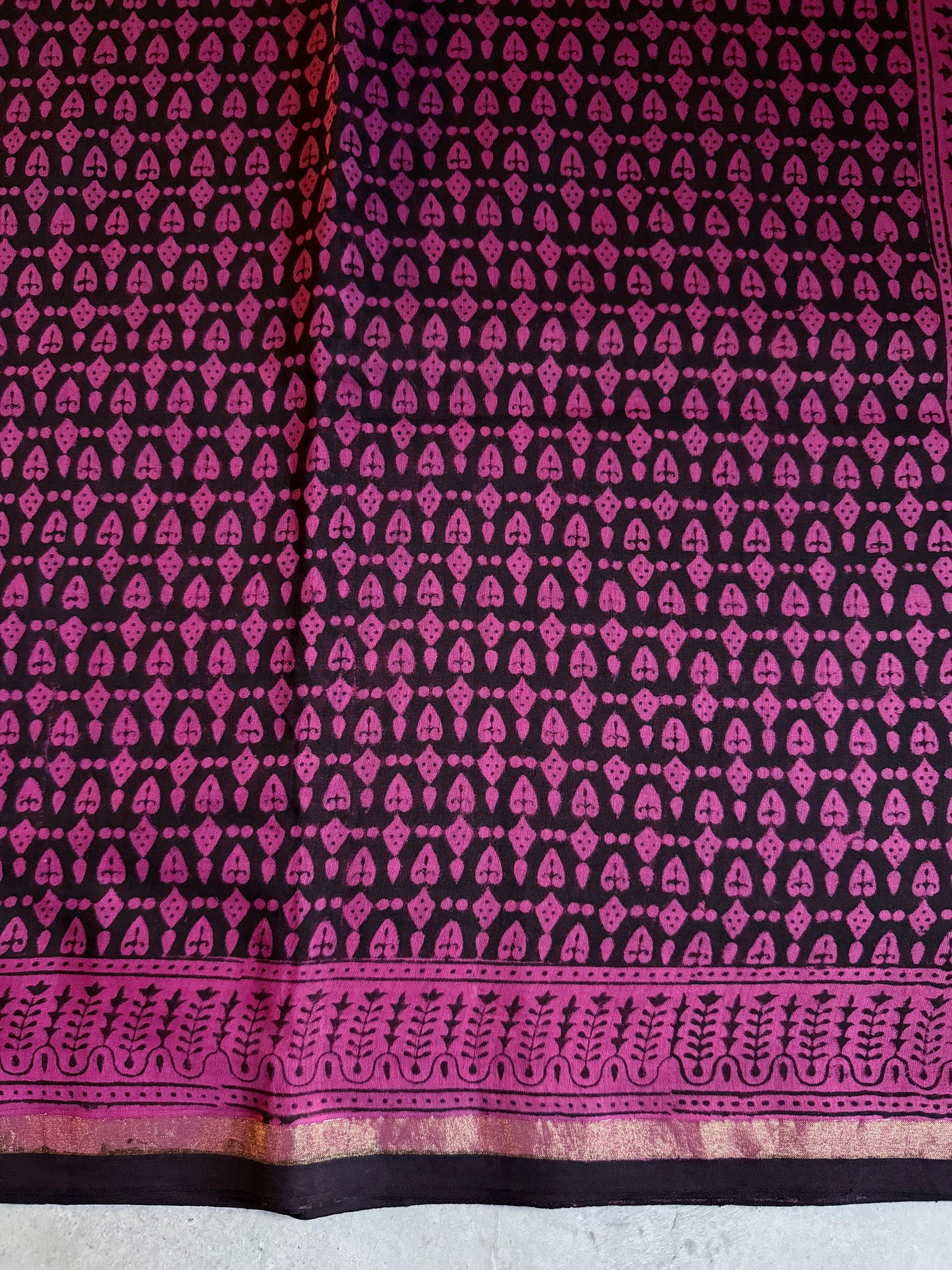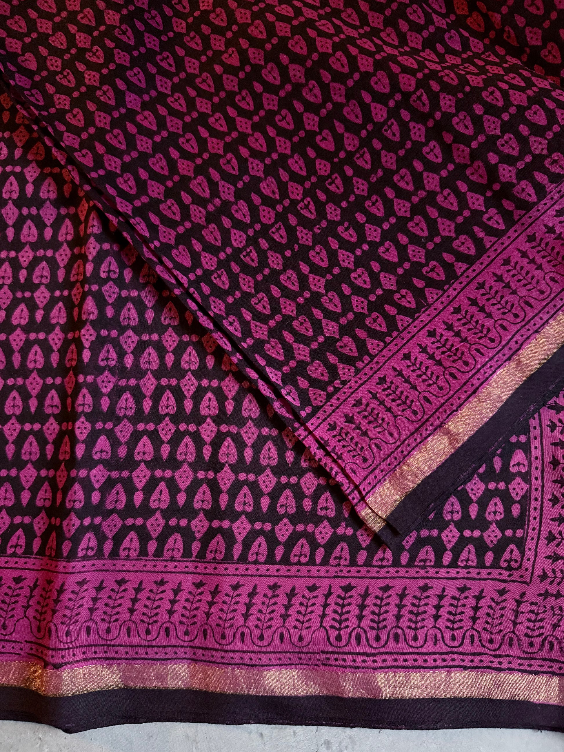 Kumudavalli | Pink and Black Bhag Printed Chanderi Saree