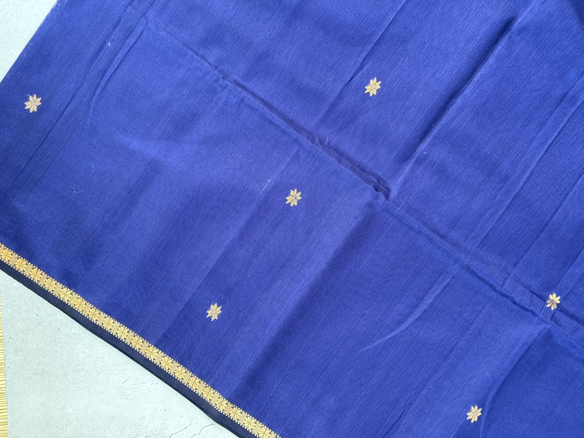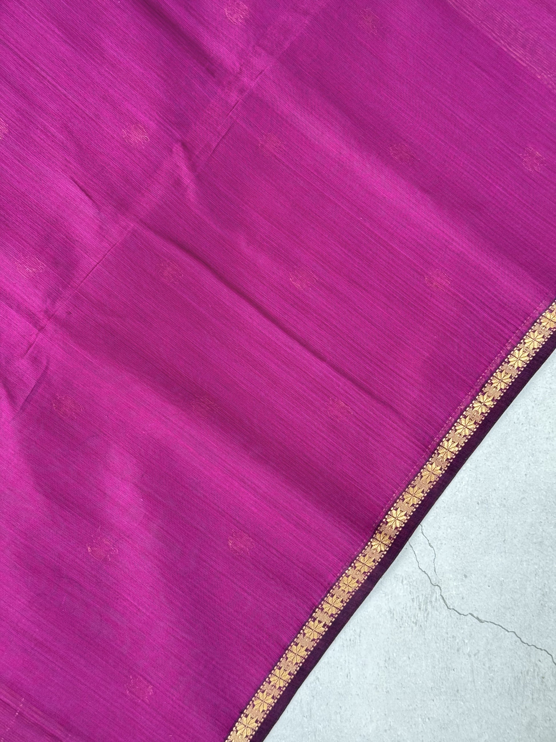 Maheswari Silk Cotton is celebrated for its perfect fusion of sophistication and comfort. The silk lends a rich sheen and graceful drape, while the cotton ensures breathability and softness. The borders, often intricately woven with metallic threads, enhance the saree’s opulence and elegance. This harmonious blend results in a visually stunning fabric that seamlessly merges traditional charm with contemporary appeal, making it perfect for both festive occasions and refined daily wear.