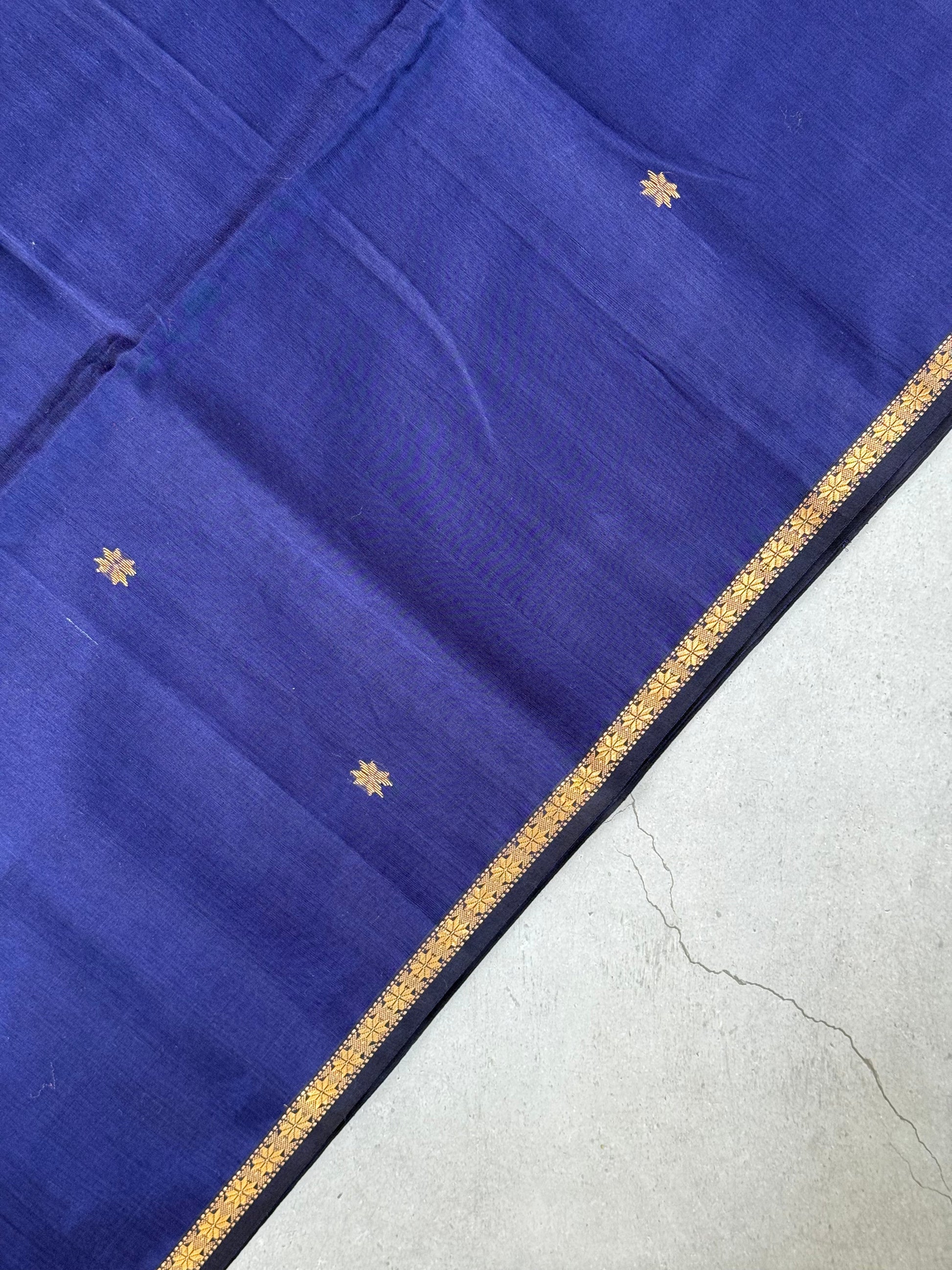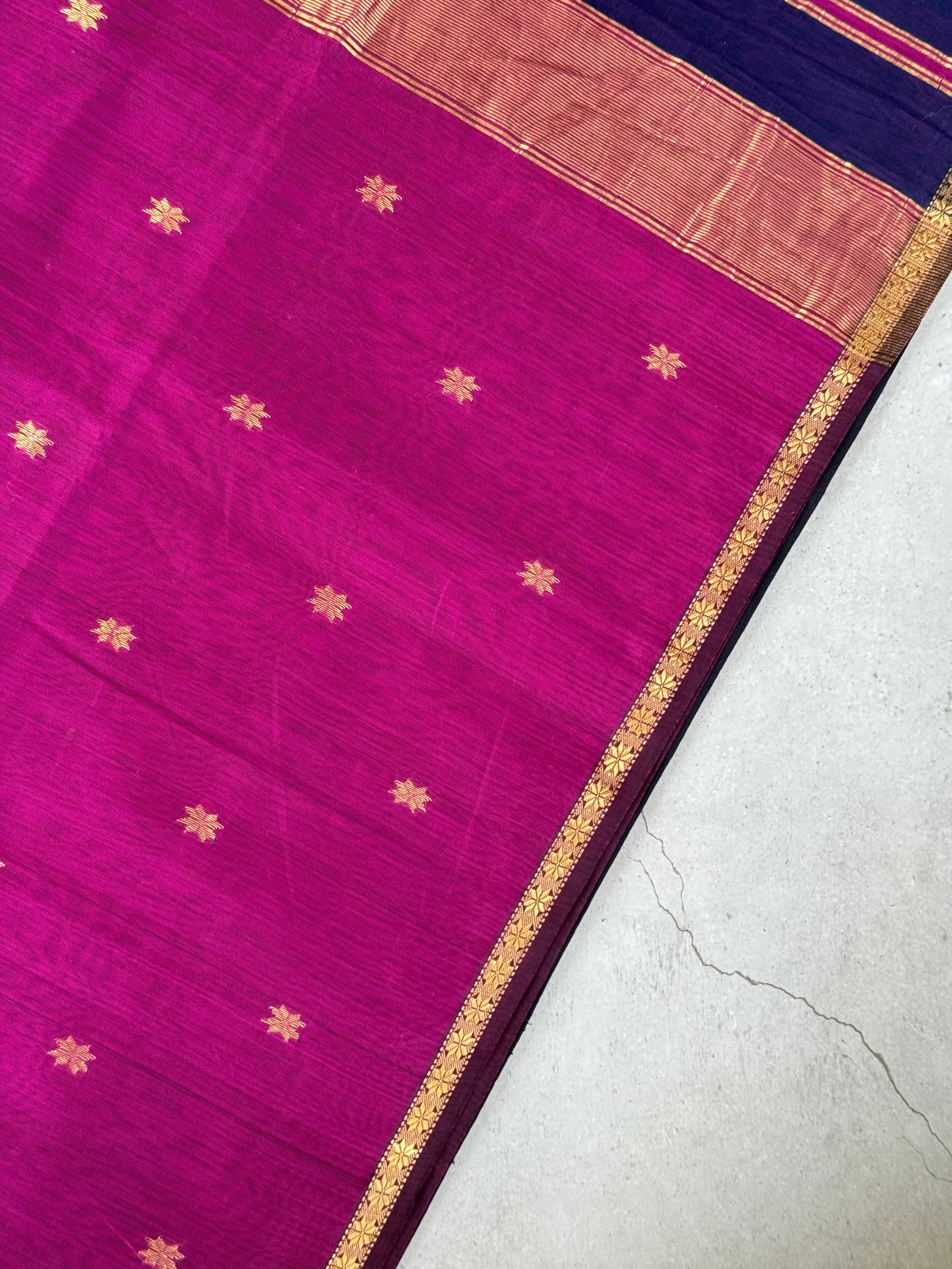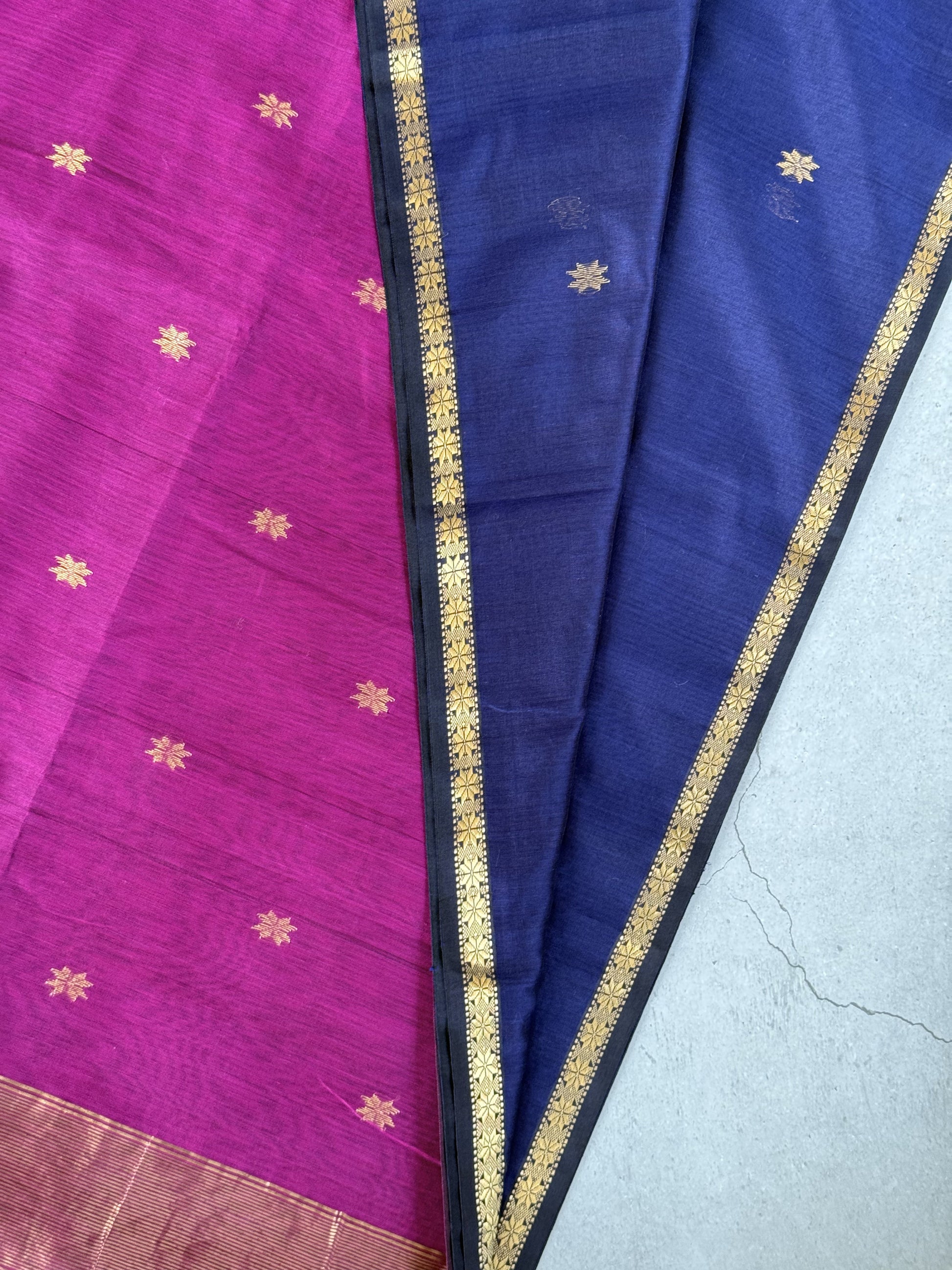 Laasya| Blue and Magenta Maheshwari Silk Cotton Saree