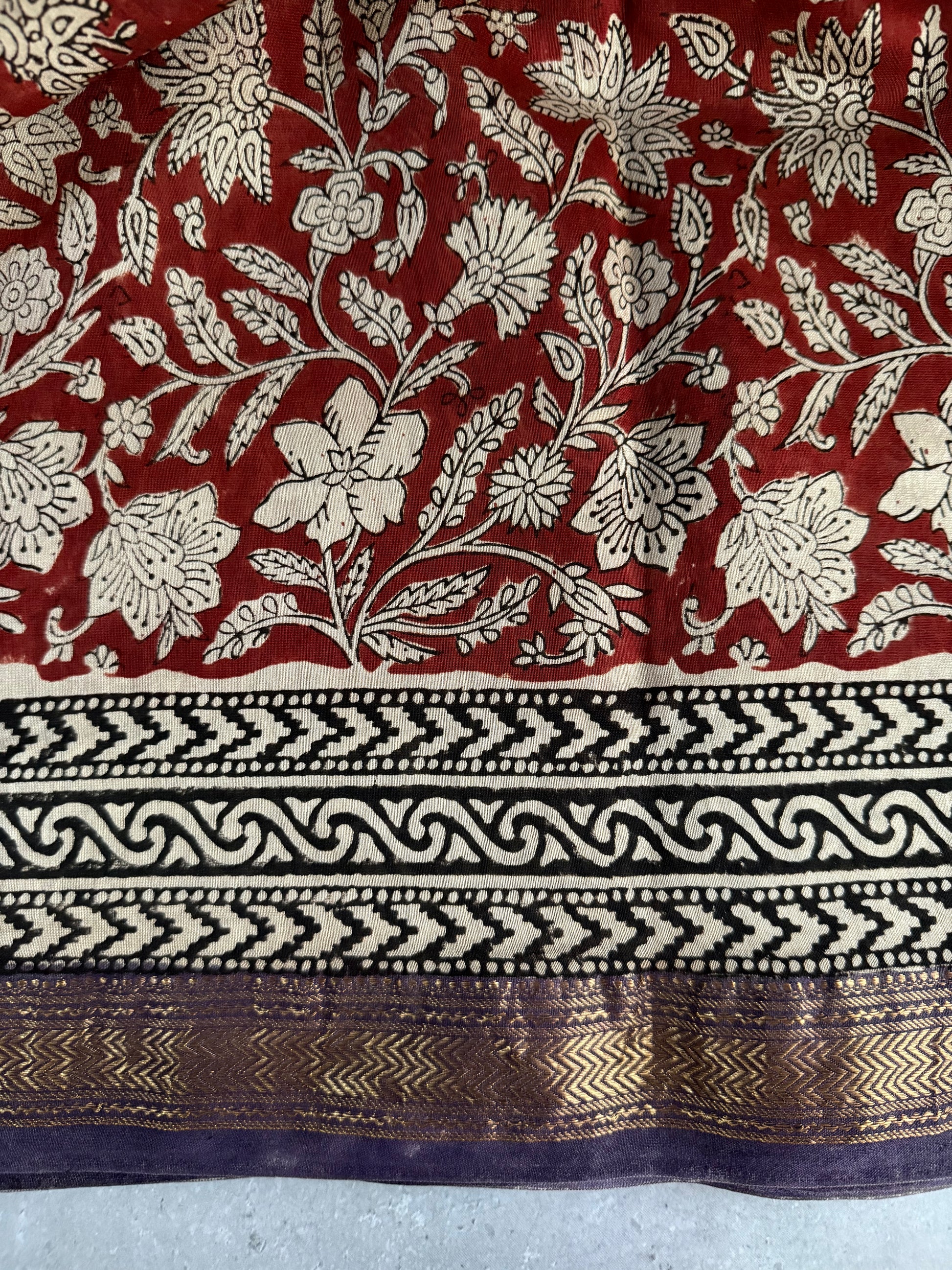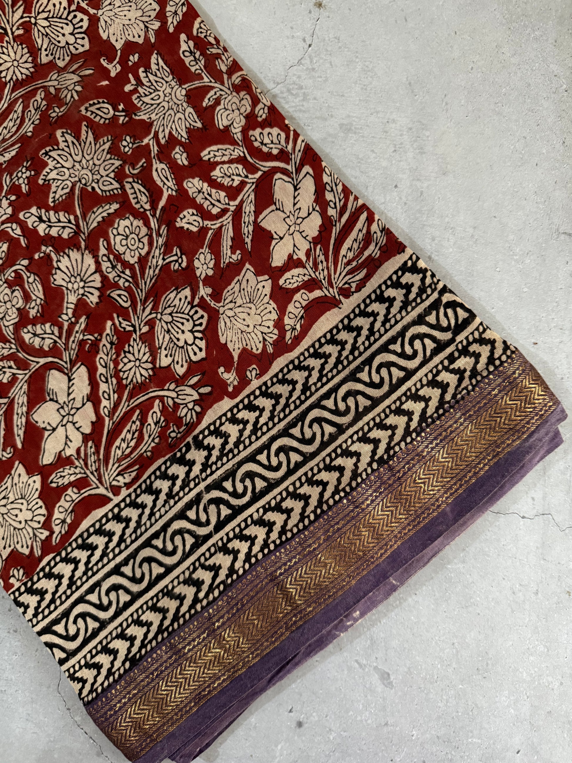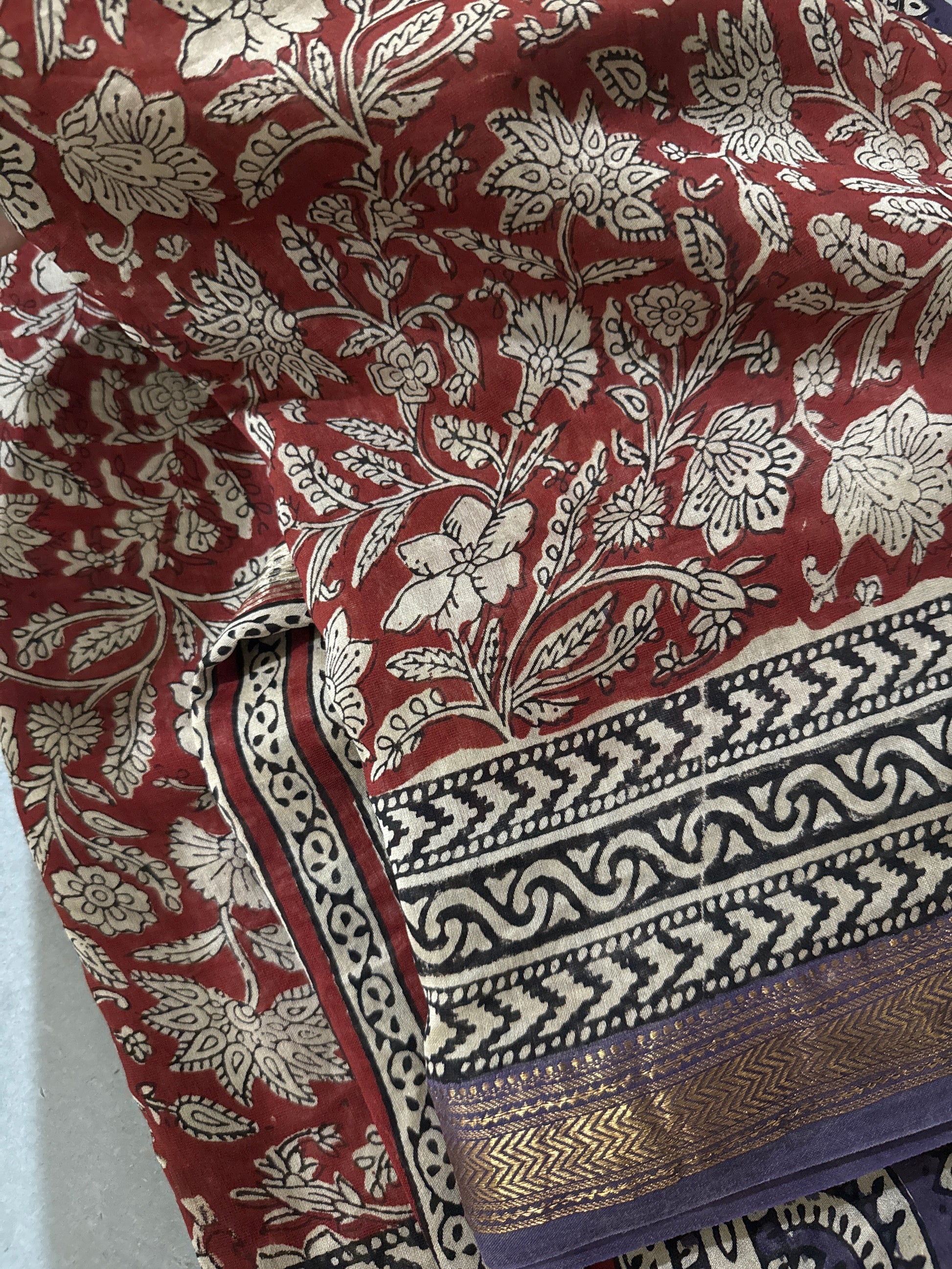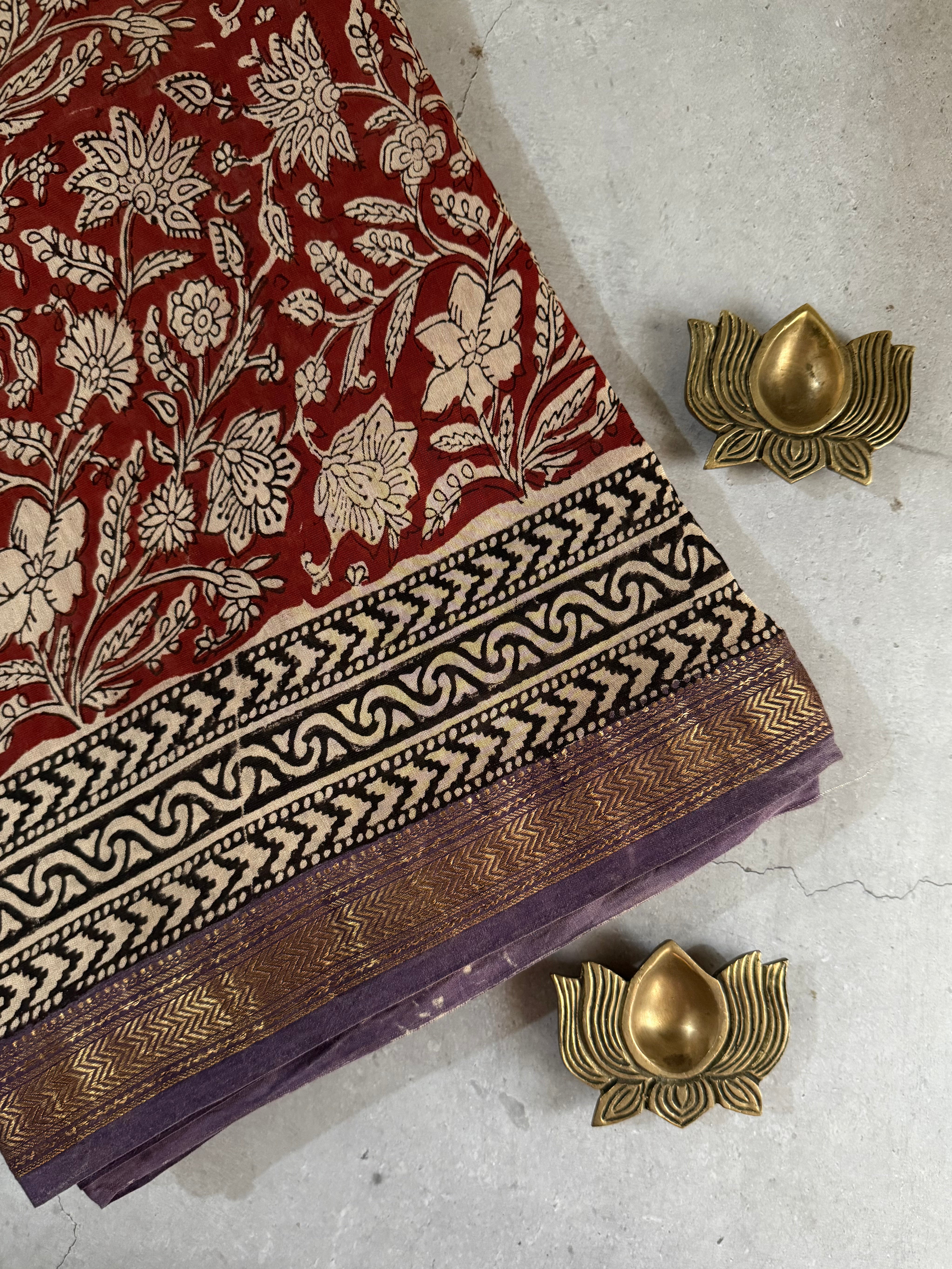 Lakshita | Maroon Block Printed Maheshwari Saree