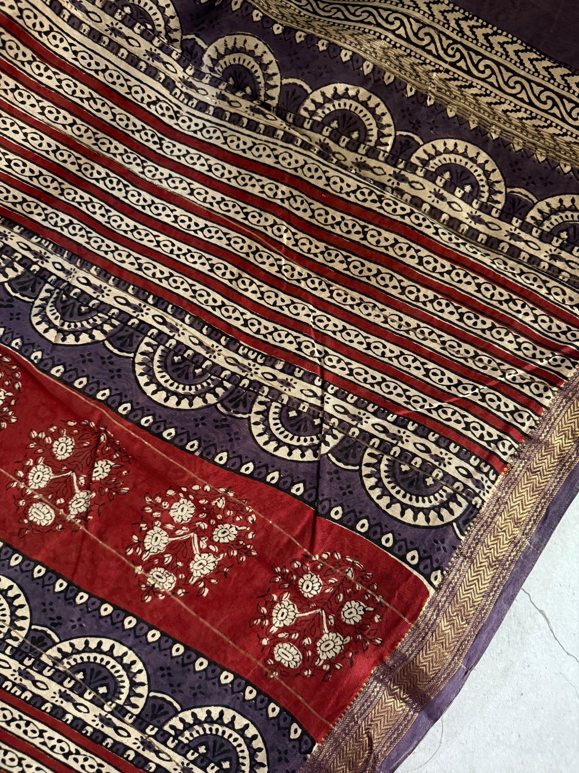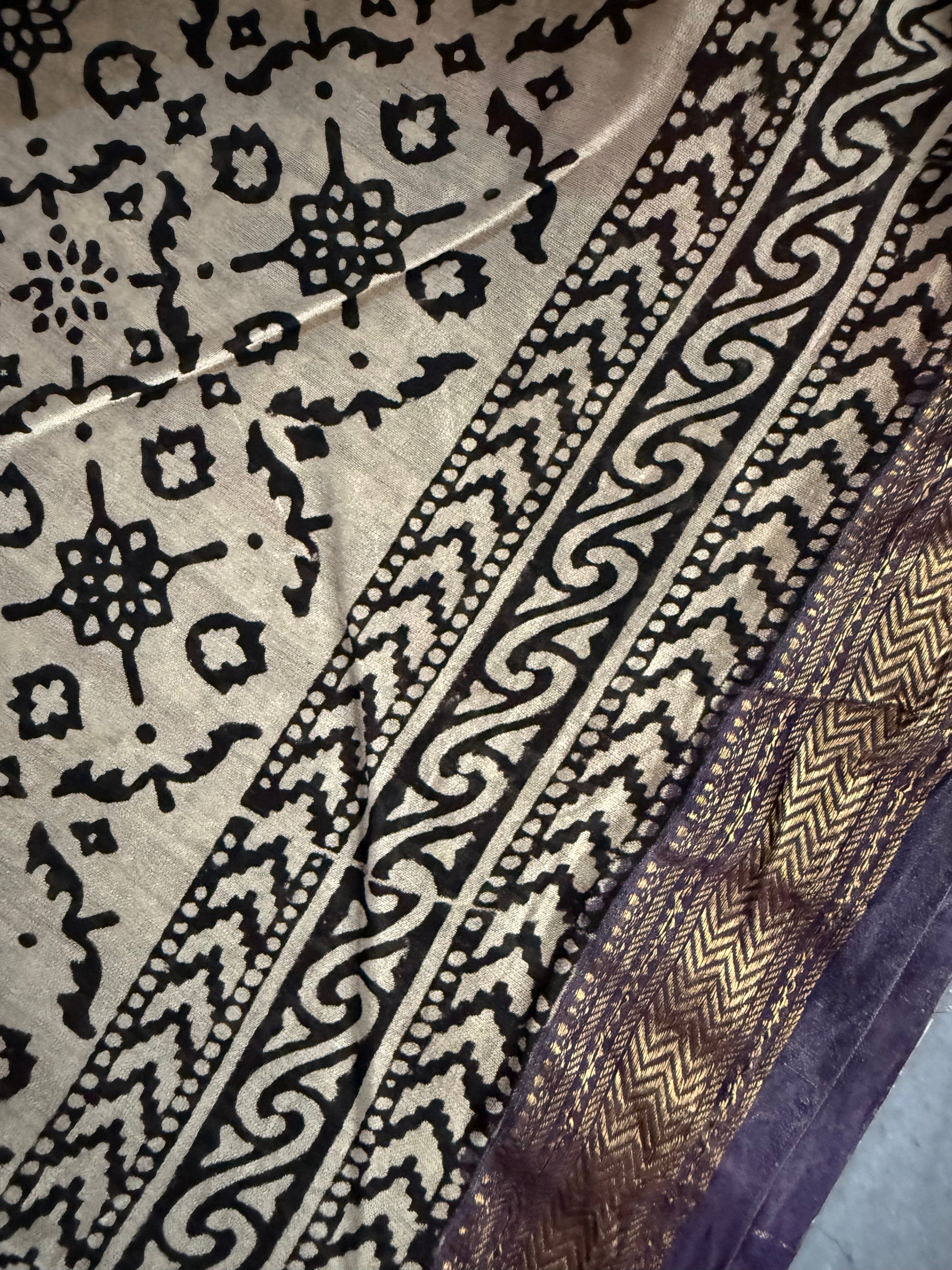 Hand Block Printed Maheshwari Silk-Cotton Saree