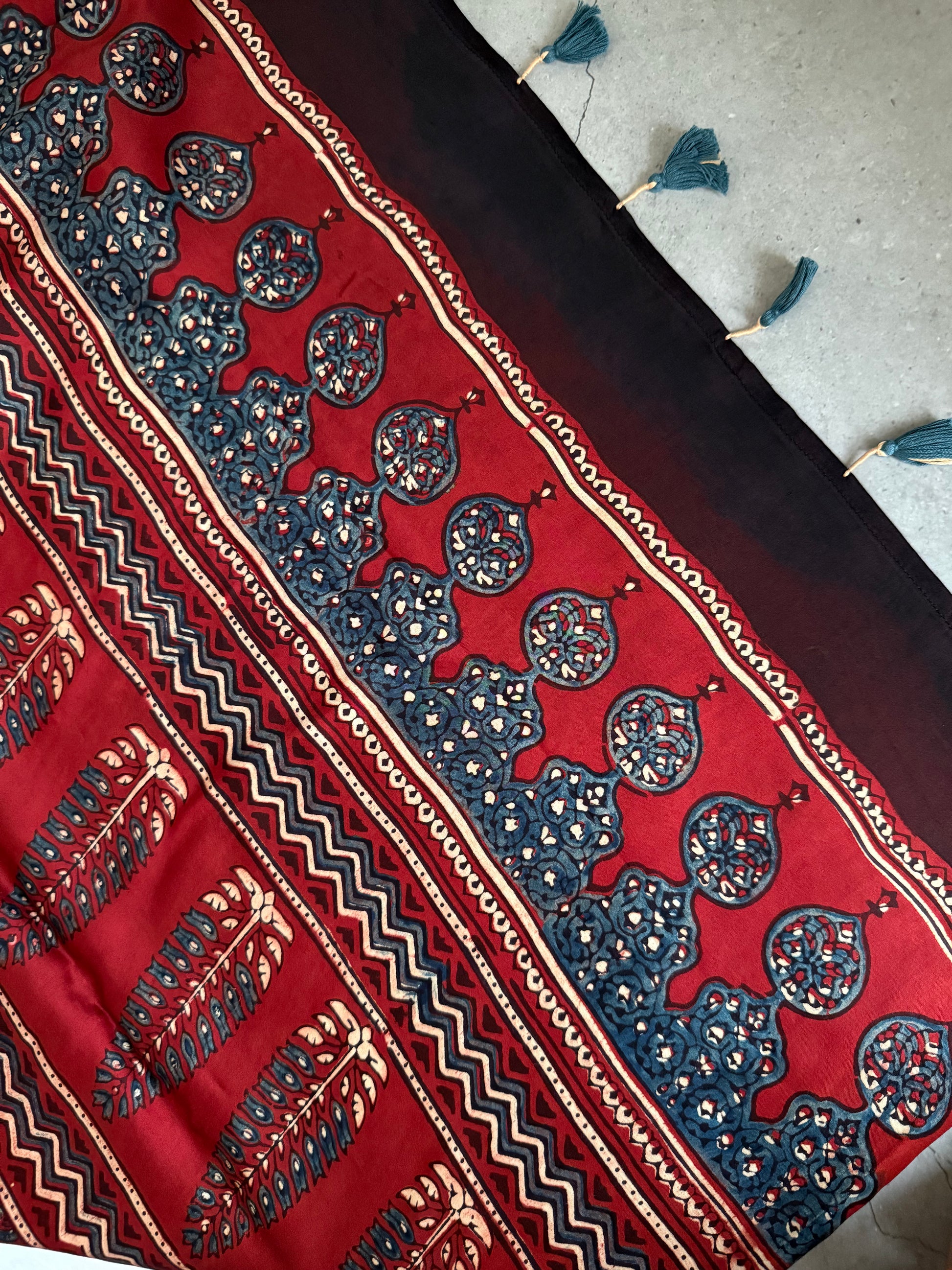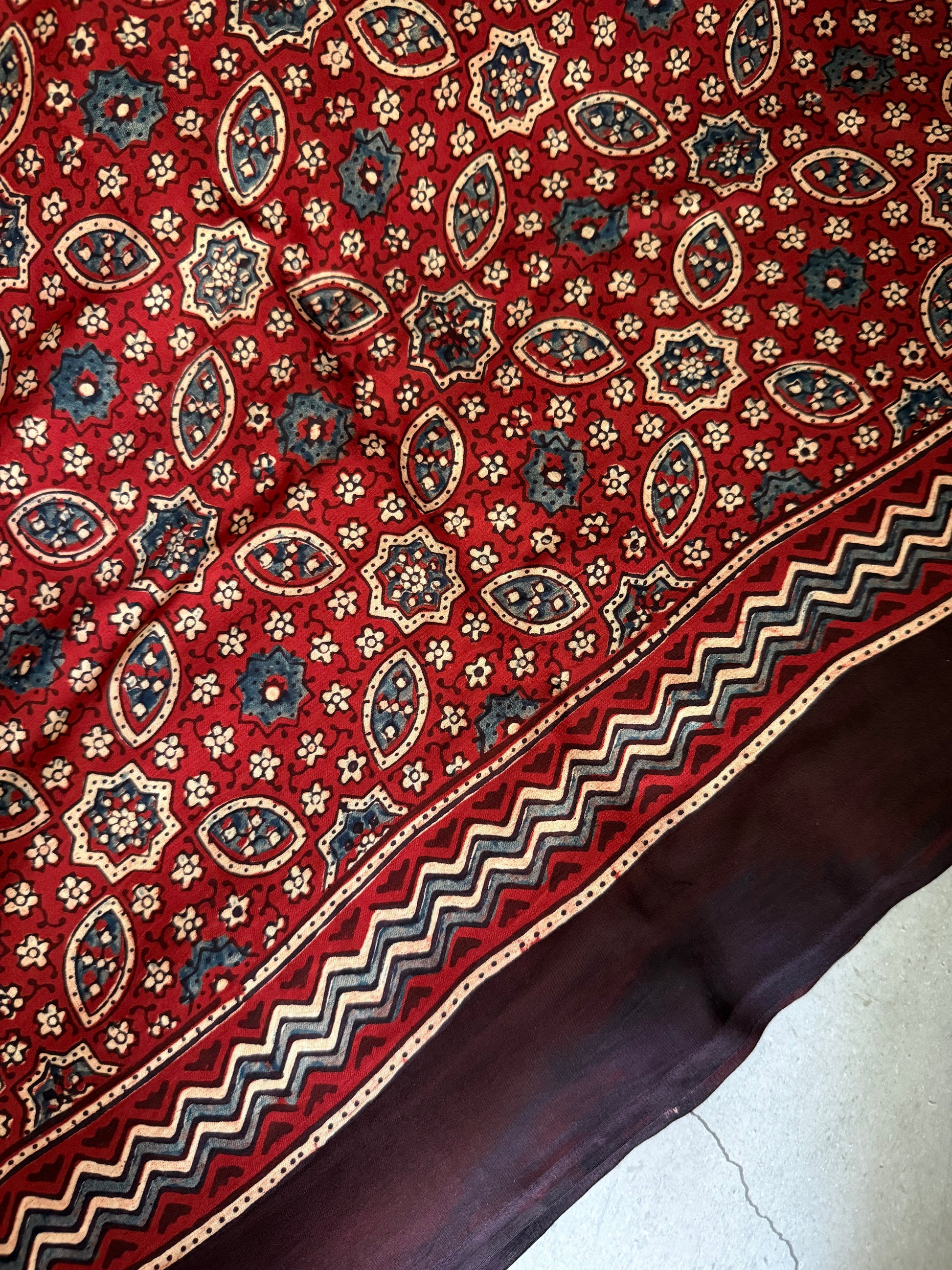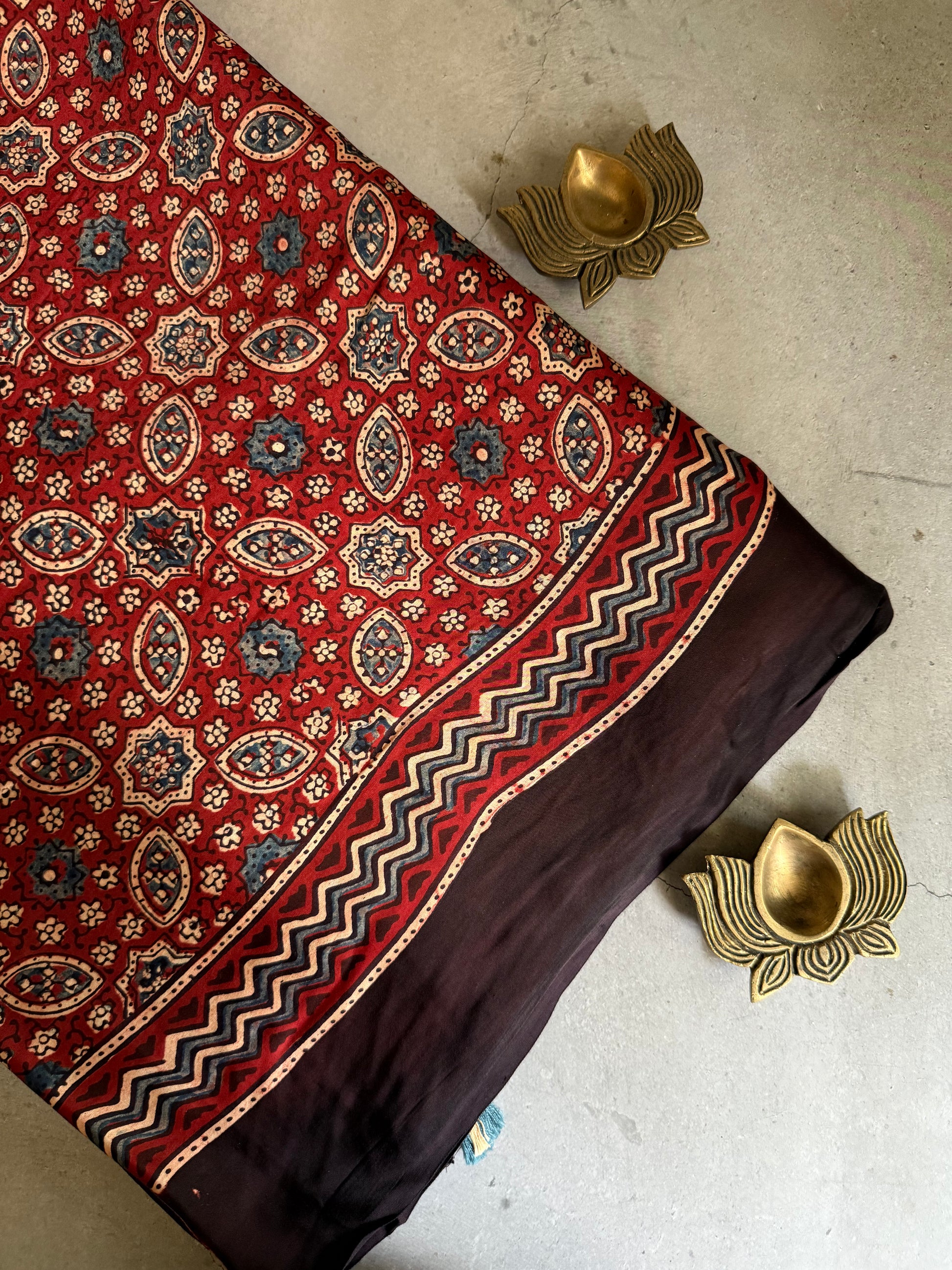 Authentic Ajrakh Handblock Printed Modal Silk Saree