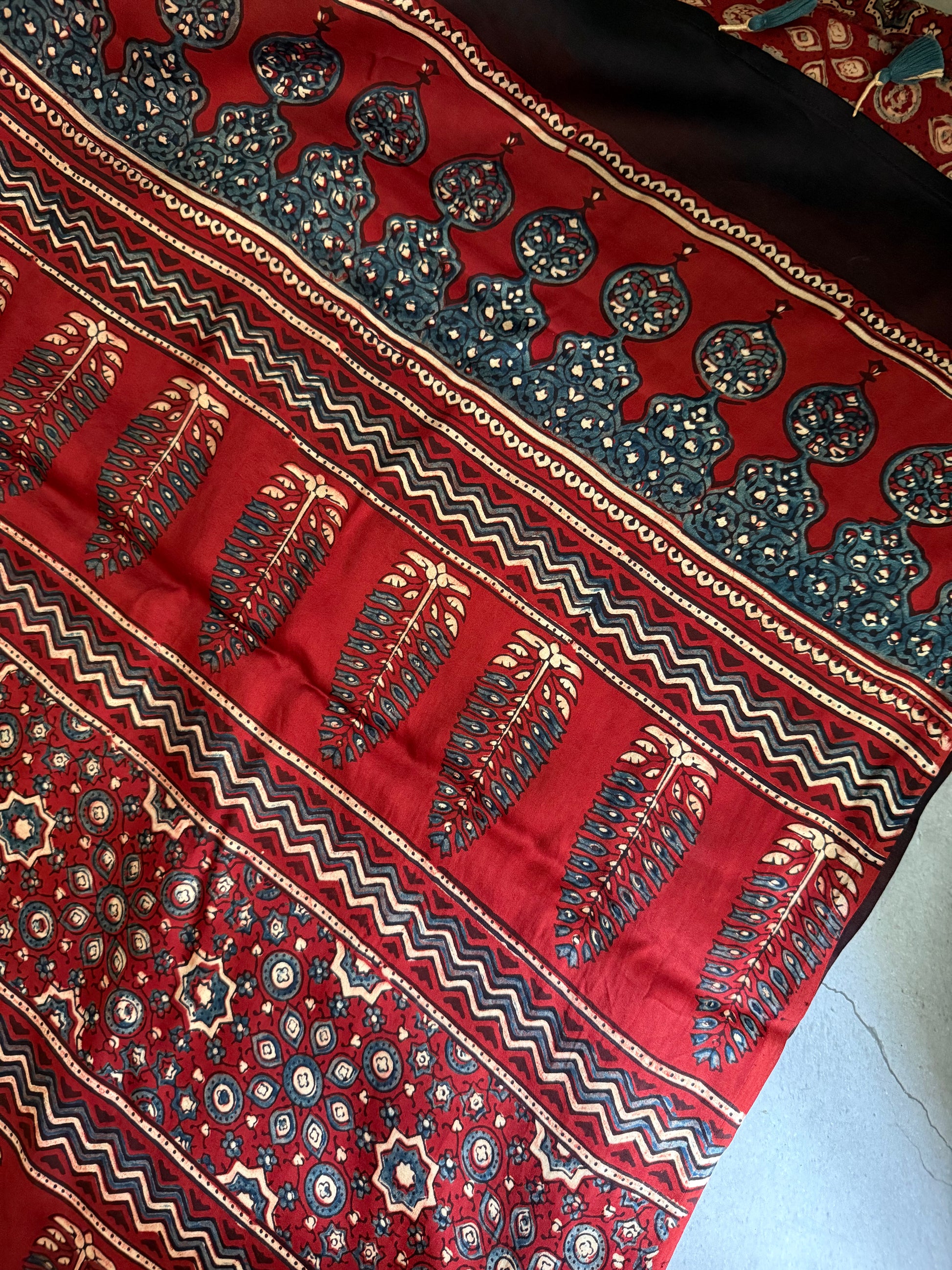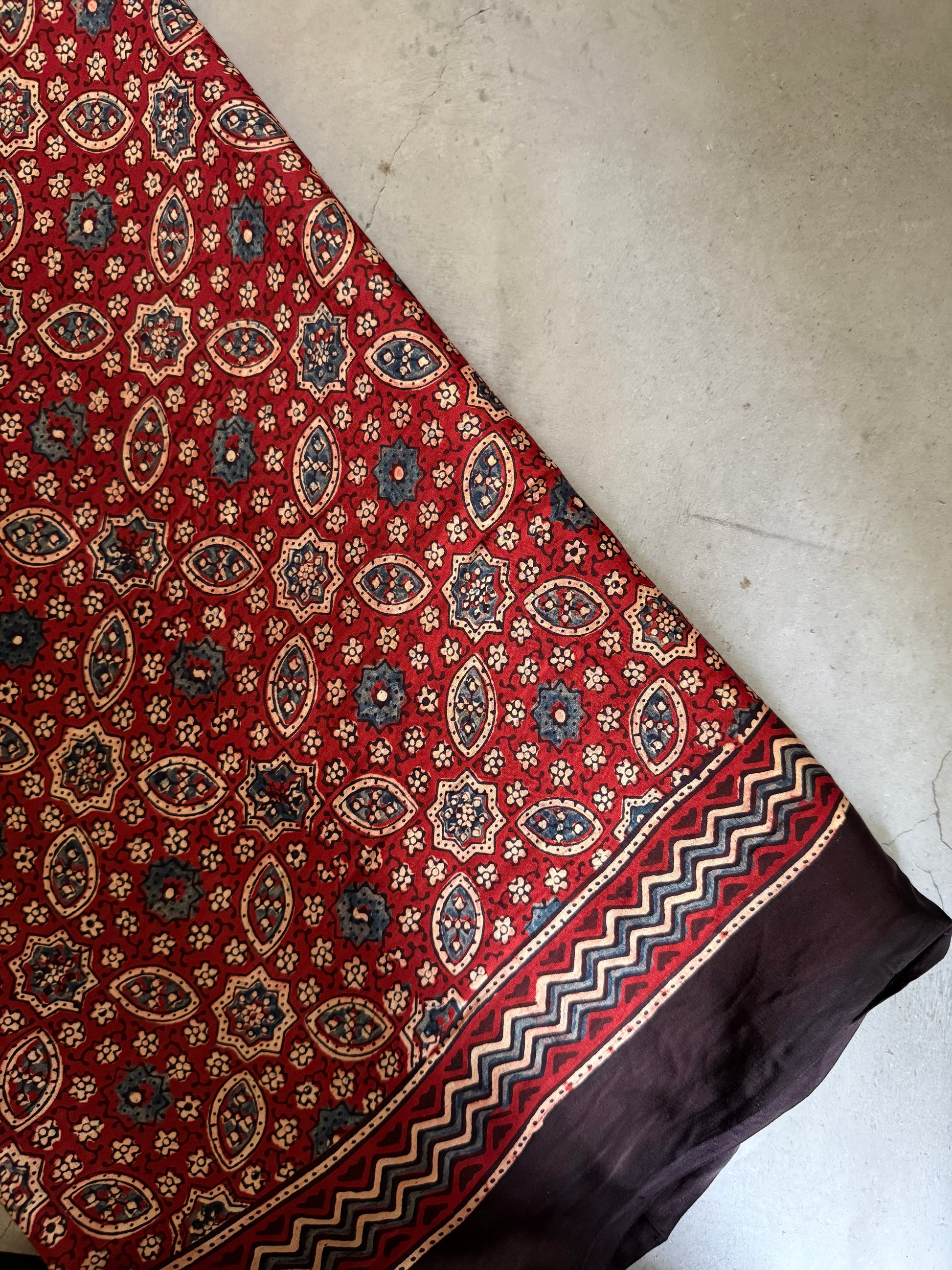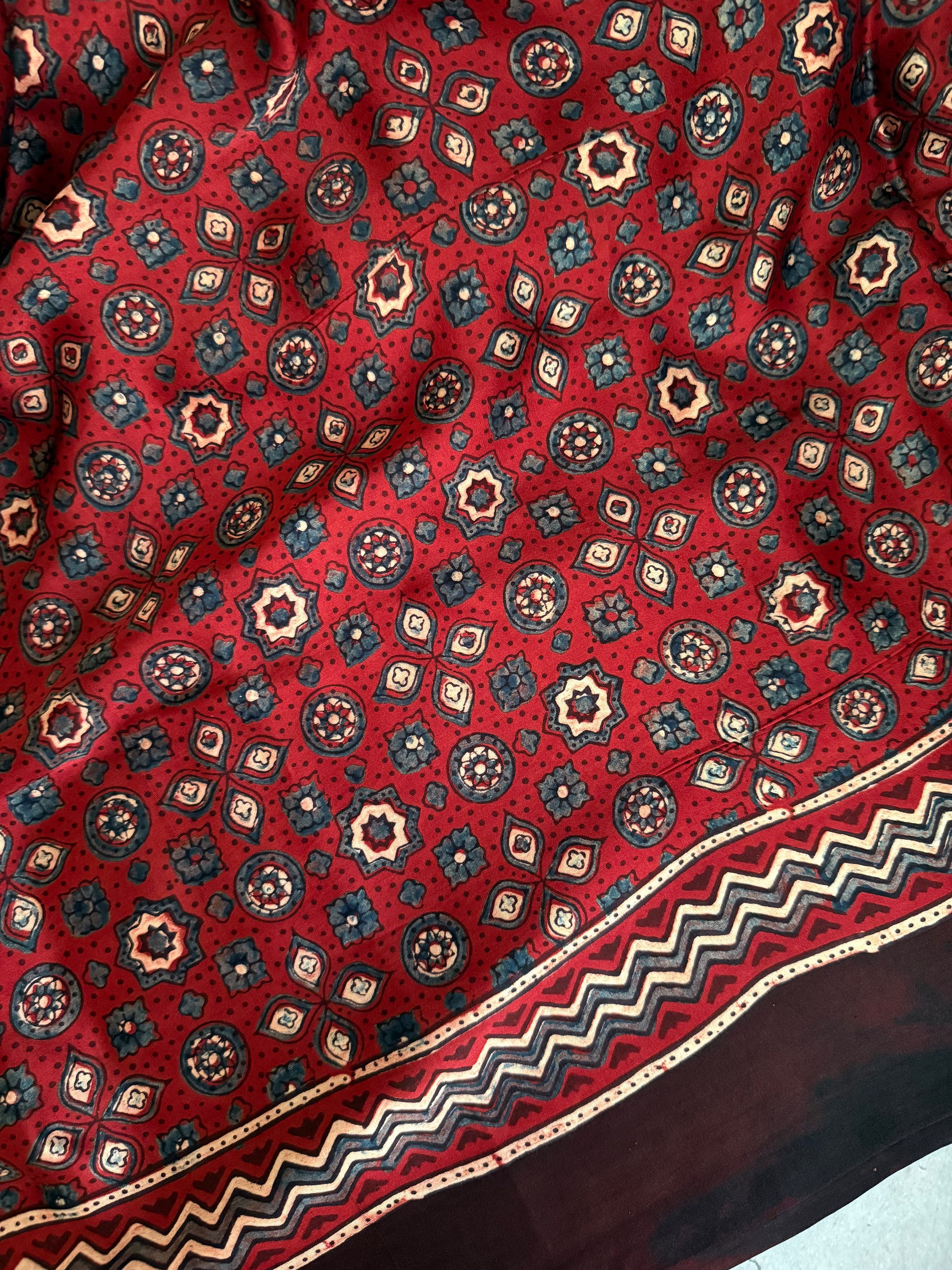 Authentic Ajrakh Handblock Printed Modal Silk Saree