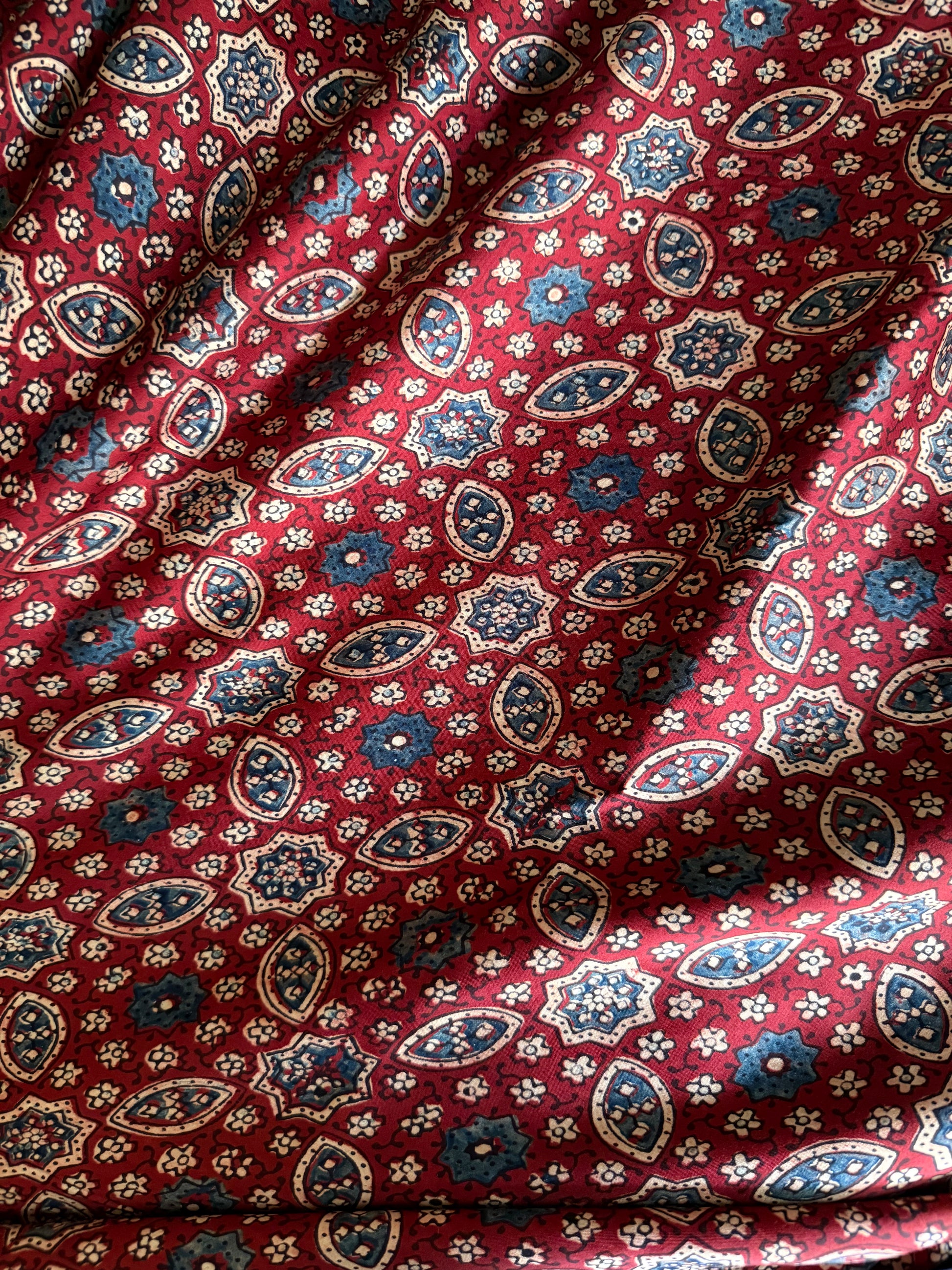 Crafted with precision and dyed with tradition, this rare Ajrakh saree is a true collector’s piece. Handblock printed using natural dyes by skilled artisans from Kutch, every motif reflects centuries of craftsmanship and cultural richness.