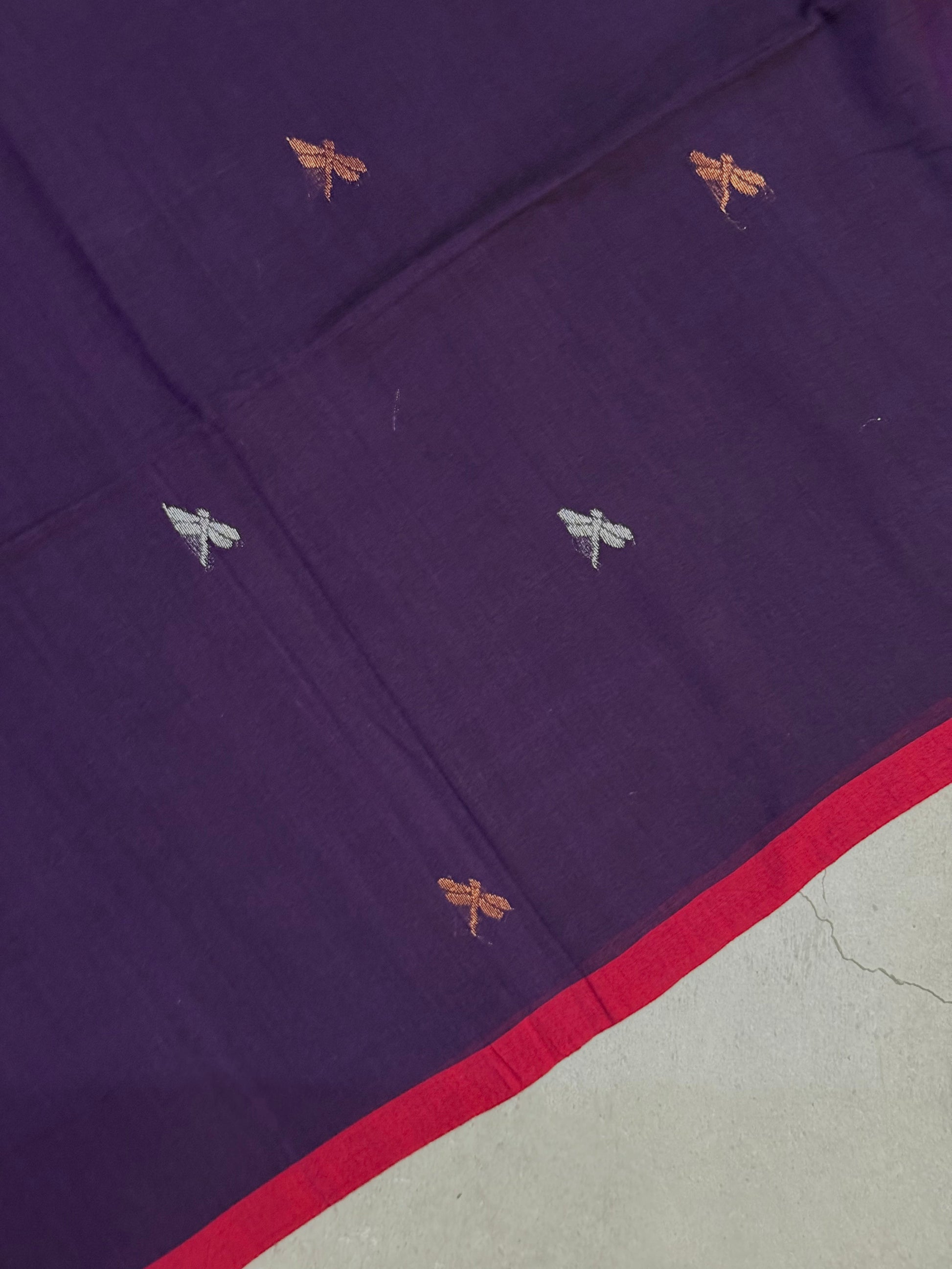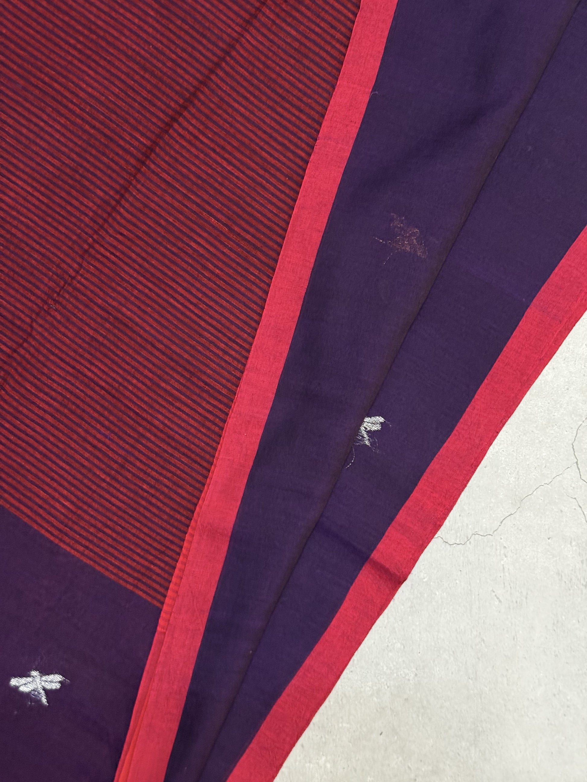 Maitreya | Purple and Pink Jamdani Bengal Cotton Saree