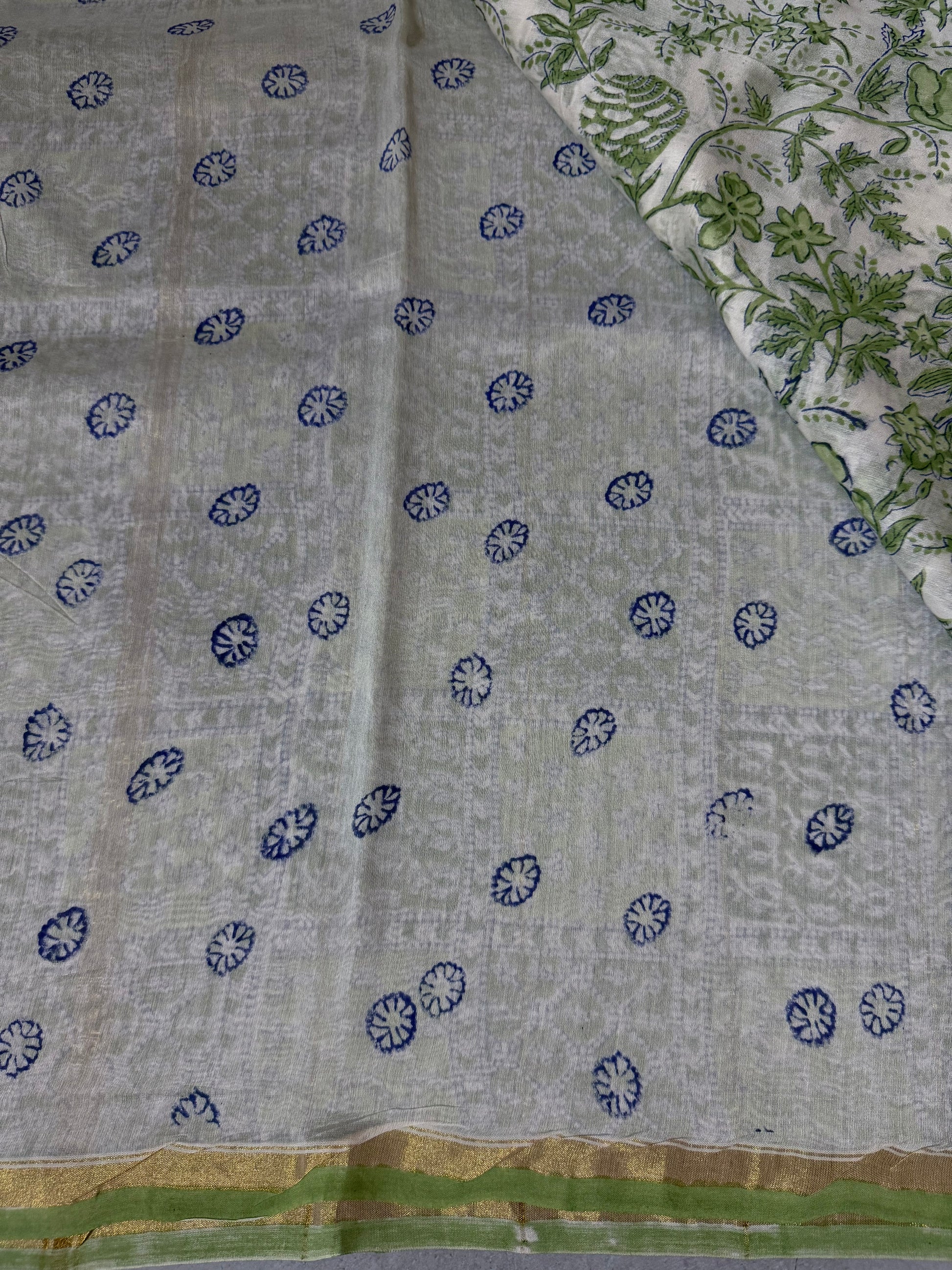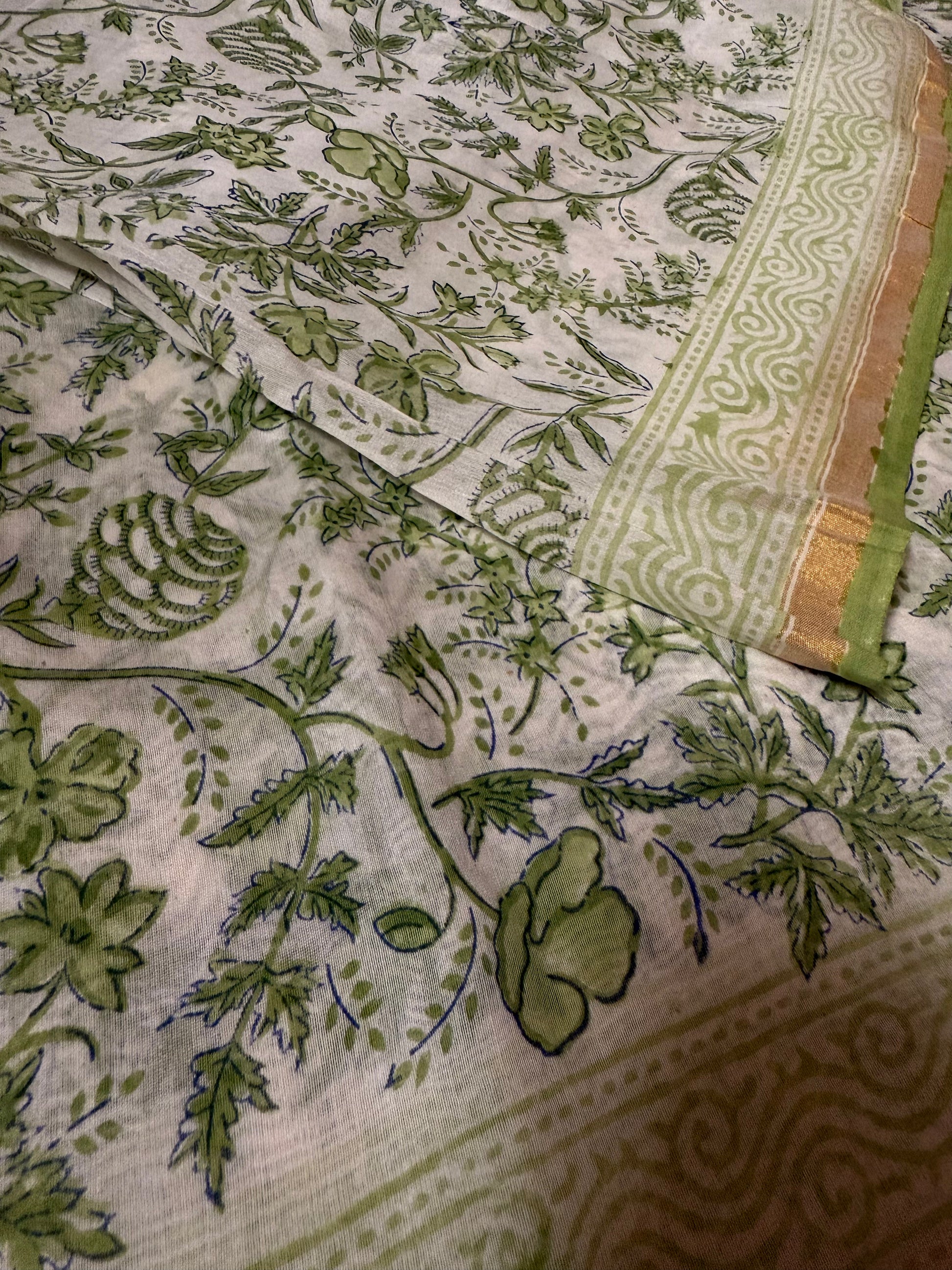 Mallige | Green and White Block Printed Chanderi Saree
