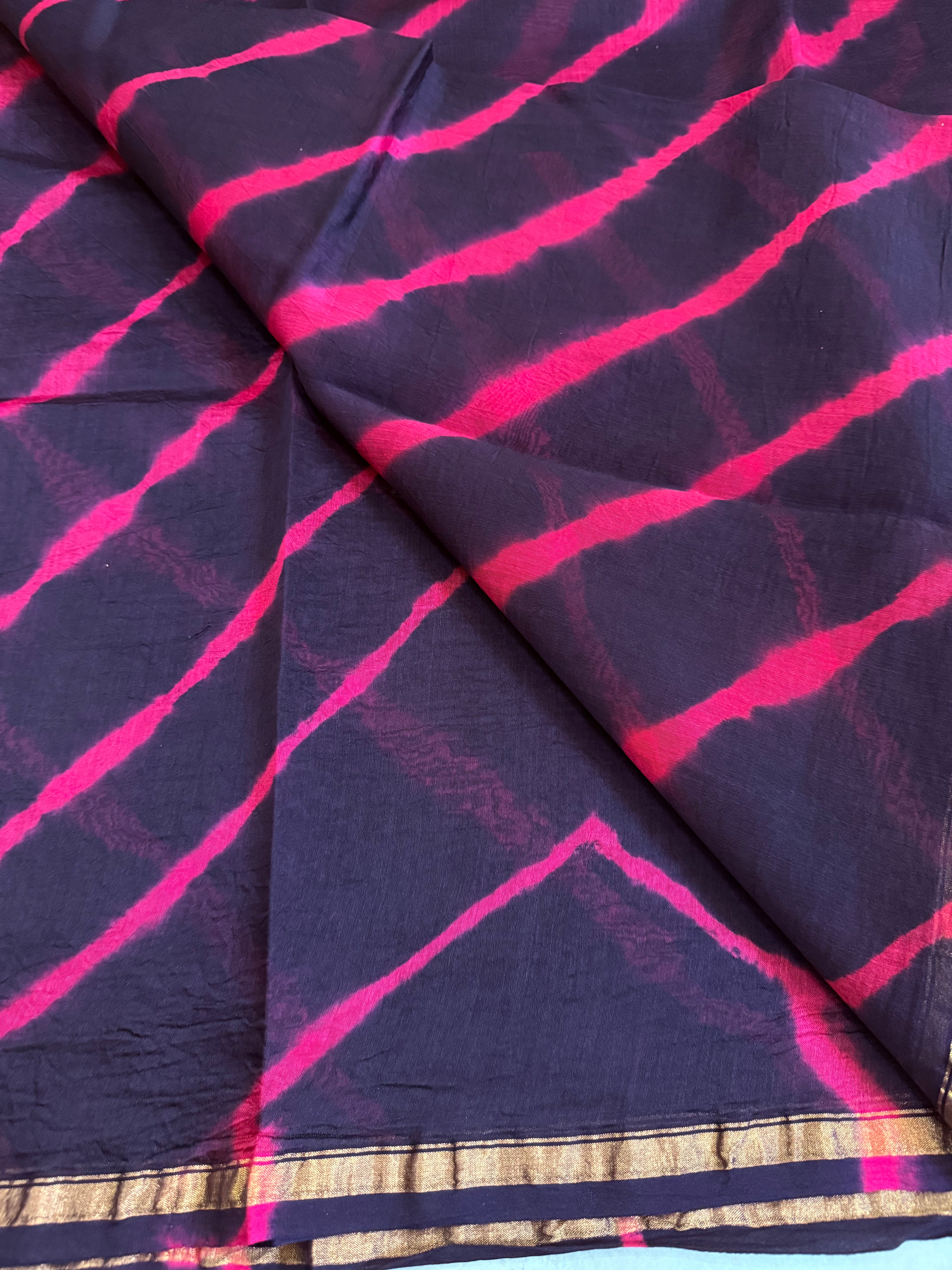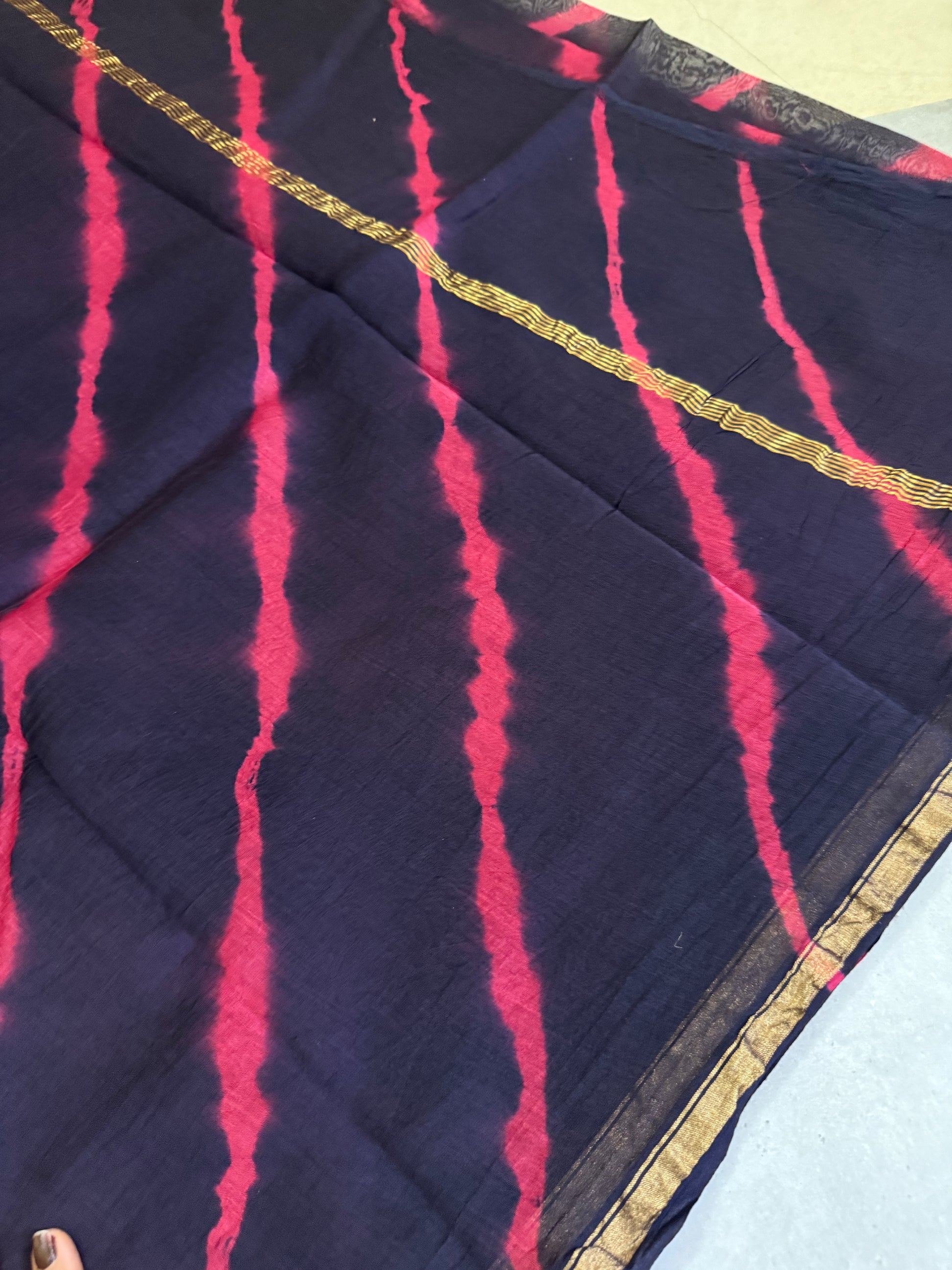 Manjima | Navy and Pink Floral Block Printed Chanderi Saree (Copy)